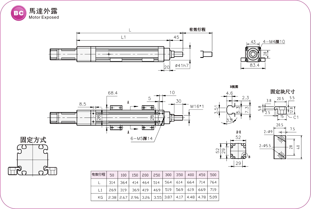 ระยะการเคลื่อนที่: 50-500 มม.