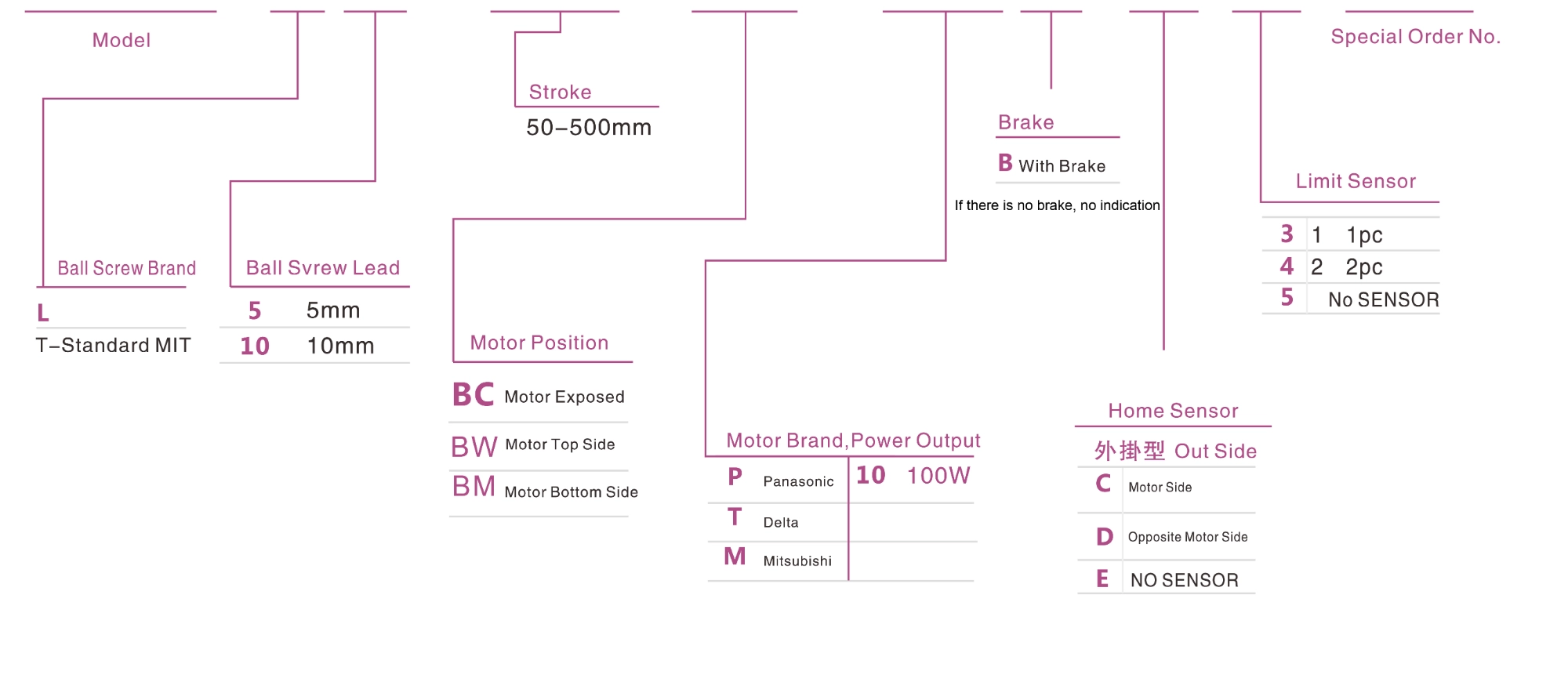 | ระยะชัก (มม.) | 50-500 มม./50 ระยะห่างระหว่างเกลียว | |||