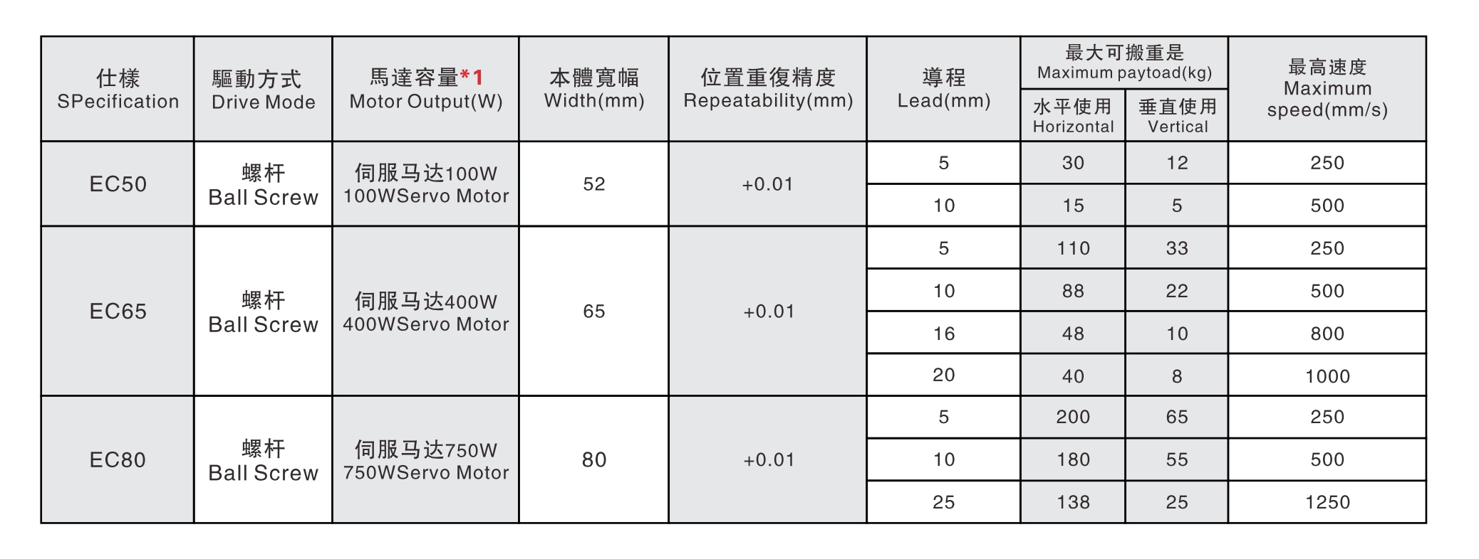 ใช้ที่ไหนโหมดขับเคลื่อนข้อมูลจำเพาะของรุ่นกำลังไฟฟ้าขาออก (วัตต์)ความกว้าง (มม.)ความแม่นยำในการวัดซ้ำ (มม.)ข้อมูลจำเพาะของบอลสกรูน้ำหนักบรรทุกสูงสุด (กก.)