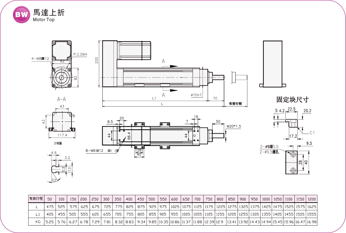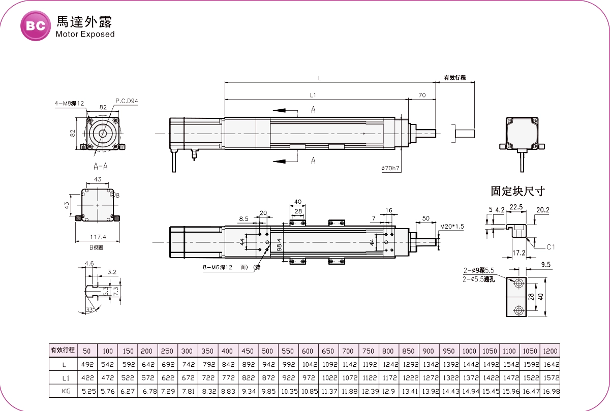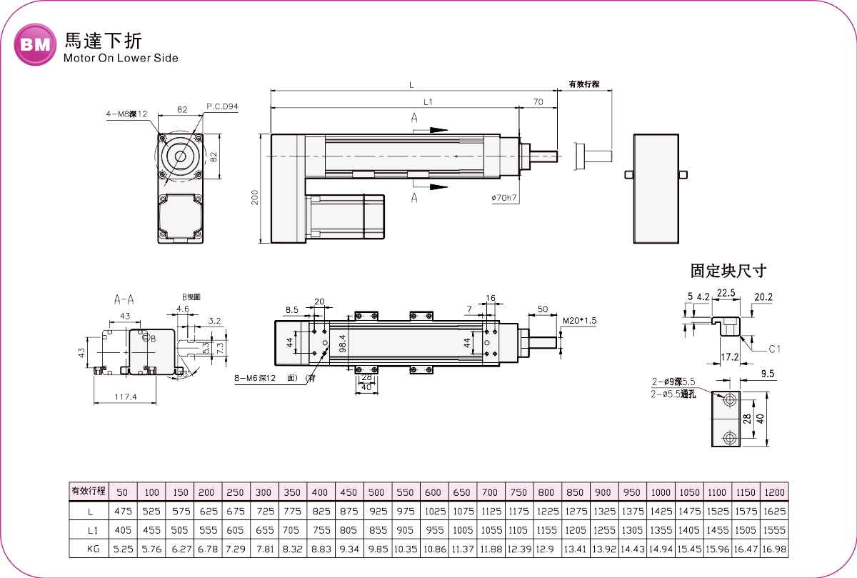 ระยะการเคลื่อนที่: 50-1200 มม.