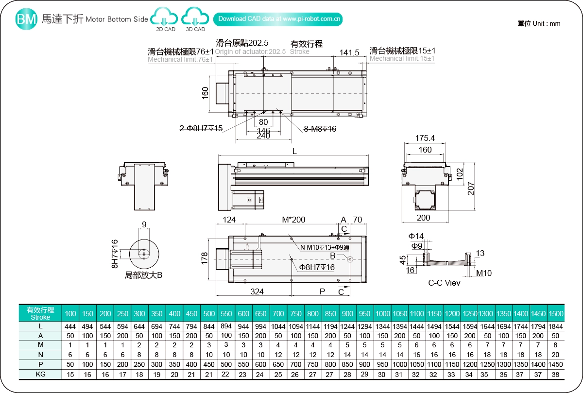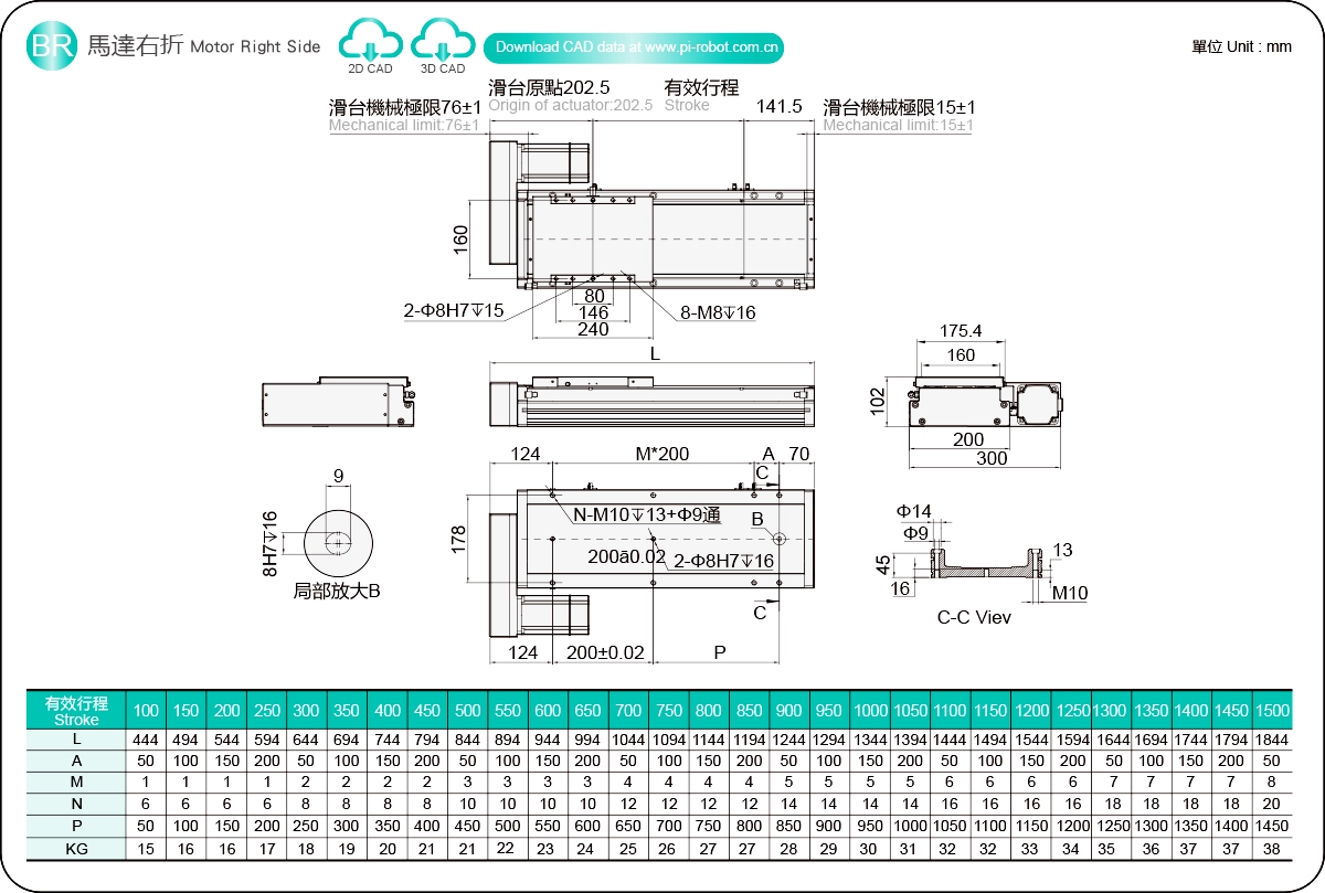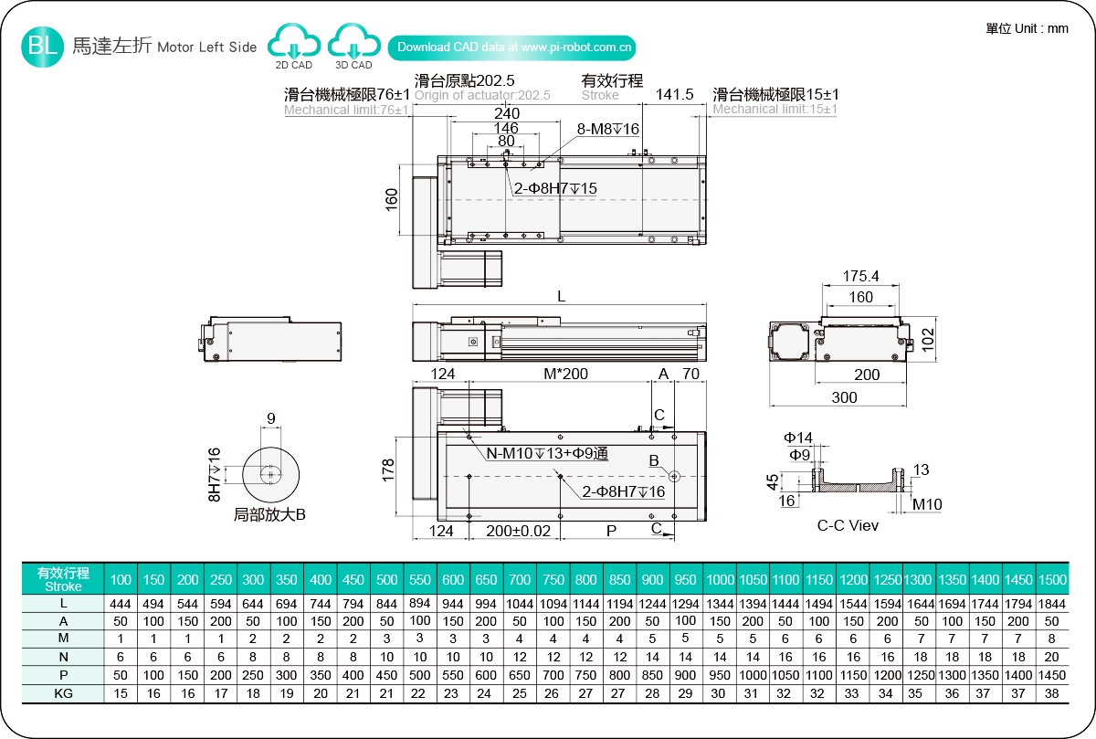 ระยะการเคลื่อนที่: 100-1500 มม.