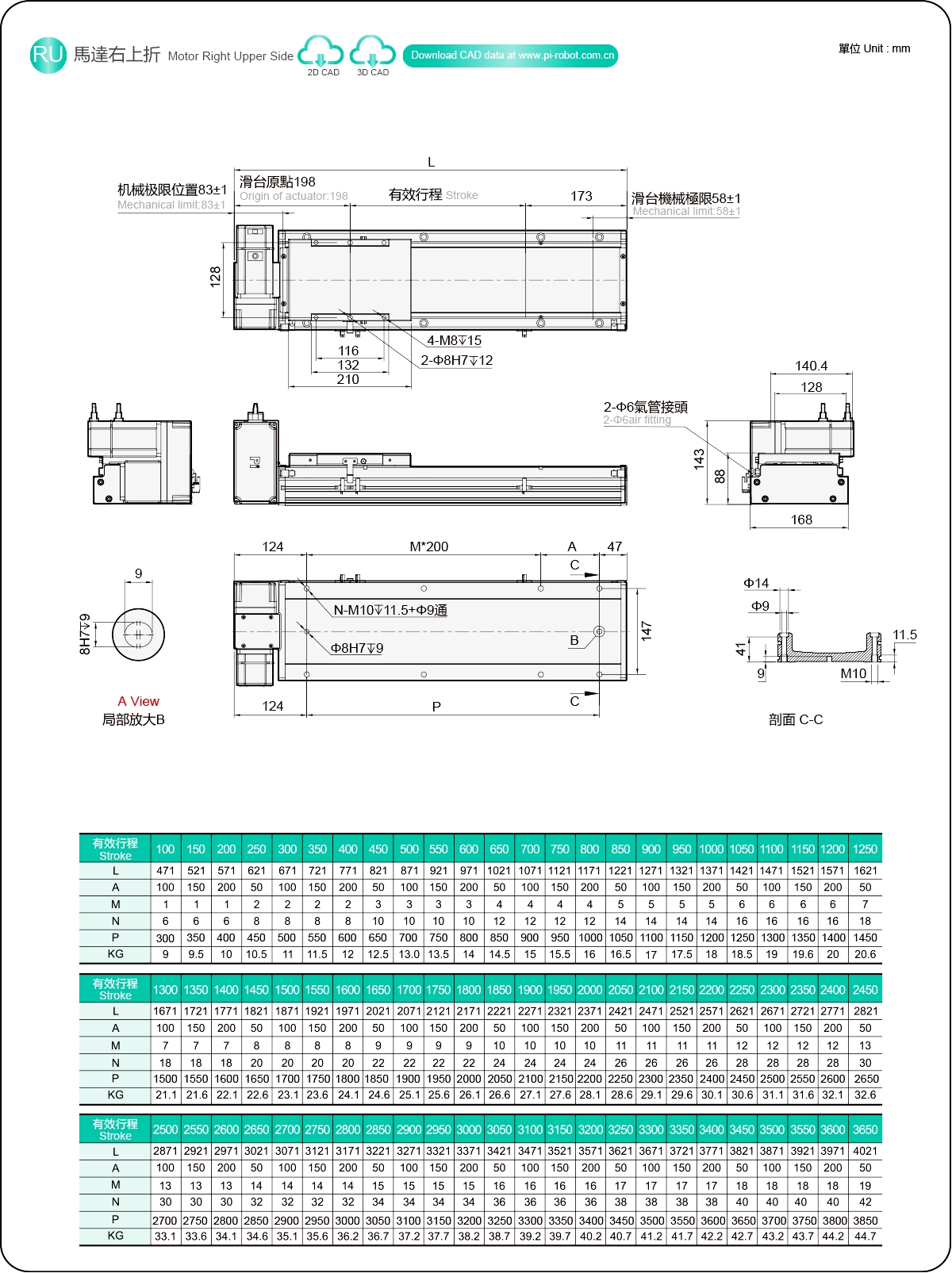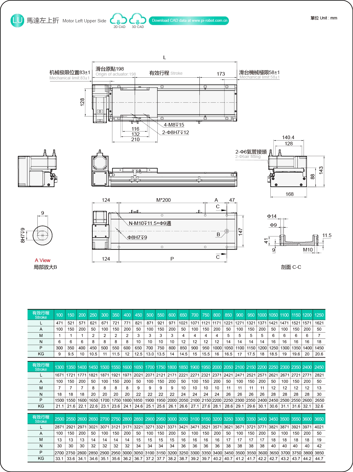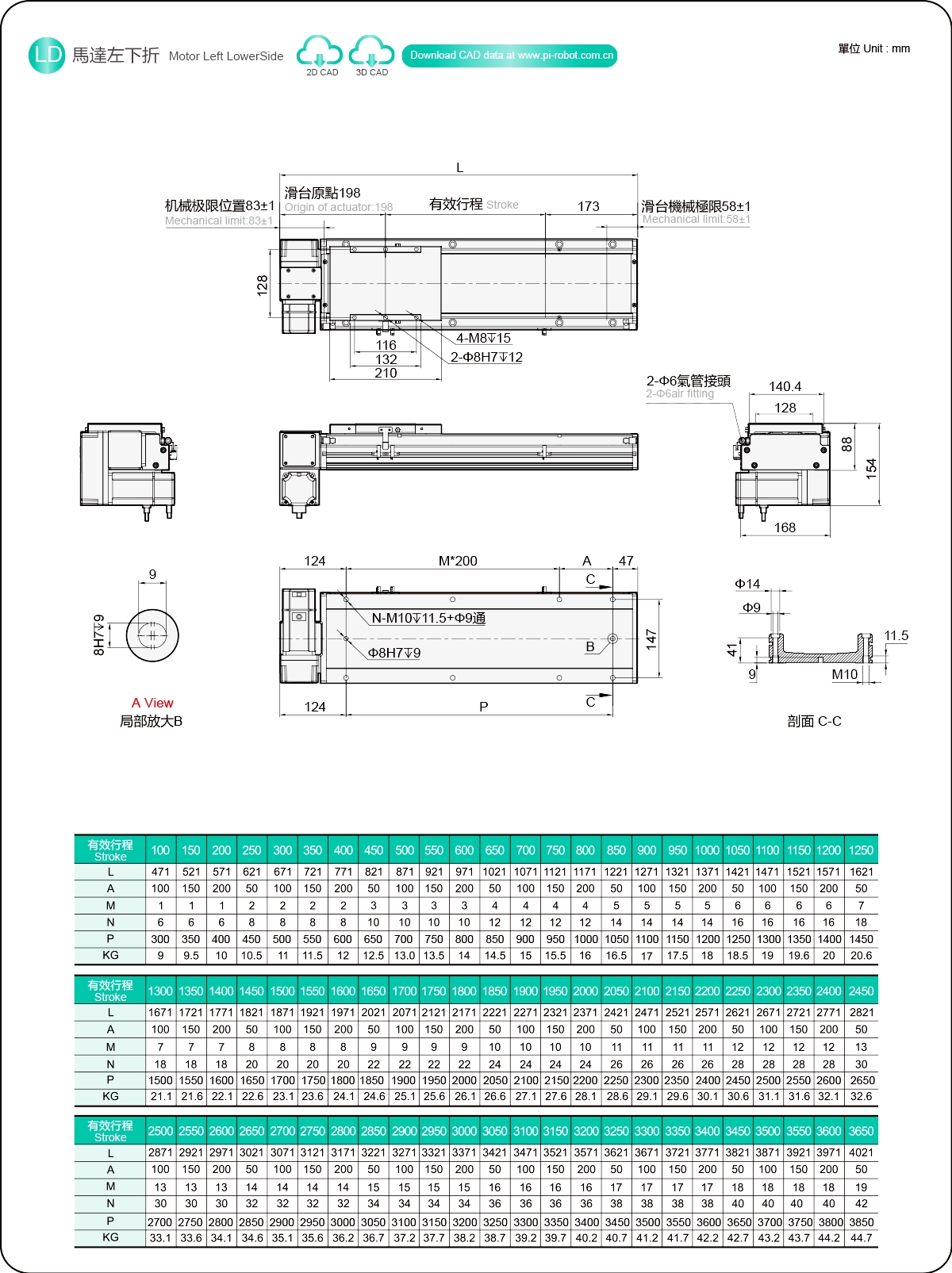| ระยะชัก (มม.) | 100-3650 มม./ระยะห่าง 50 มม. | ||
