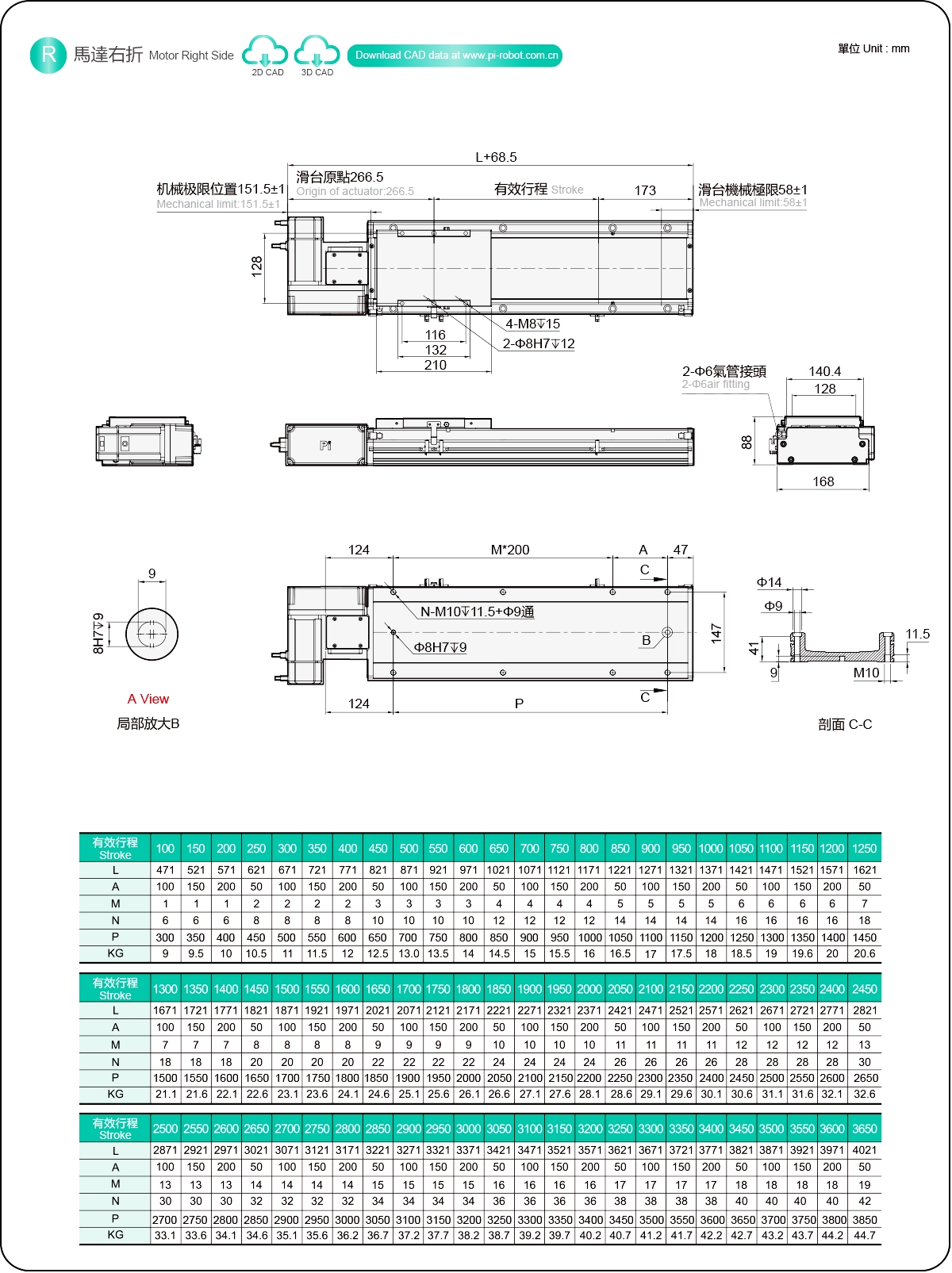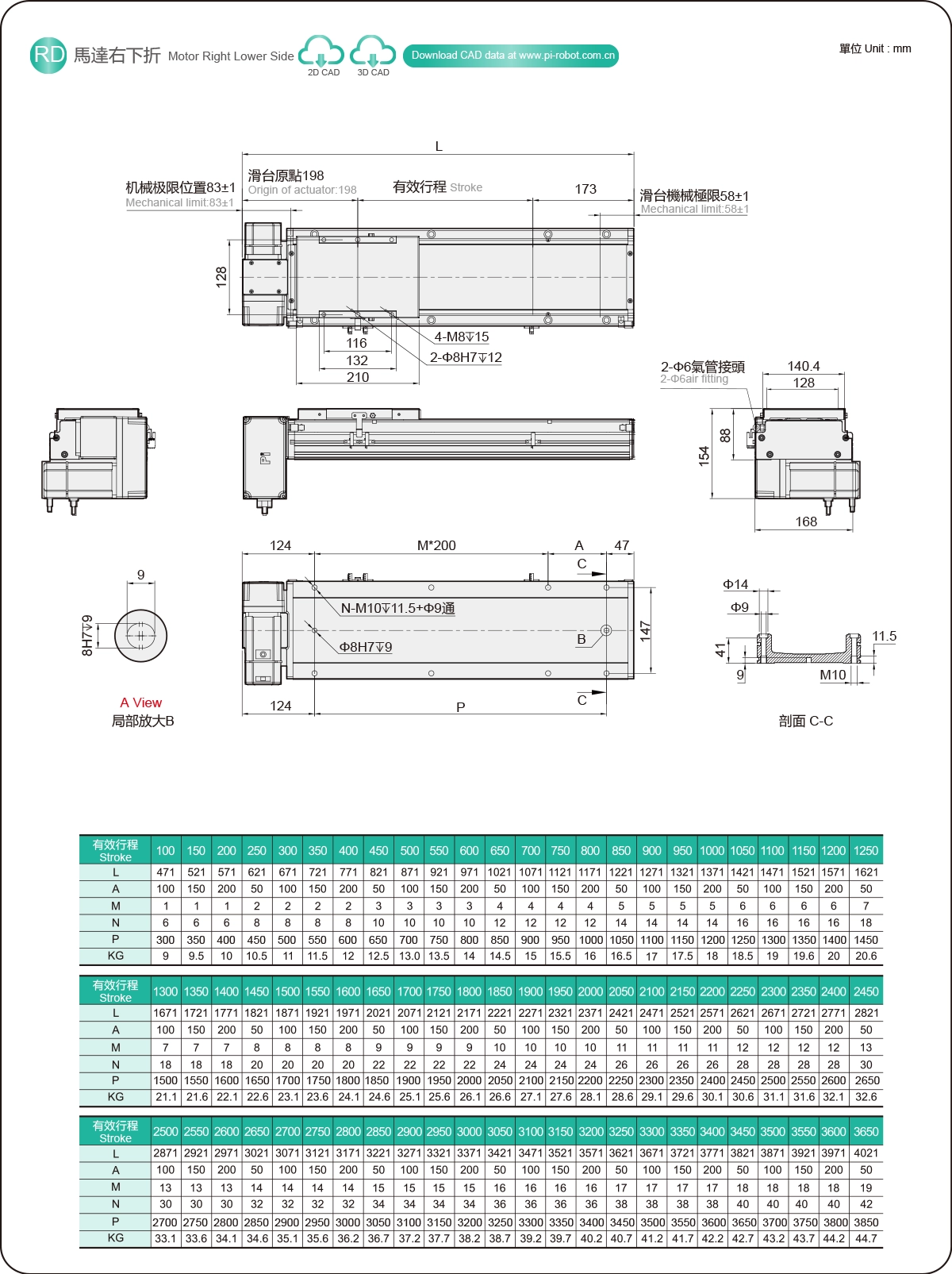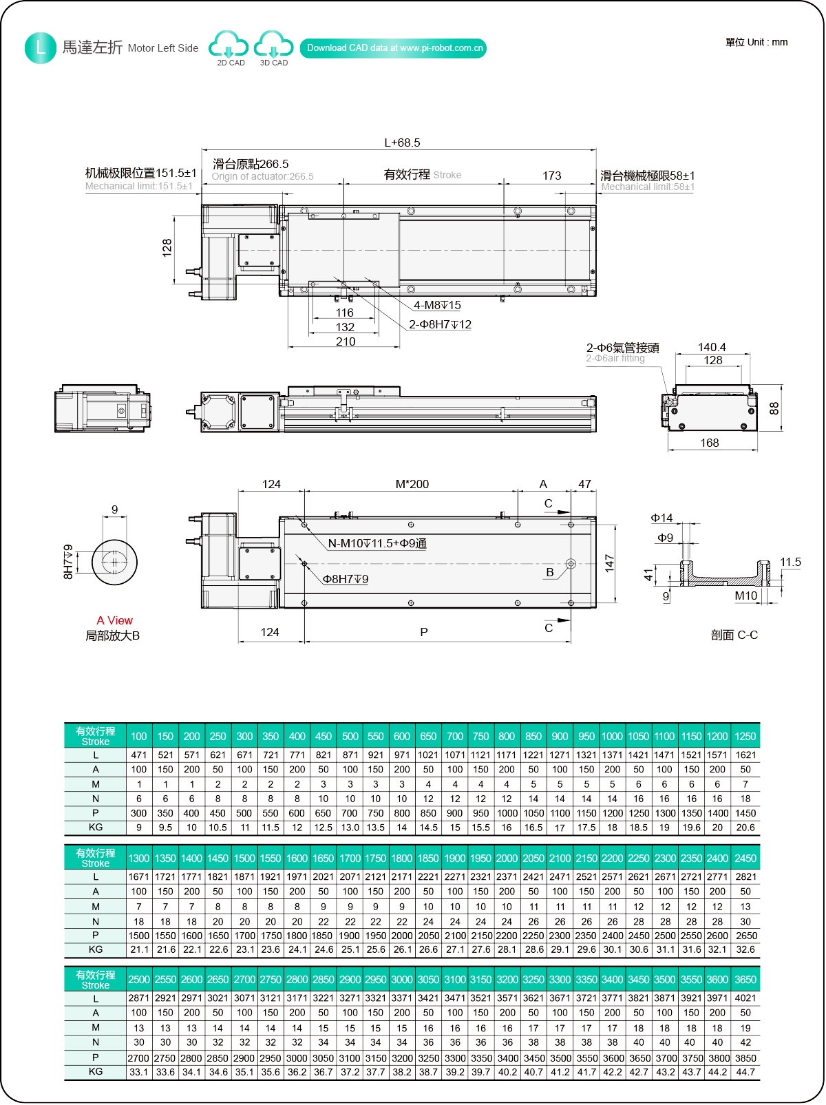 | ระยะชัก (มม.) | 100-3650 มม./ระยะห่าง 50 มม. | ||