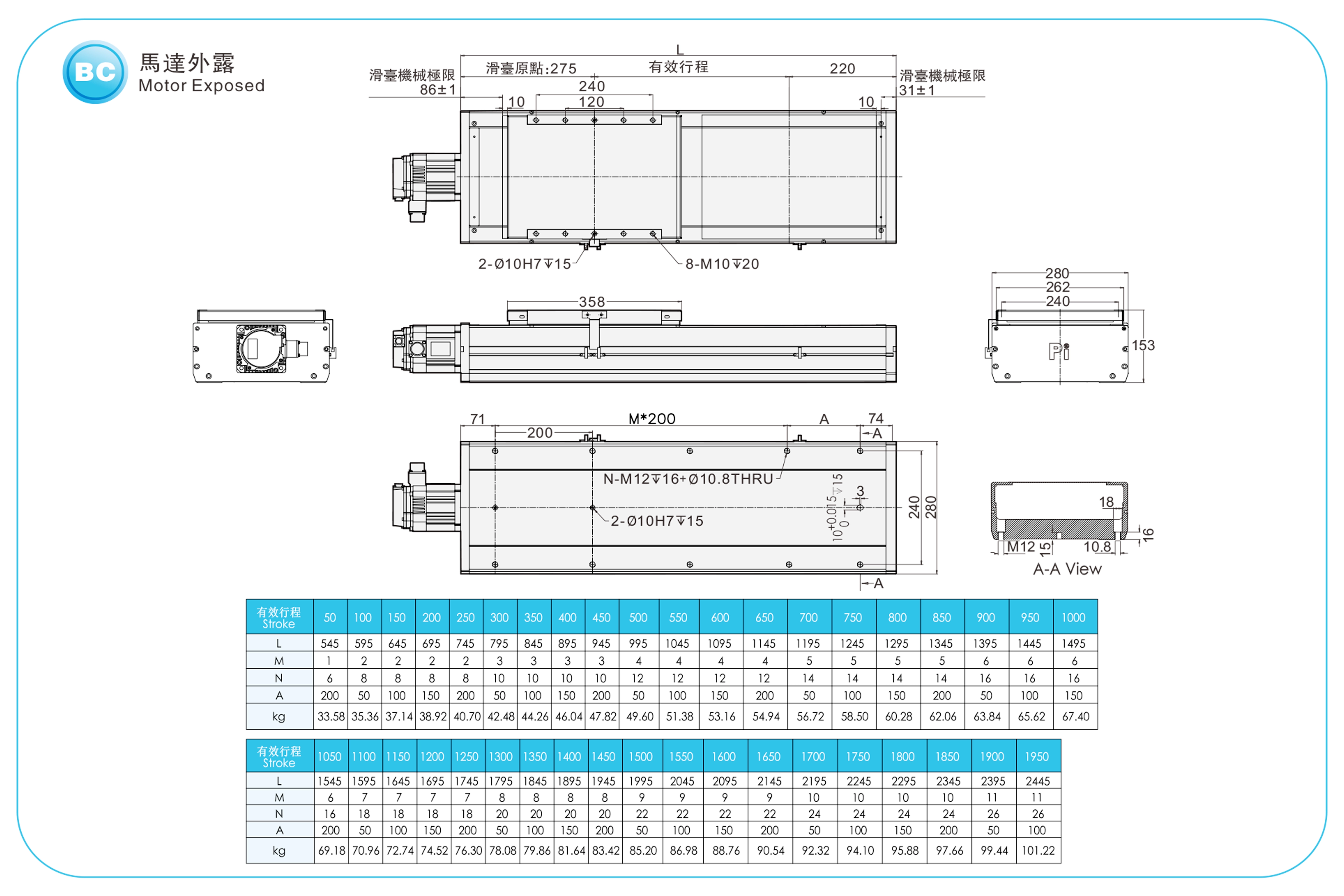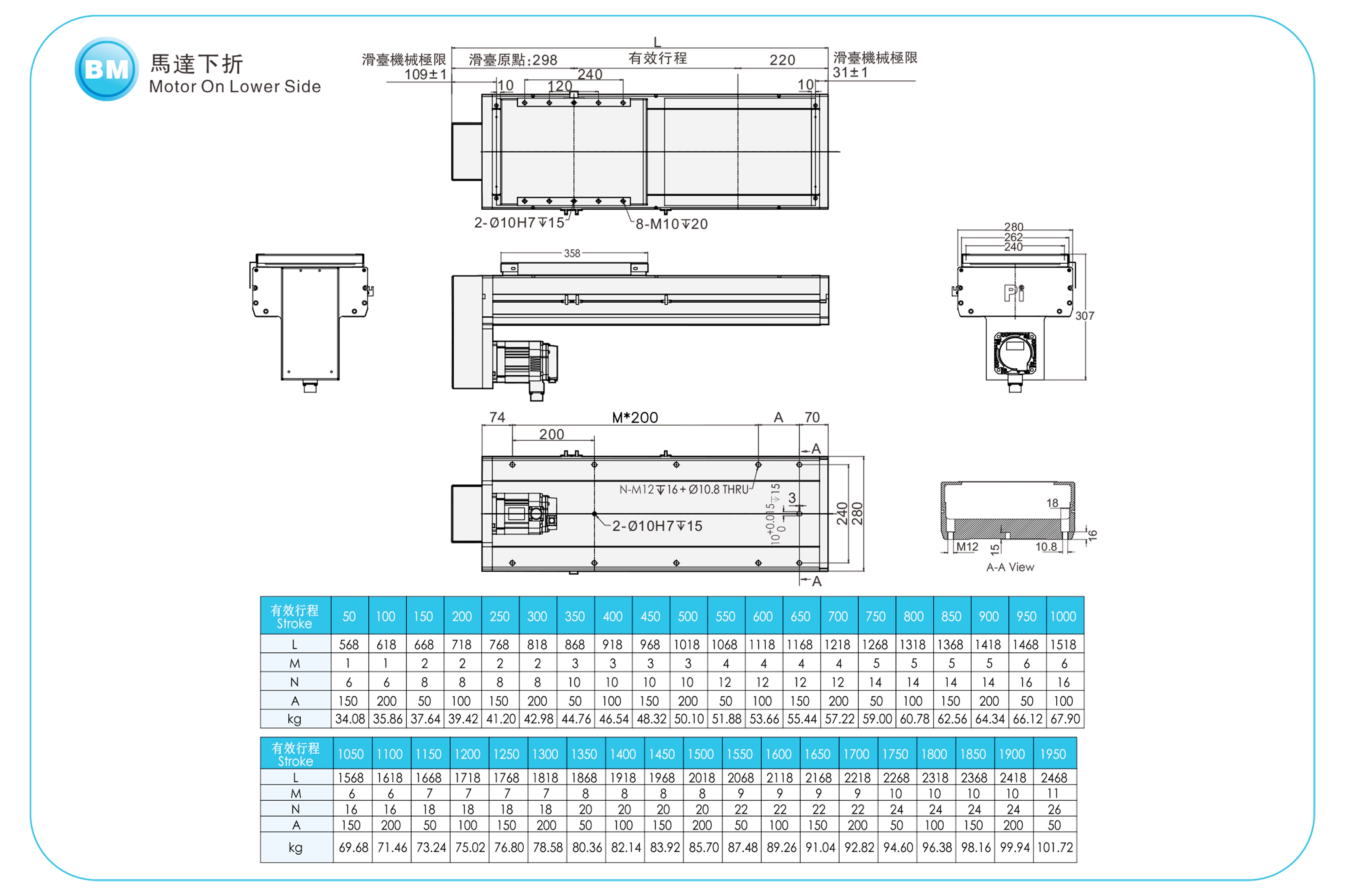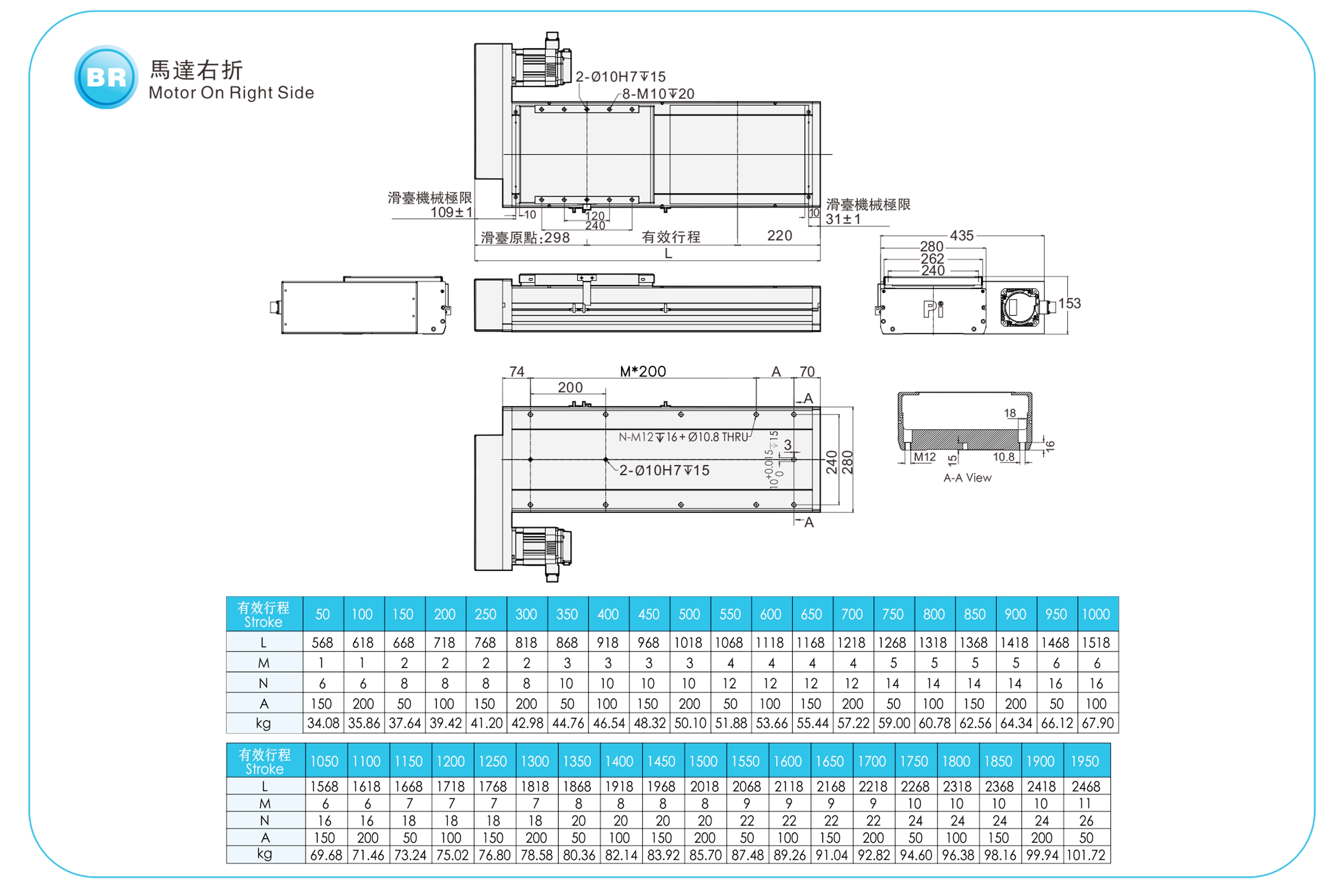 | ระยะชัก (มม.) | 100-1950 มม./ระยะห่าง 50 มม. | ||||