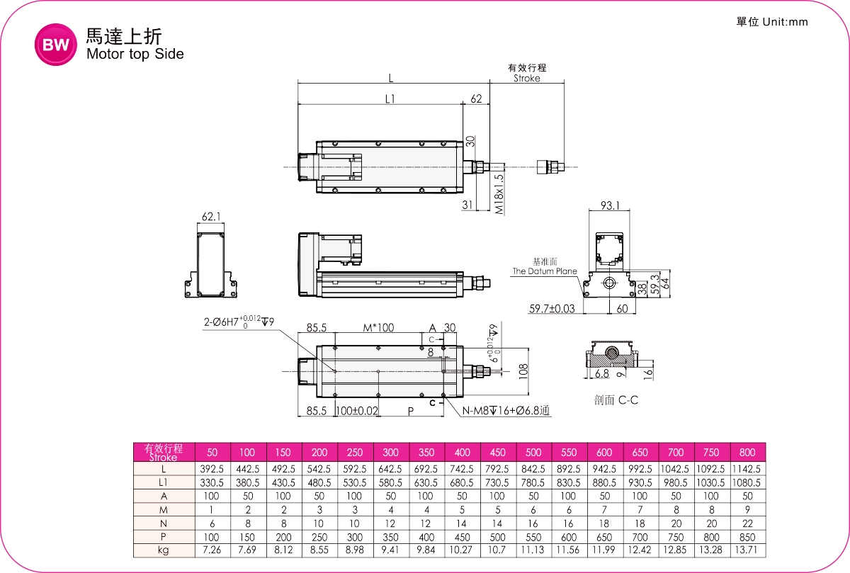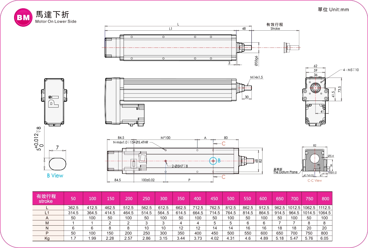 | ระยะชัก (มม.) | 50-800 มม./50 ระยะห่างระหว่างเกลียว | ||||