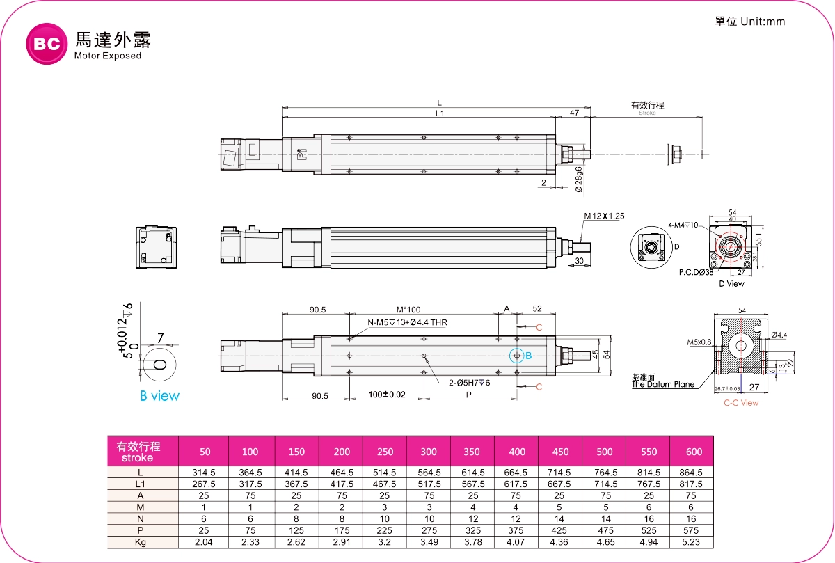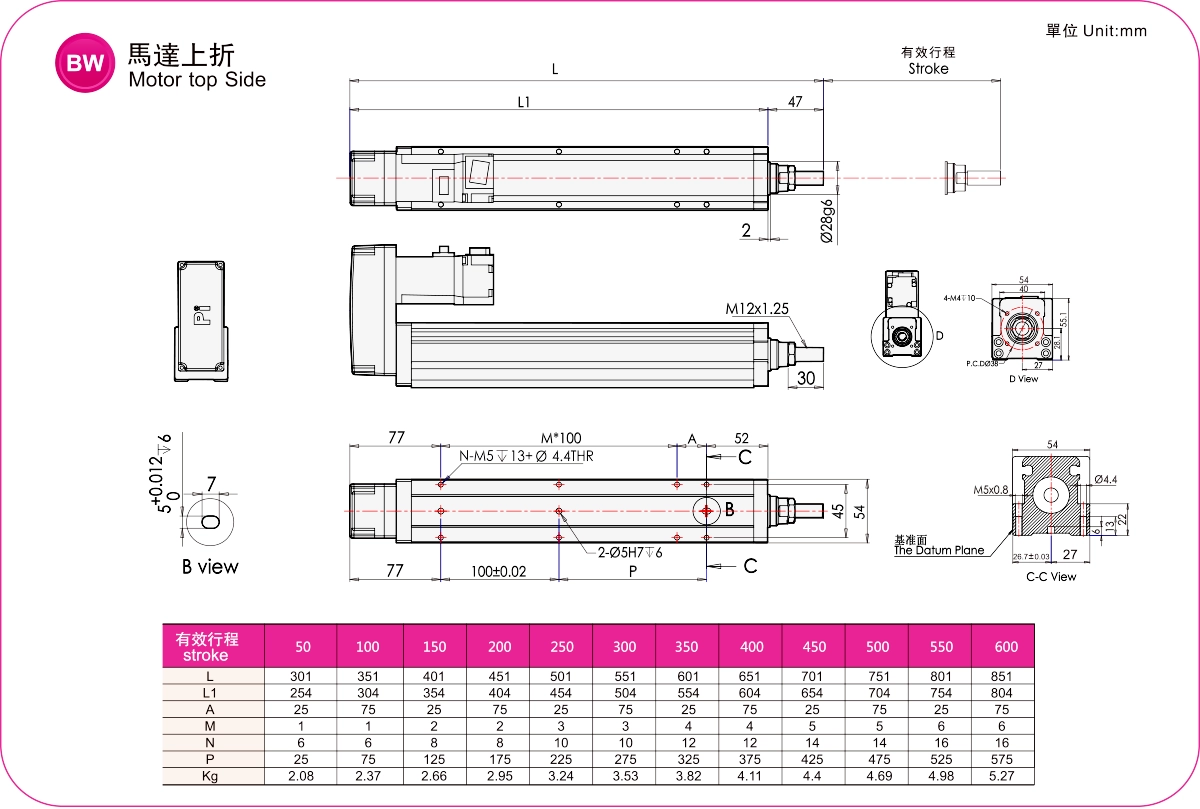 | ระยะชัก (มม.) ※2 | 50-600 มม./50 ระยะห่างระหว่างเกลียว | |||||