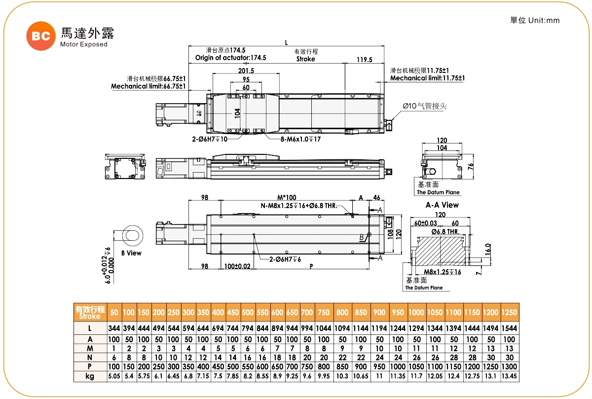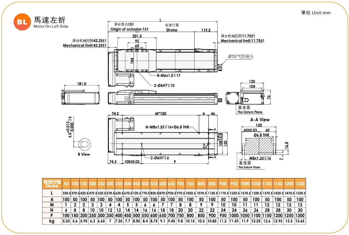 | รางนำเชิงเส้นที่มีความแข็งแกร่งสูง (มม.) | แอคชูเอเตอร์บอลสกรู | |||||