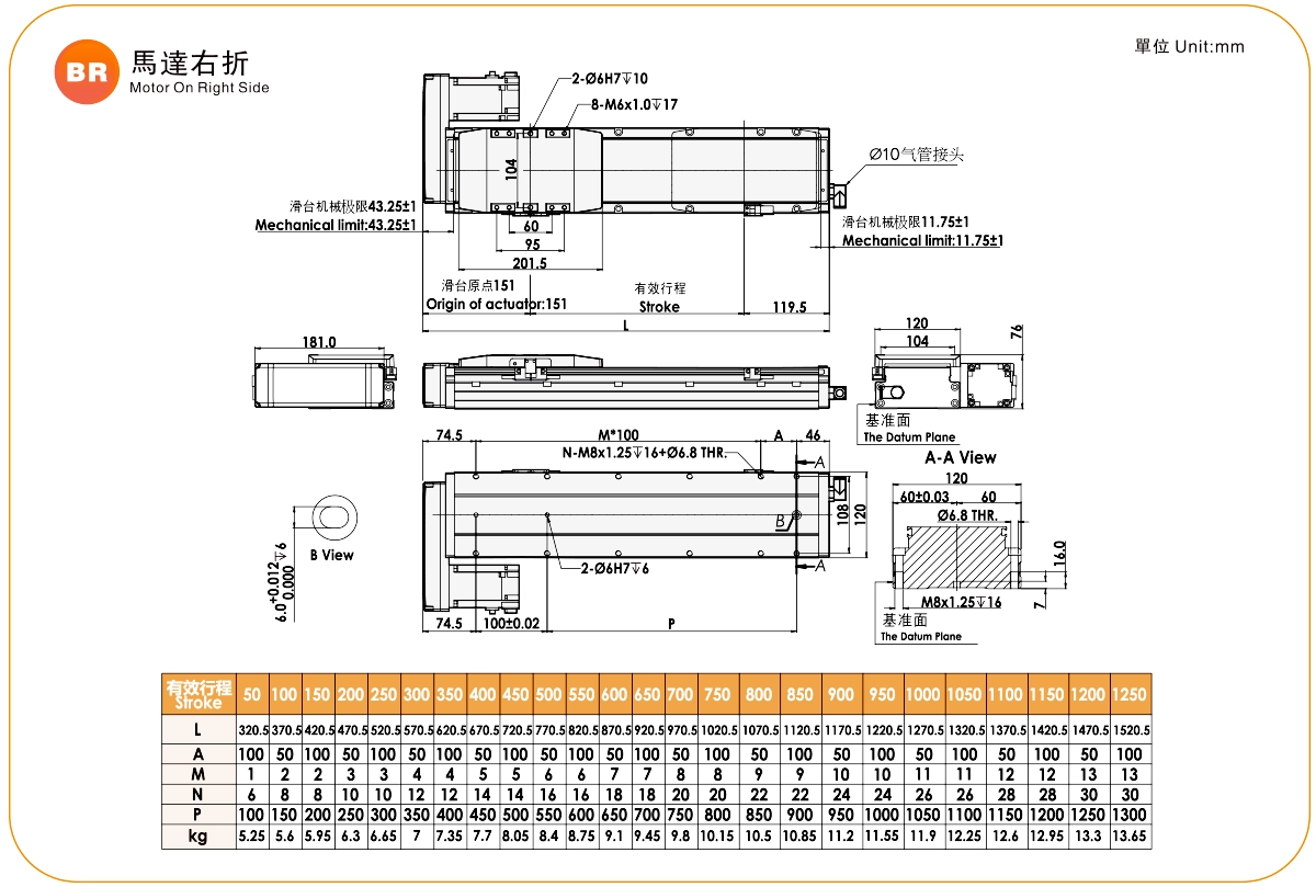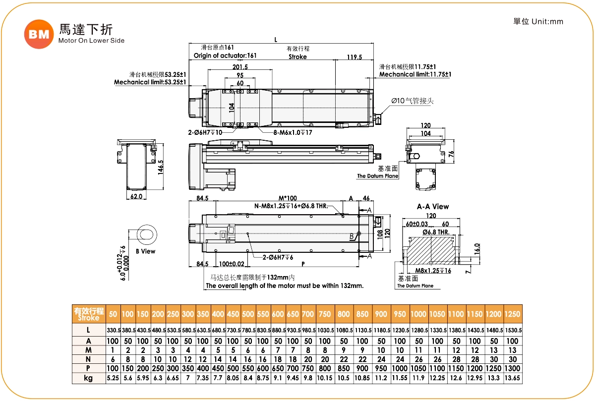 ระยะการเคลื่อนที่: 50-1250 มม.