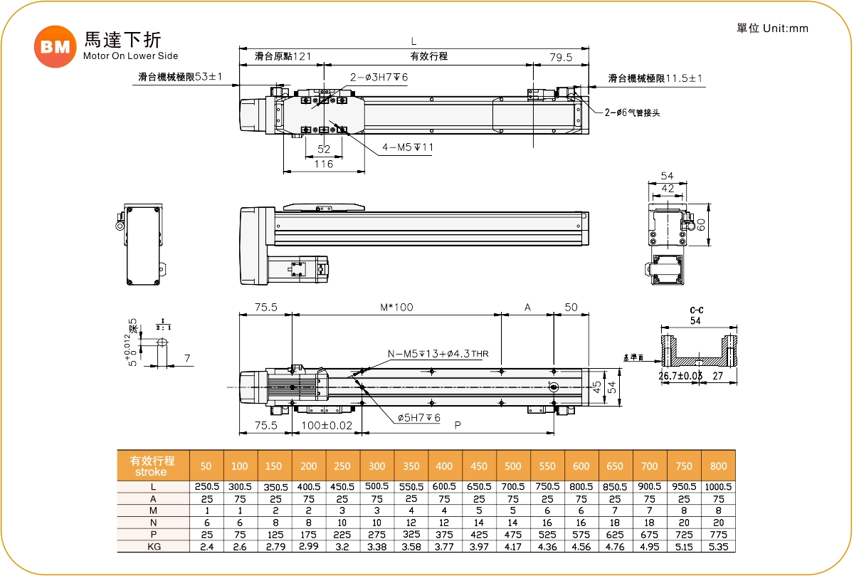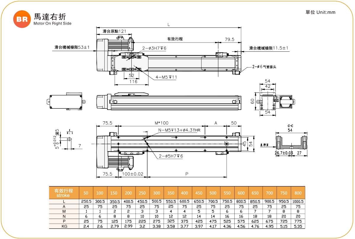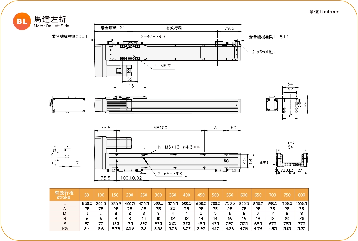 | ระยะชัก (มม.) | 50-800 มม./ระยะห่าง 50 มม. | |||||