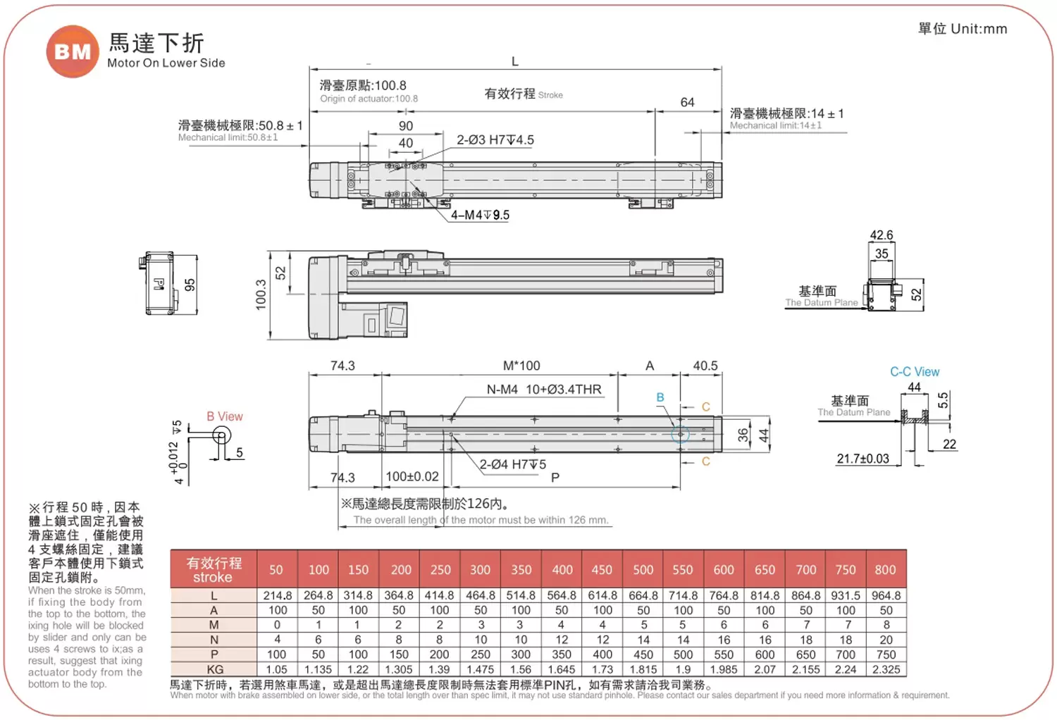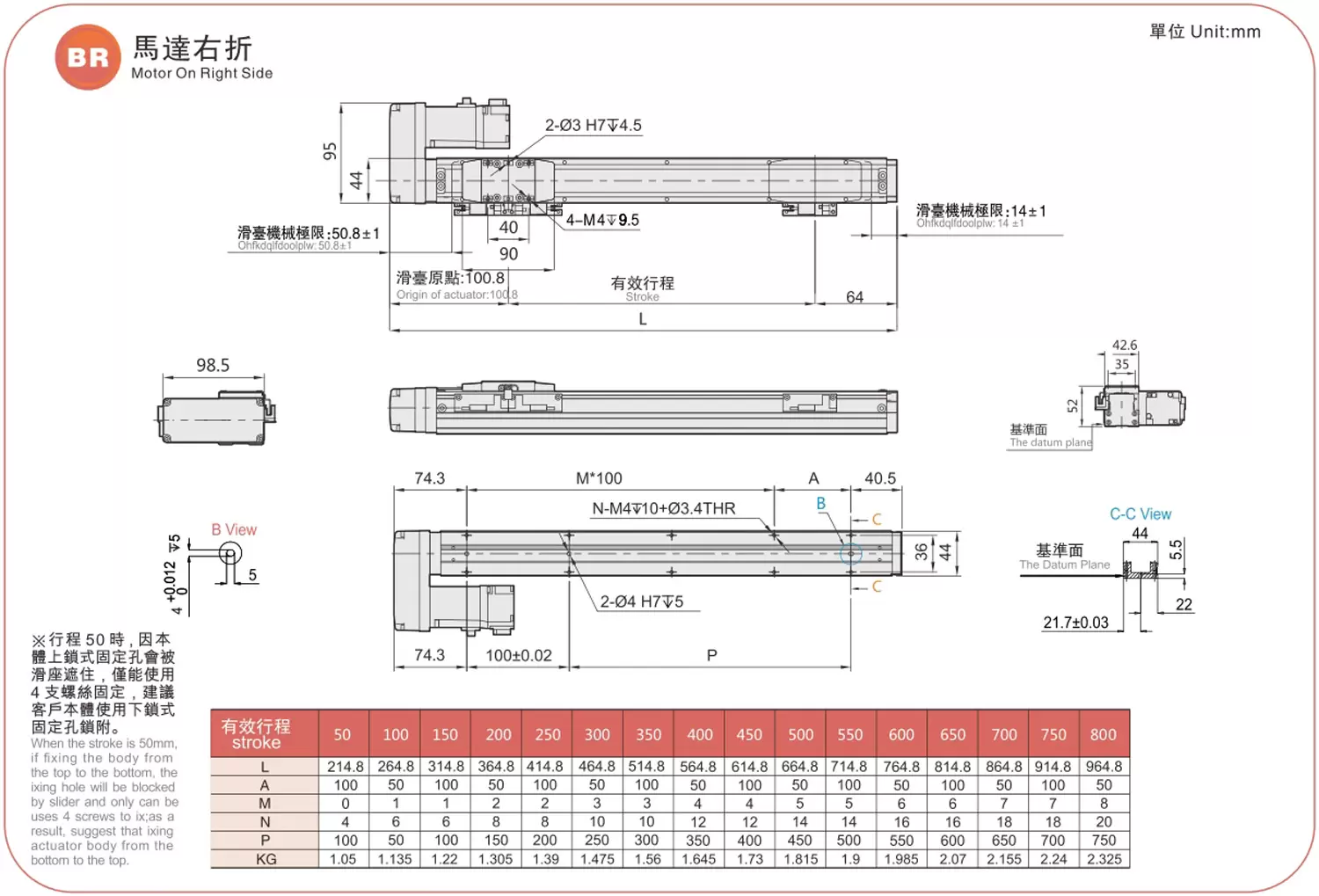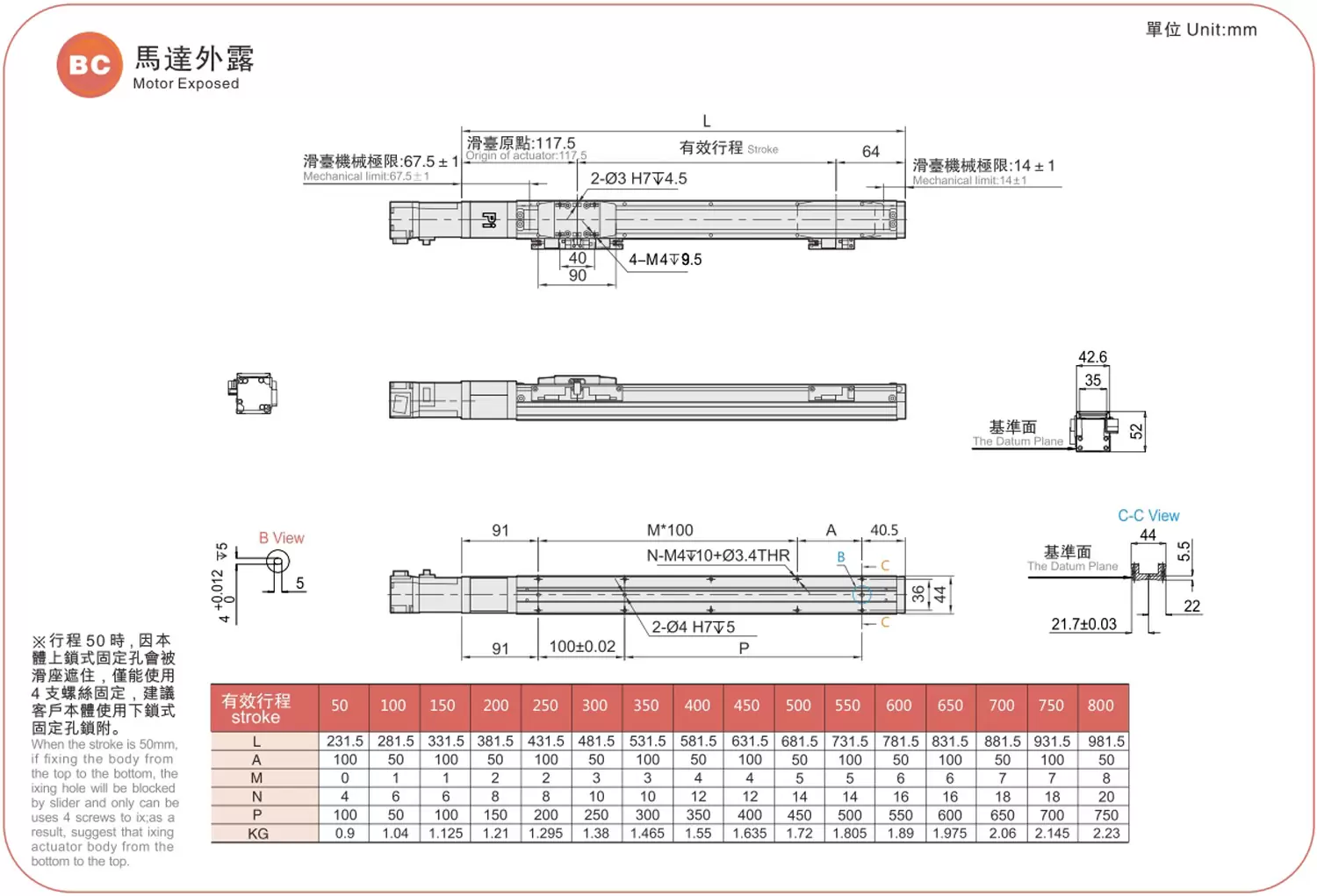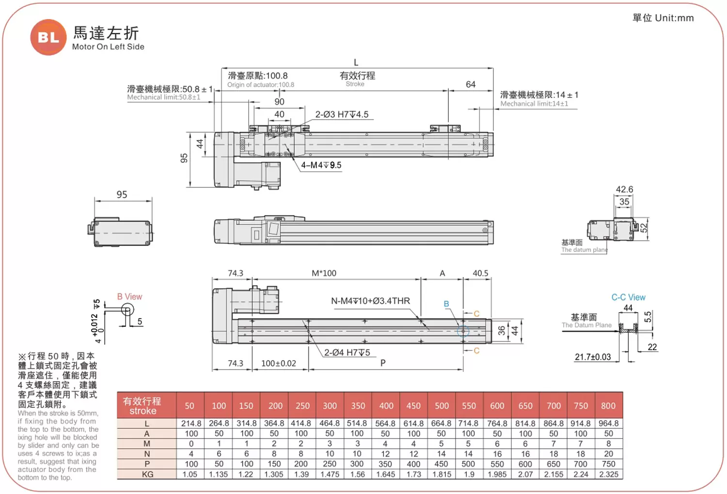 ระยะการเคลื่อนที่: 50-800 มม.