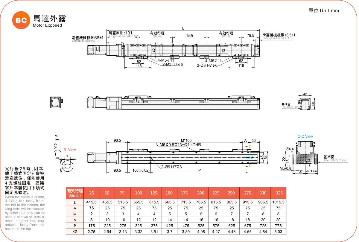 | ระยะชัก (มม.) ※2 | 25-325 มม./25 ระยะห่างระหว่างเกลียว | ||||