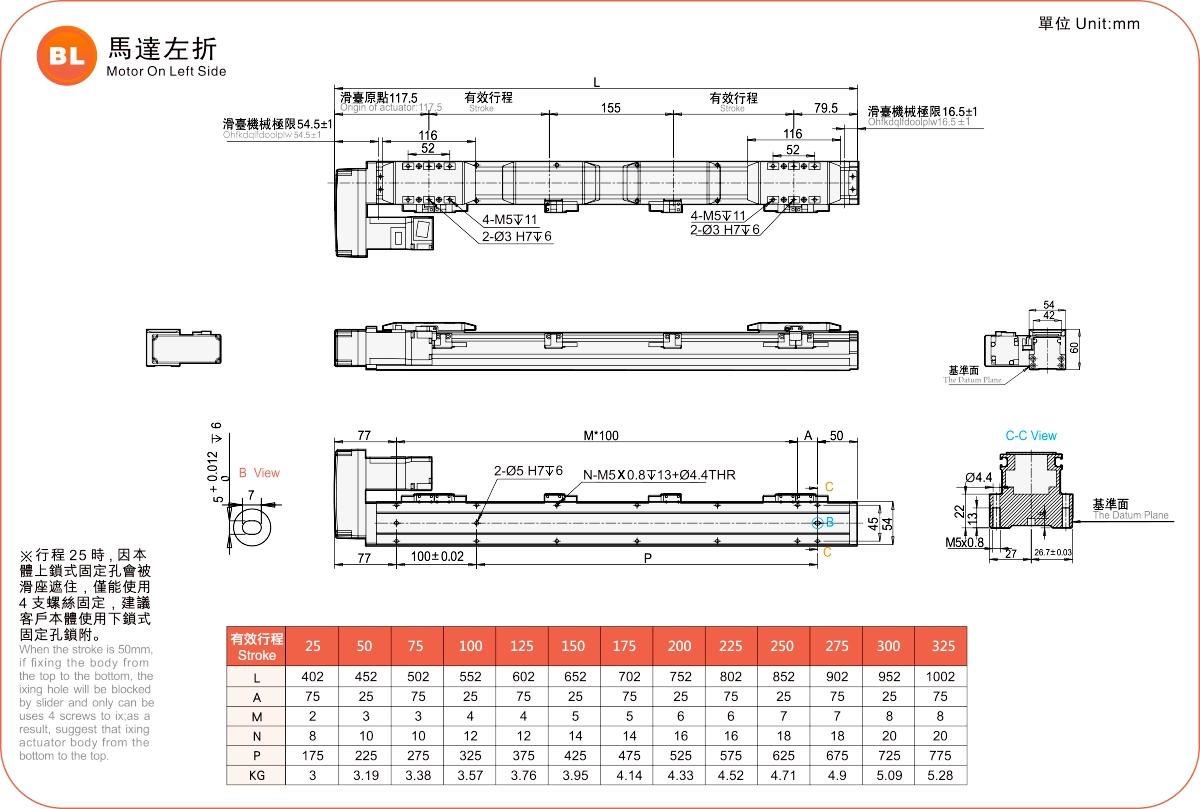 | มาตรฐาน | บอลสกรู | จีอาร์เอช 5เอ็ม | 100 วัตต์ | 54 | ±0.01 | 12 | 2 | 30 | 10 | 100 |