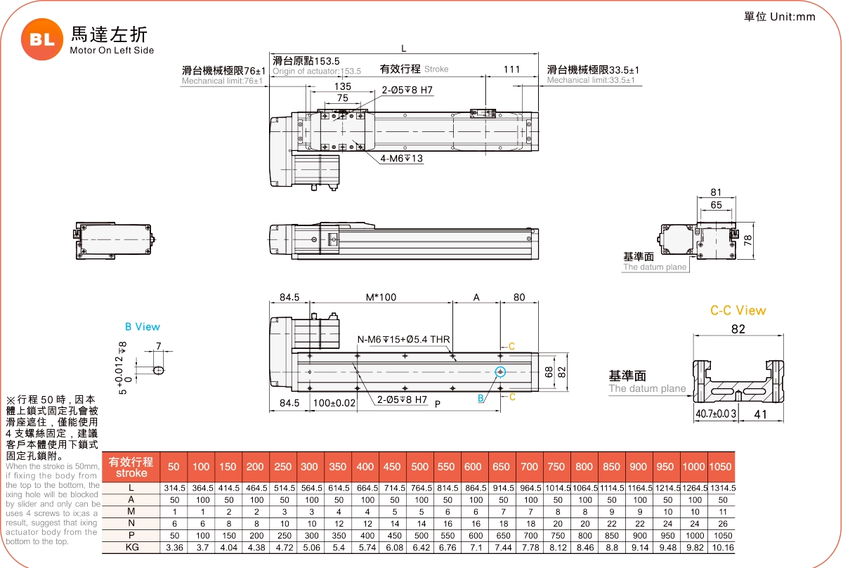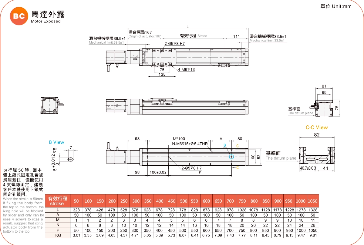 ระยะการเคลื่อนที่: 50-1050 มม.