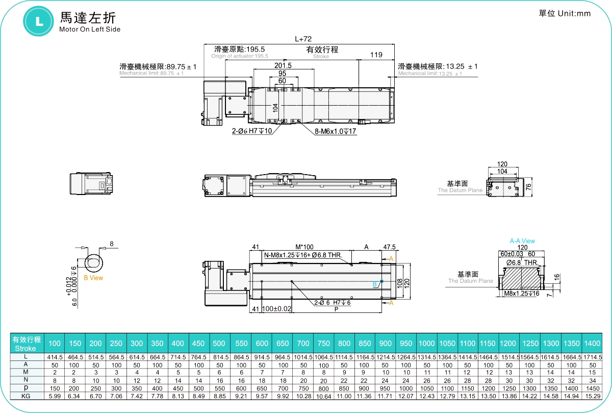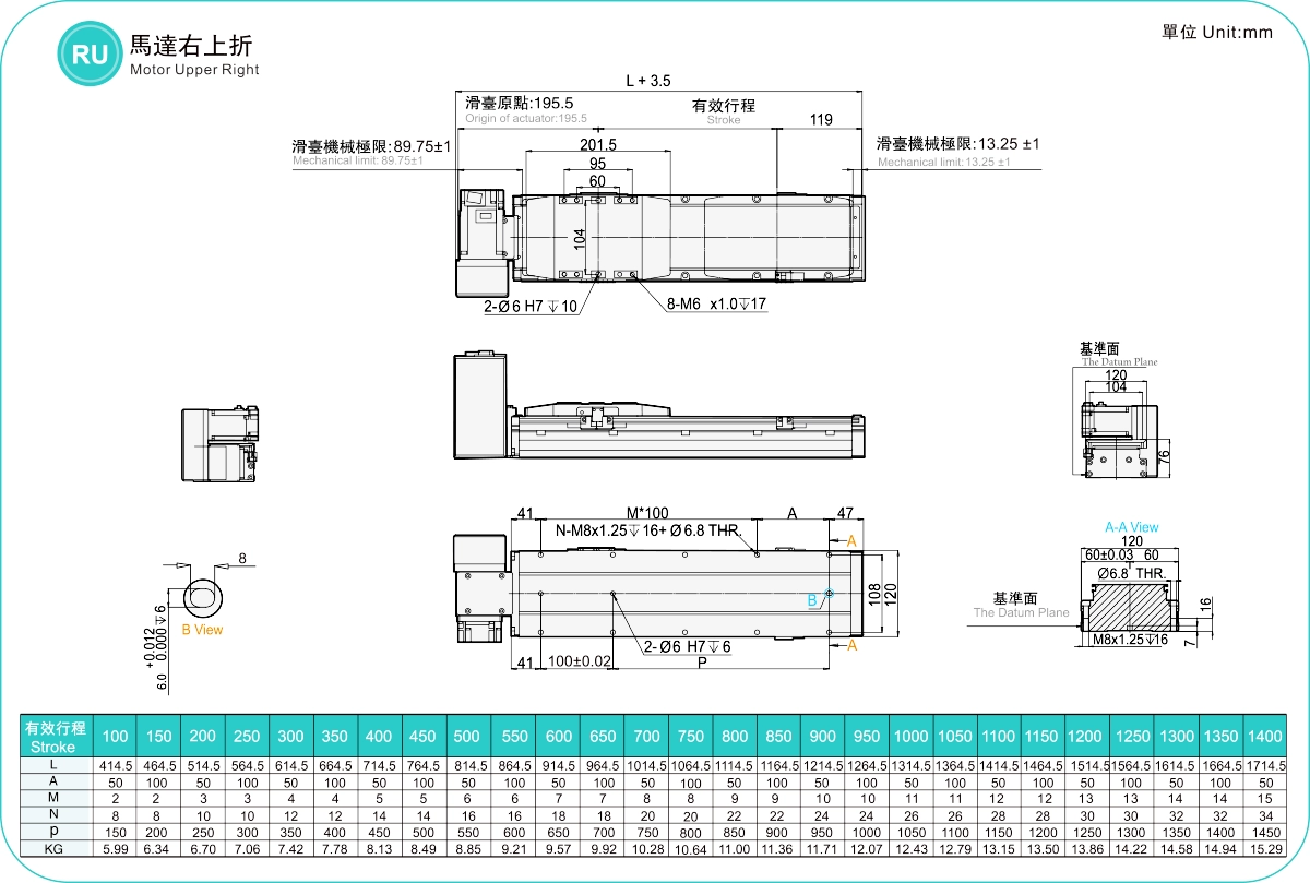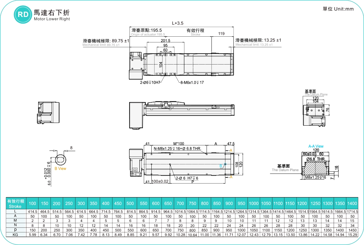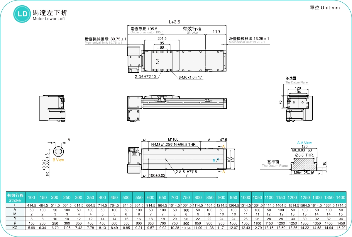 | ระยะชัก (มม.) | 100-1400 มม./ระยะห่าง 50 มม. | ||
