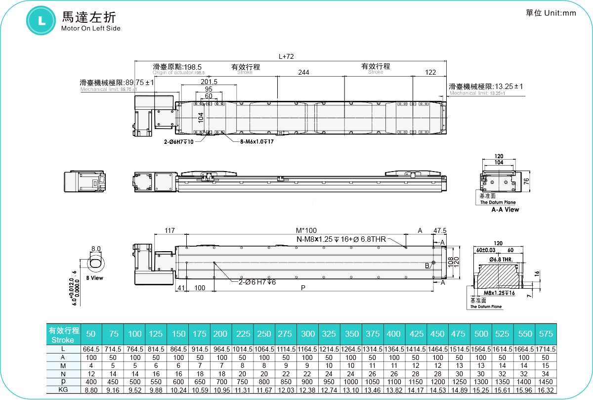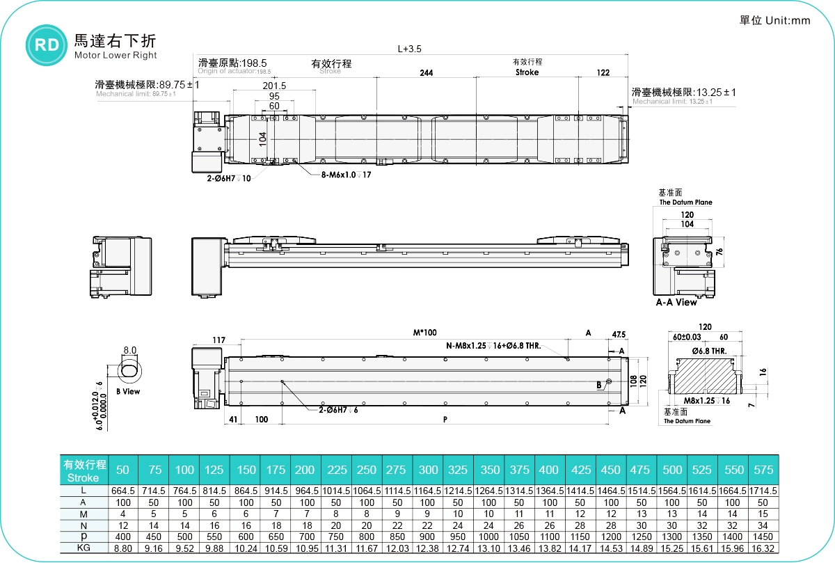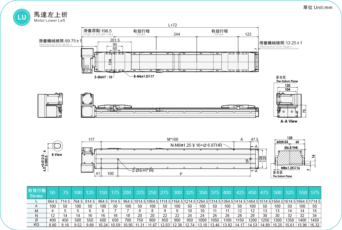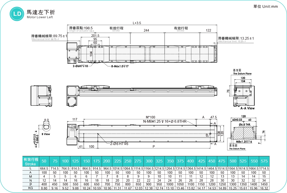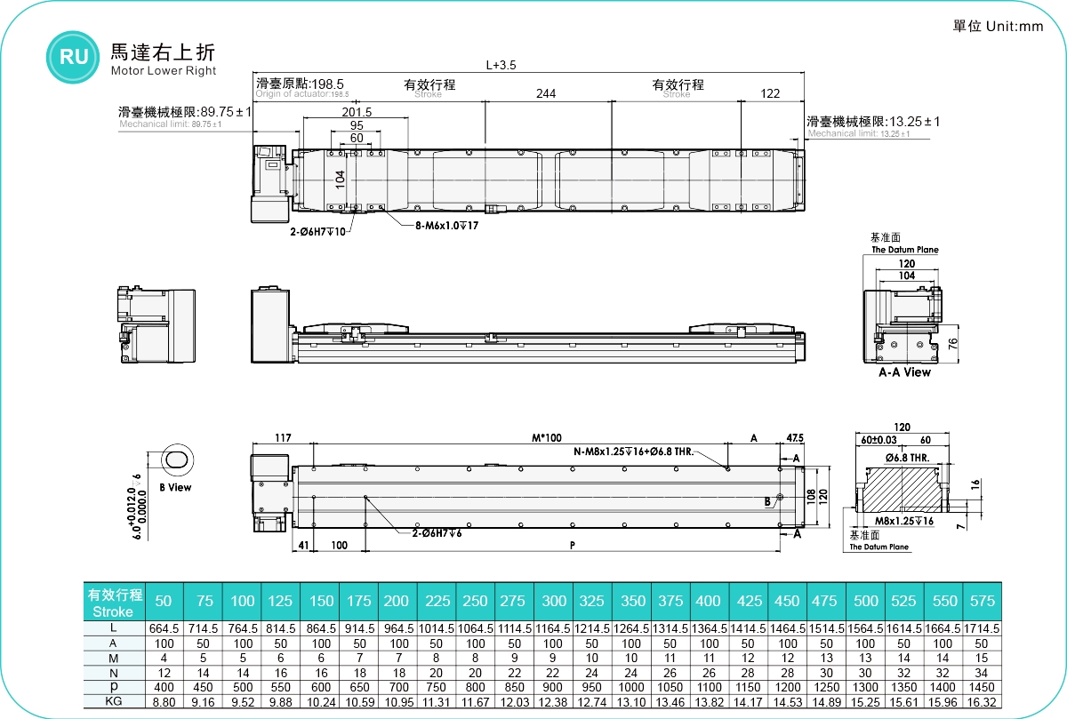 | ระยะชัก (มม.) | 50-575 มม./ระยะห่าง 25 มม. | ||