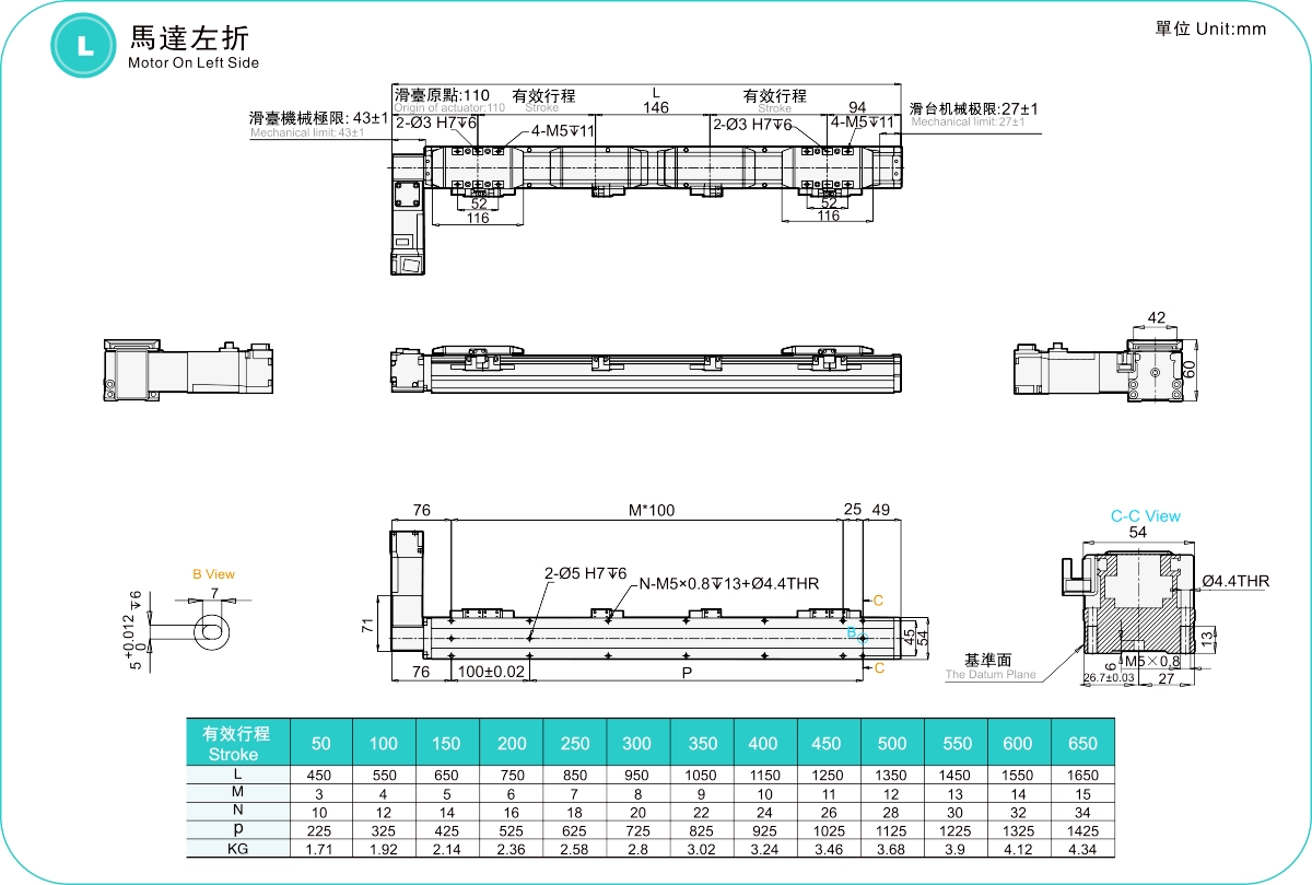 | ระยะชัก (มม.) | 50-650 มม./ระยะห่าง 50 มม. | ||