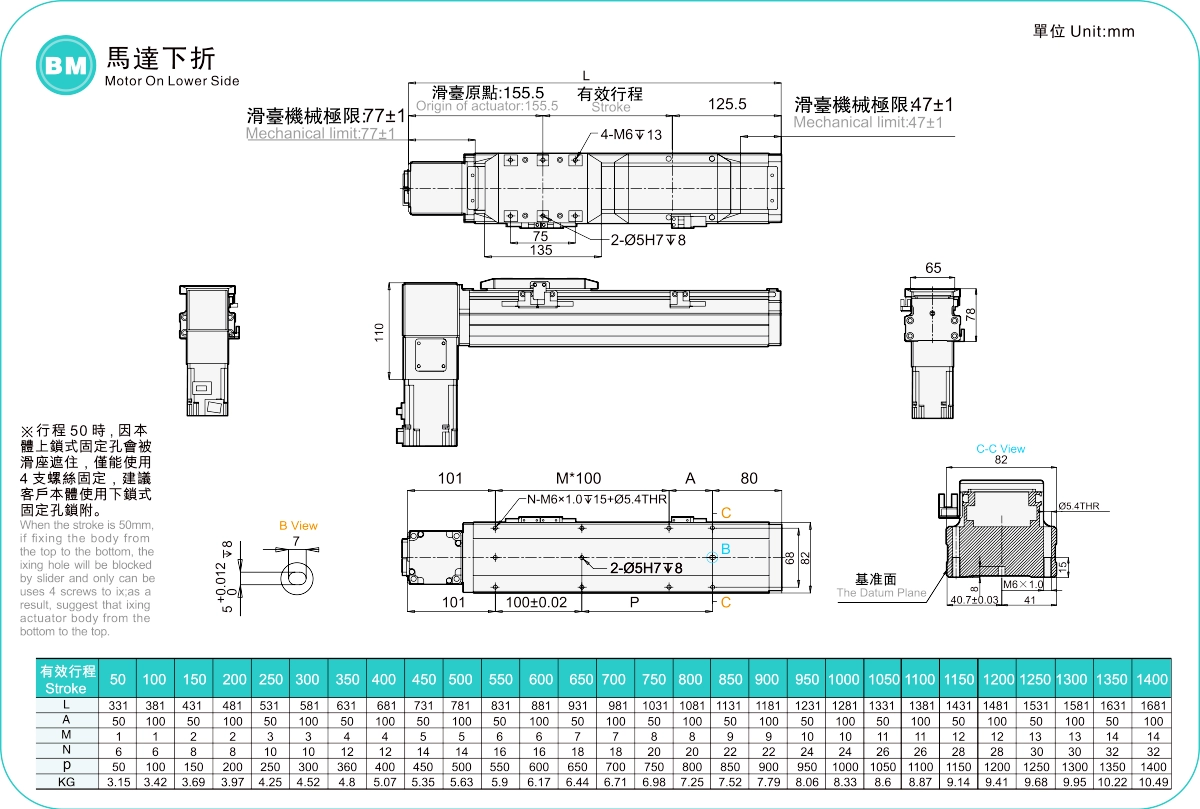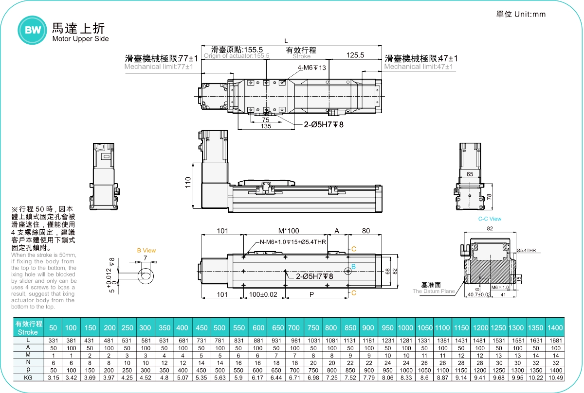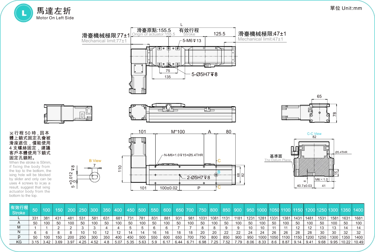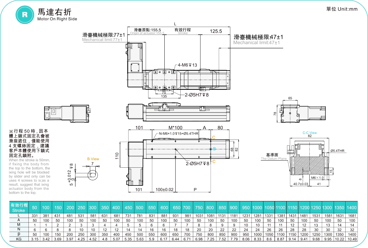 | ระยะชัก (มม.) | 50-1400 มม./ระยะห่าง 50 มม. | ||