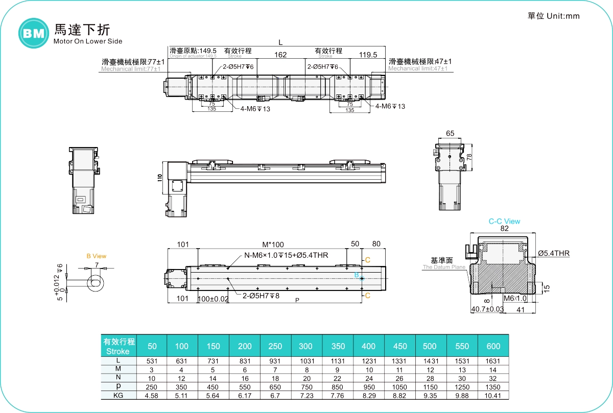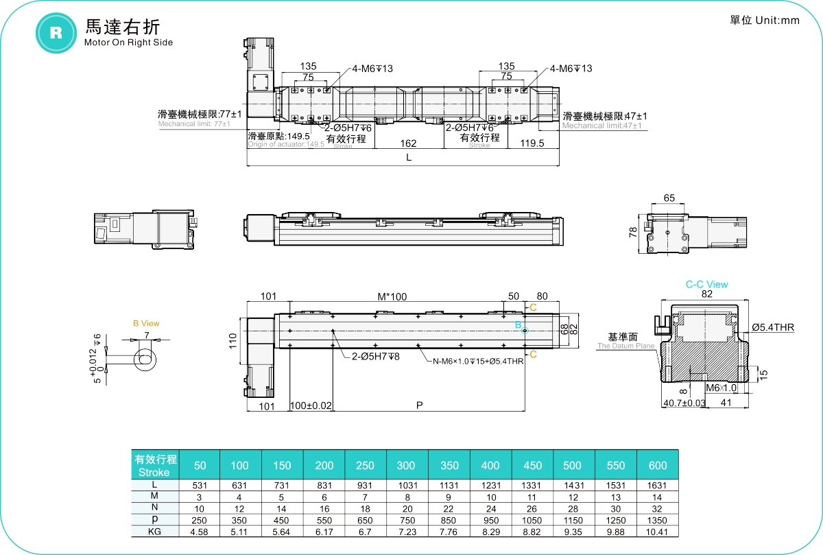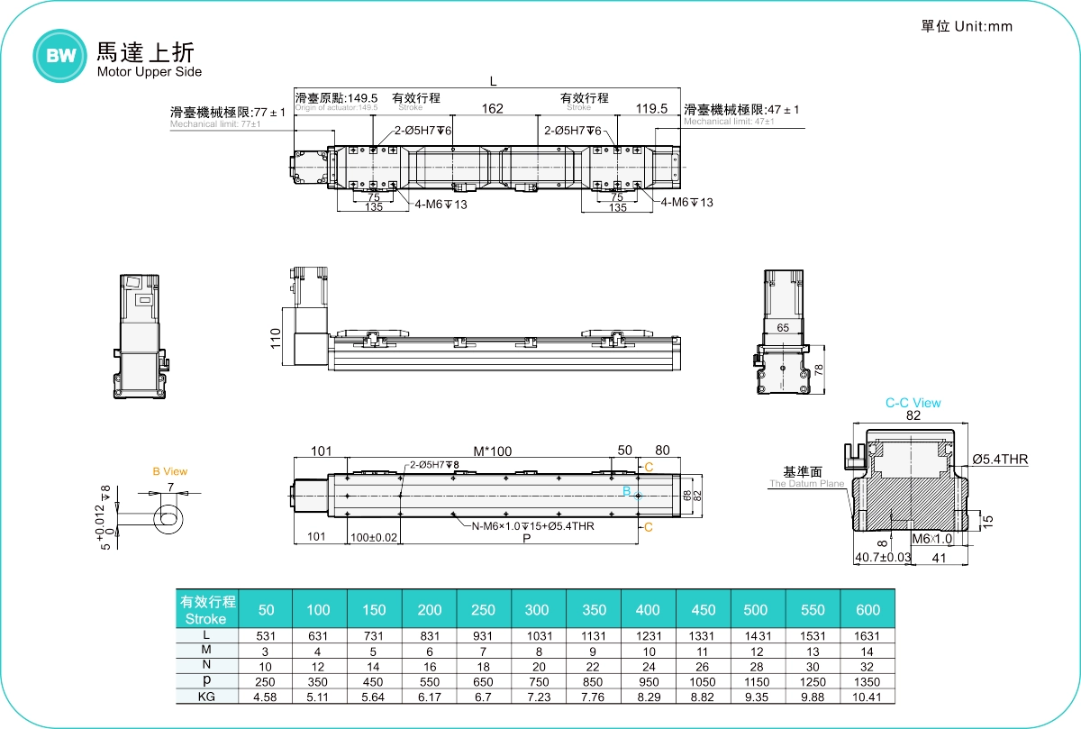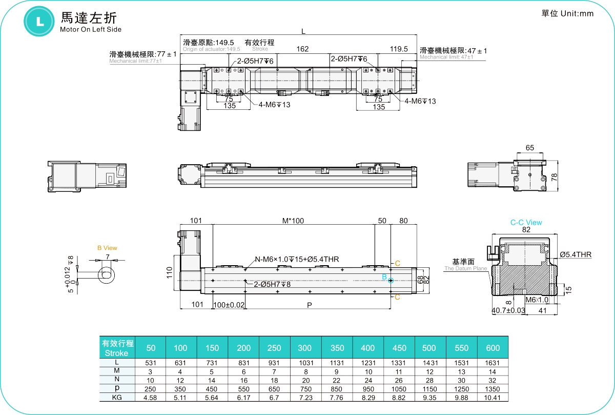 ระยะการเคลื่อนที่: 50-600 มม.