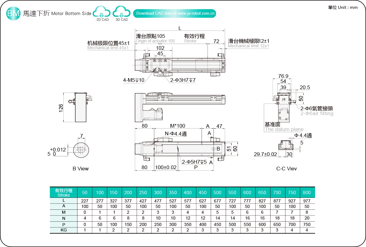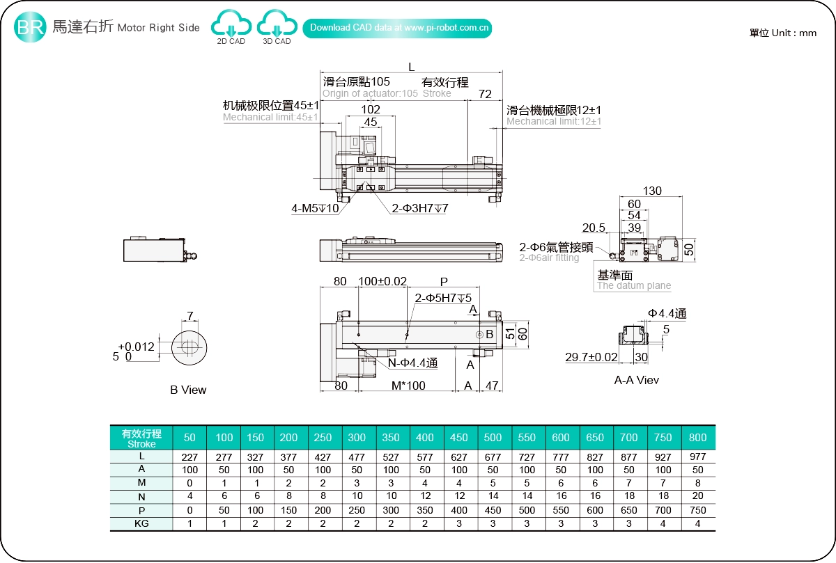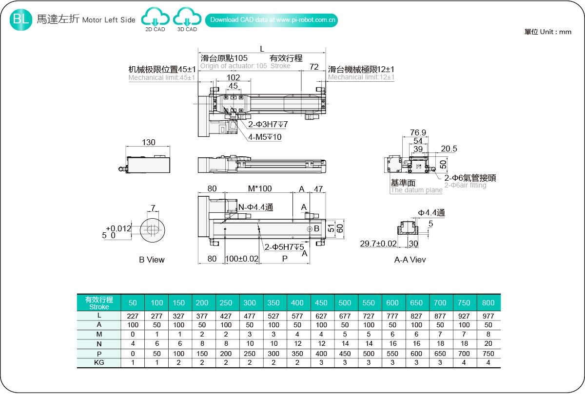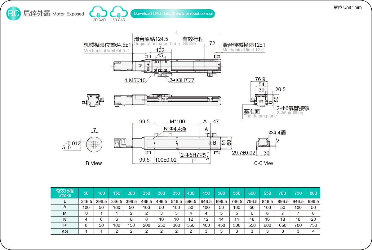 ระยะการเคลื่อนที่: 50-800 มม.
