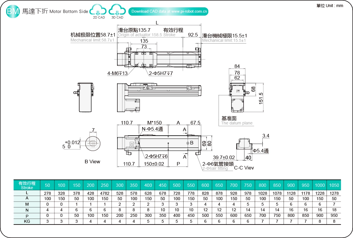 ระยะการเคลื่อนที่: 50-1050 มม.
