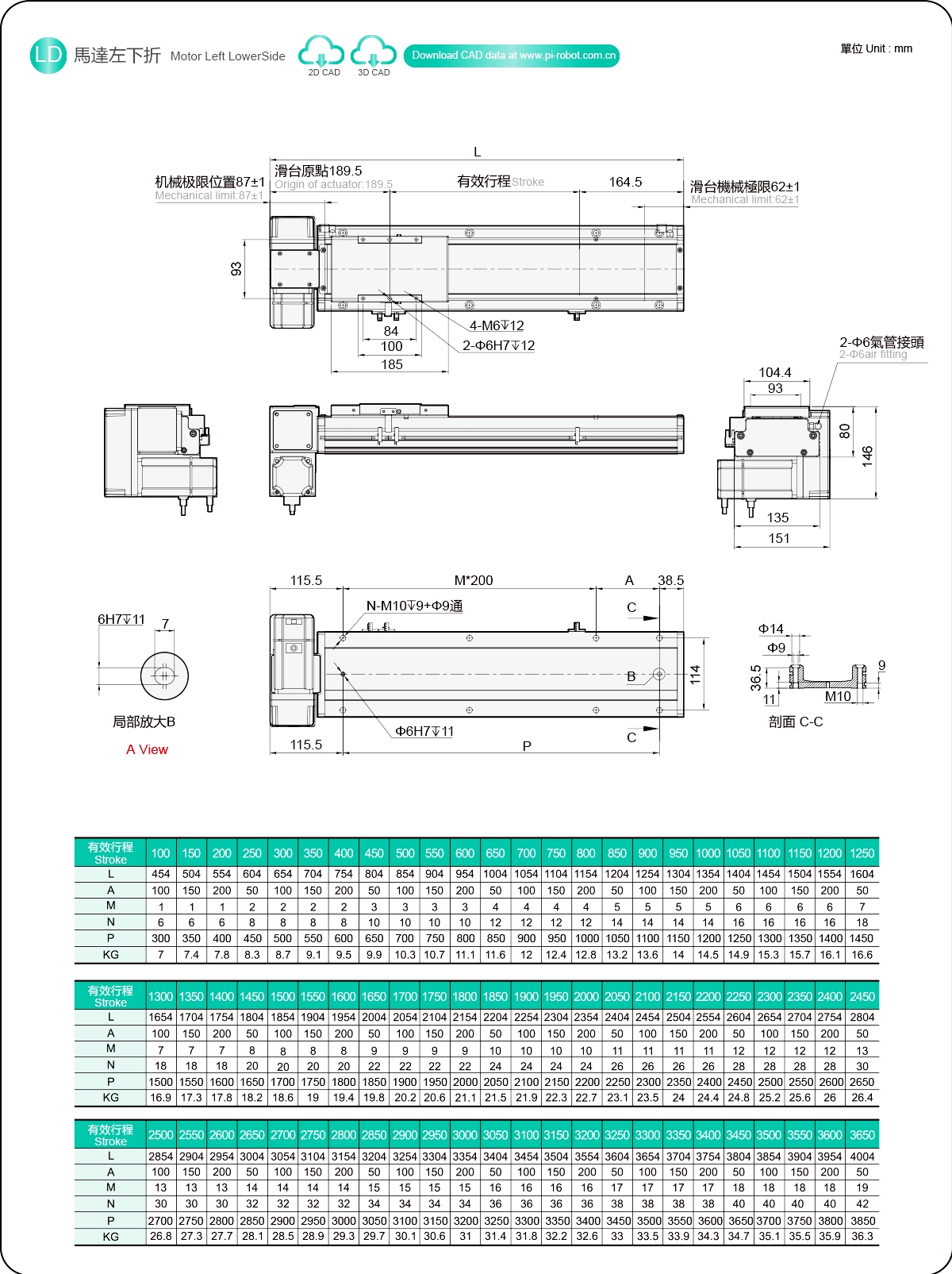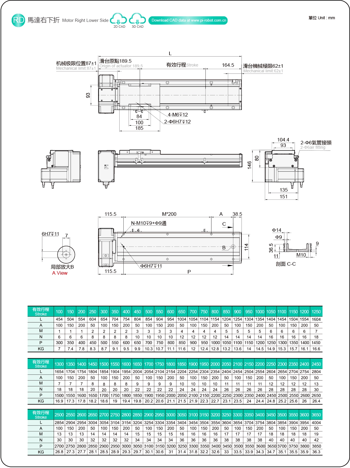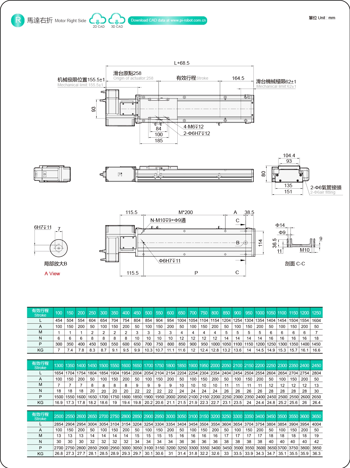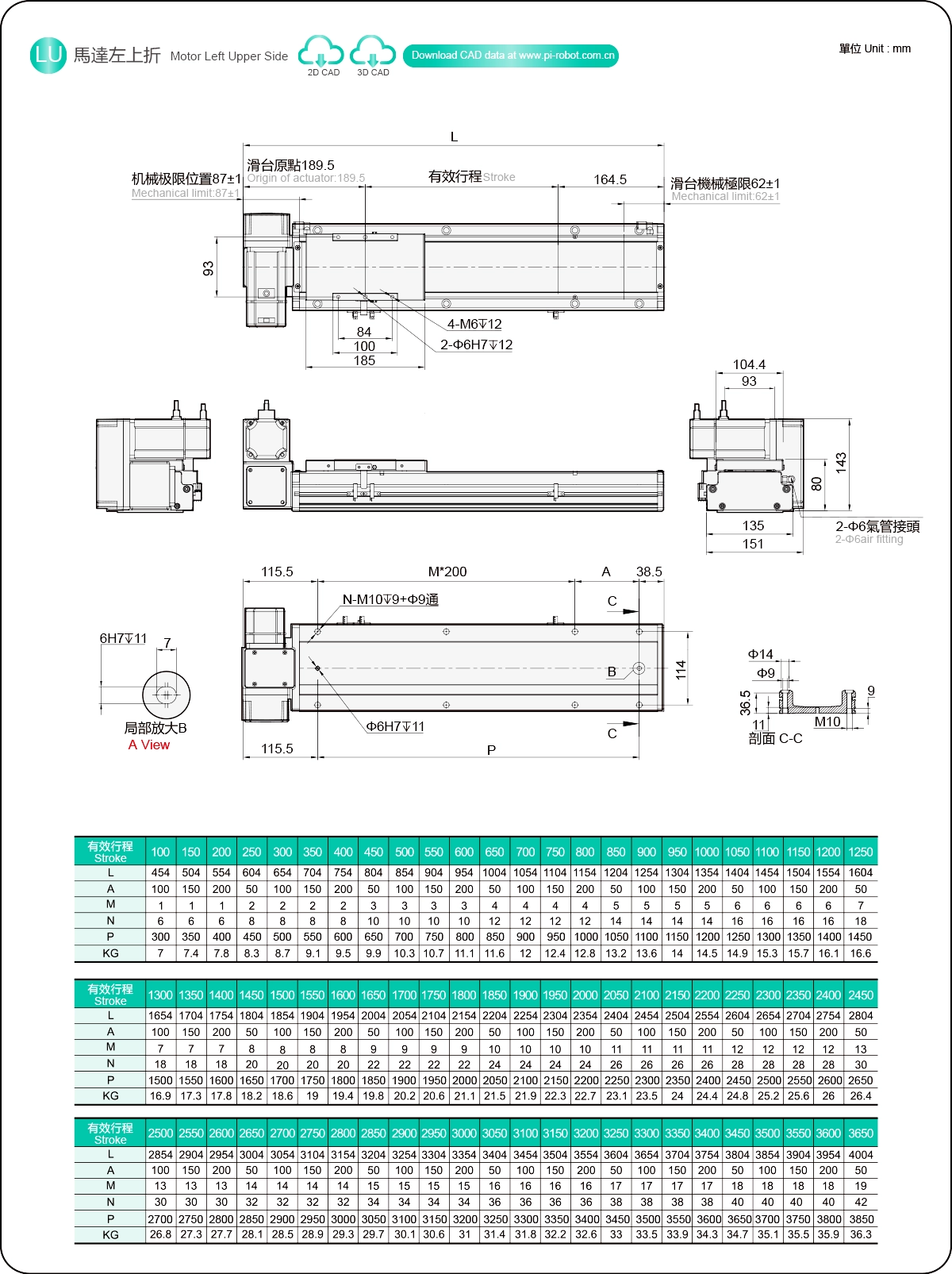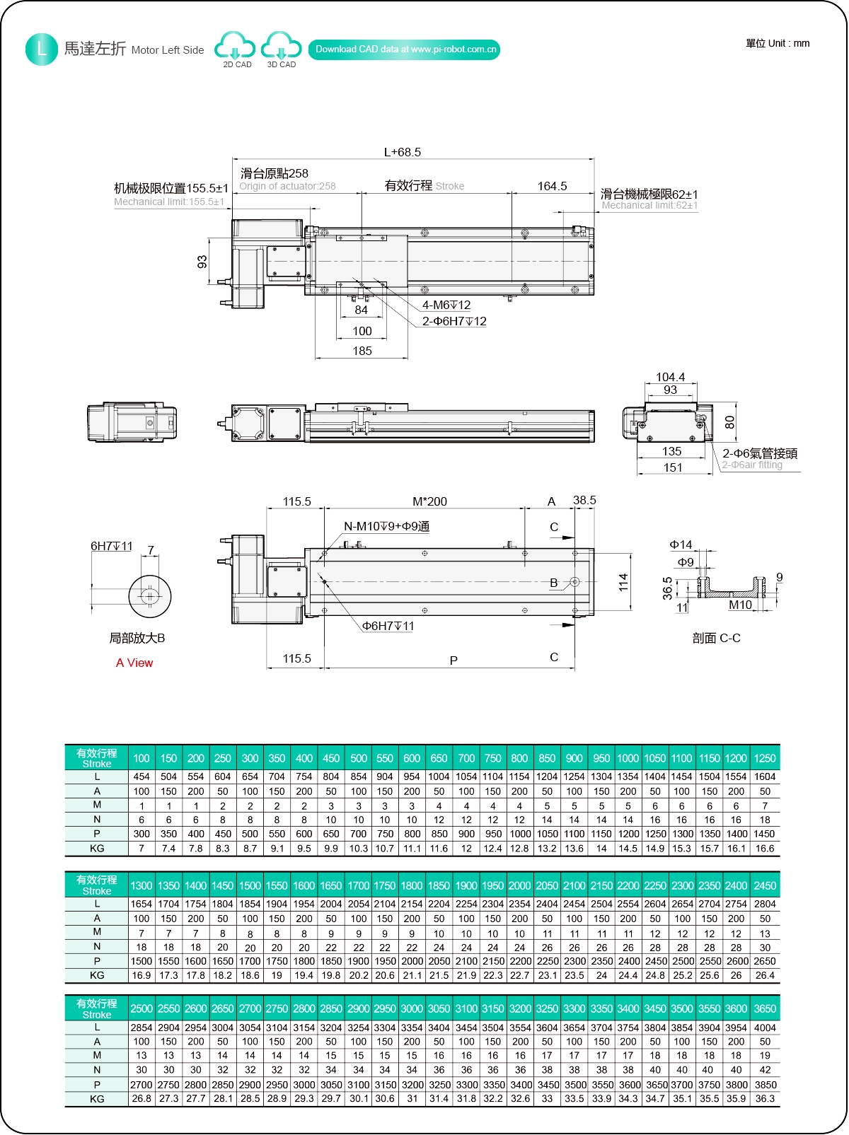 | ระยะชัก (มม.) | 100-3650 มม./ระยะห่าง 50 มม. | ||