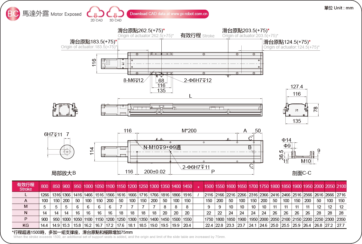 | ระยะชัก (มม.) ※2 | ระยะห่างระหว่างเกลียว 800-2100 มม./50 มม. | |||||