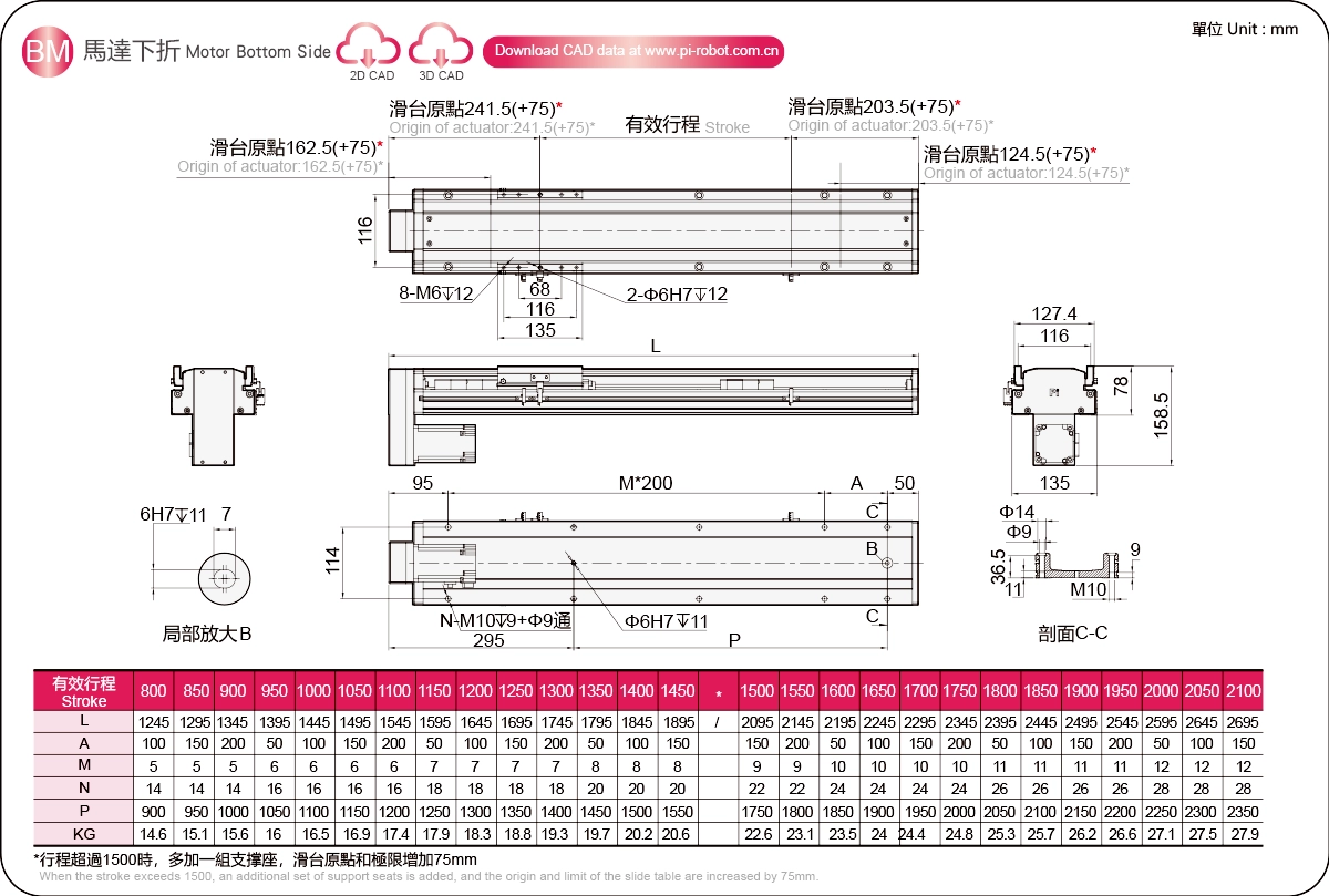 | ใช้ที่ไหน | โหมดขับเคลื่อน | ข้อมูลจำเพาะของรุ่น | เอาต์พุตมอเตอร์ (ว) | ความกว้าง (มม.) | ความสูงของร่างกาย (มม.) | ความสามารถในการทำซ้ำ (มม.) | ข้อมูลจำเพาะของบอลสกรู | น้ำหนักบรรทุกสูงสุด (กก.) | ความเร็วสูงสุด (มม./วินาที) *1 | ||||||||||