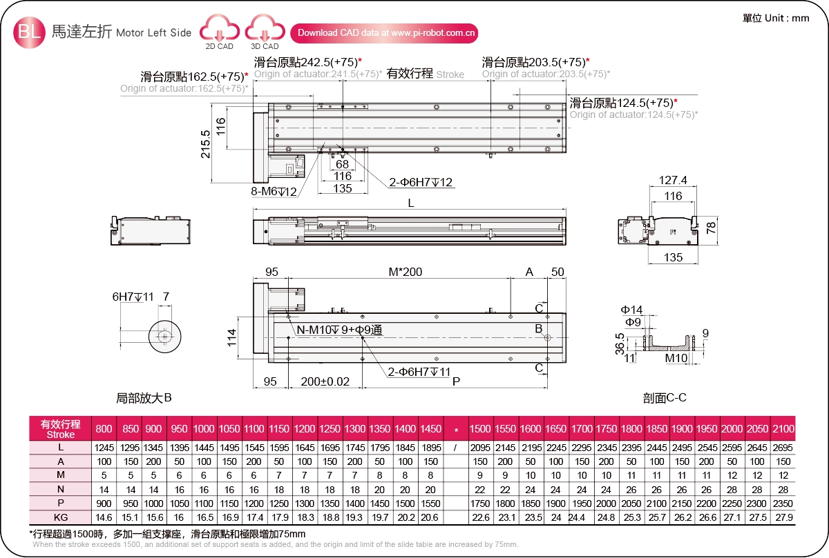| รางนำเชิงเส้นที่มีความแข็งแกร่งสูง (มม.) | แอคชูเอเตอร์บอลสกรู | |||||
