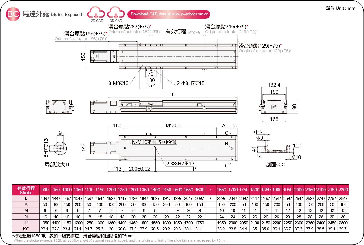 ระยะการเลื่อน: 900-2200 มม.