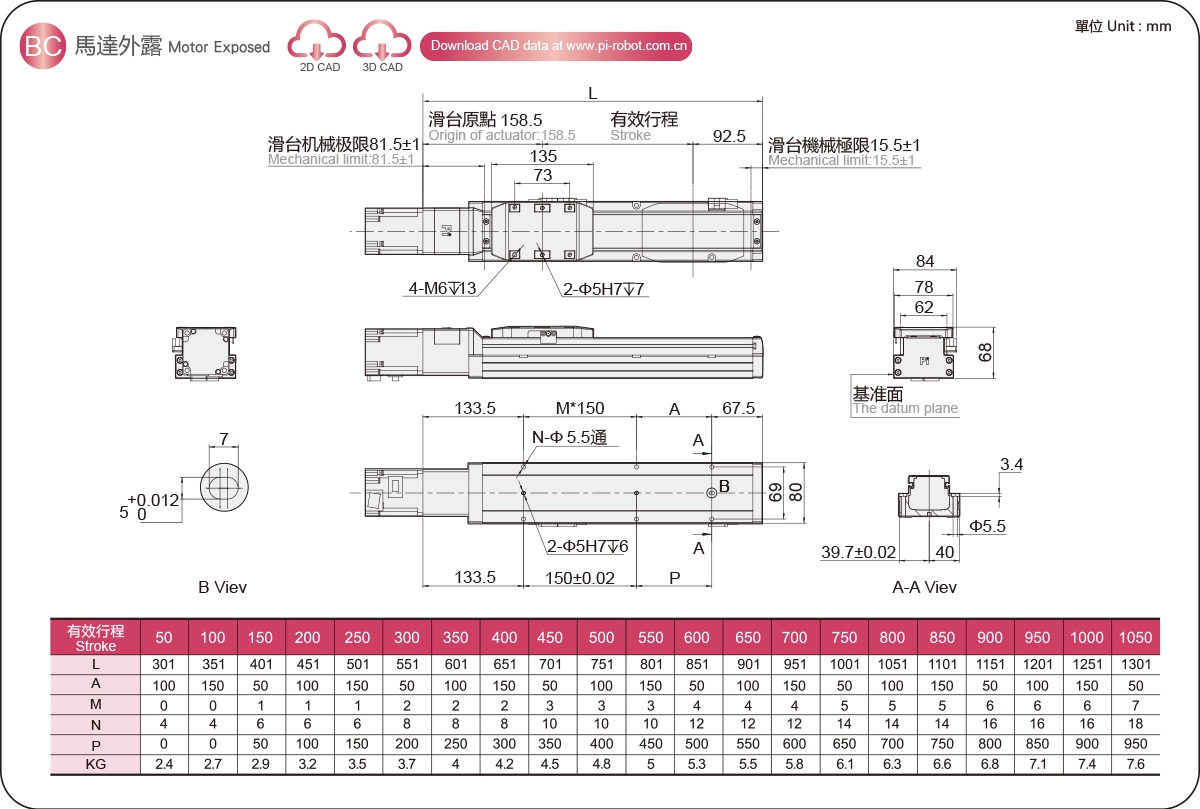 ระยะการเคลื่อนที่: 50-1050 มม.