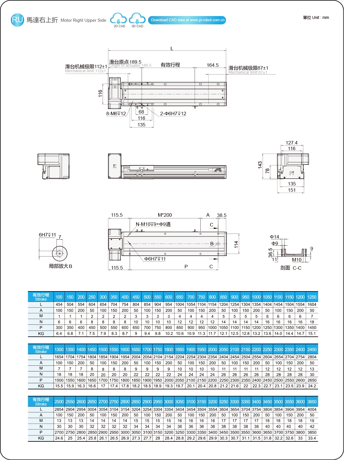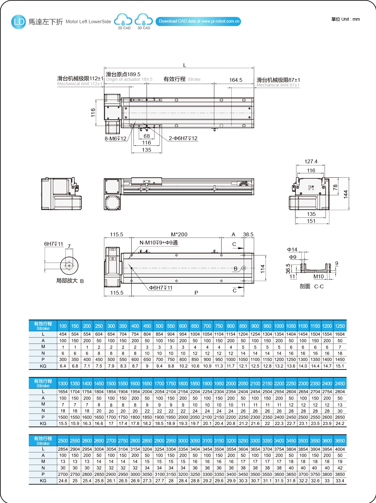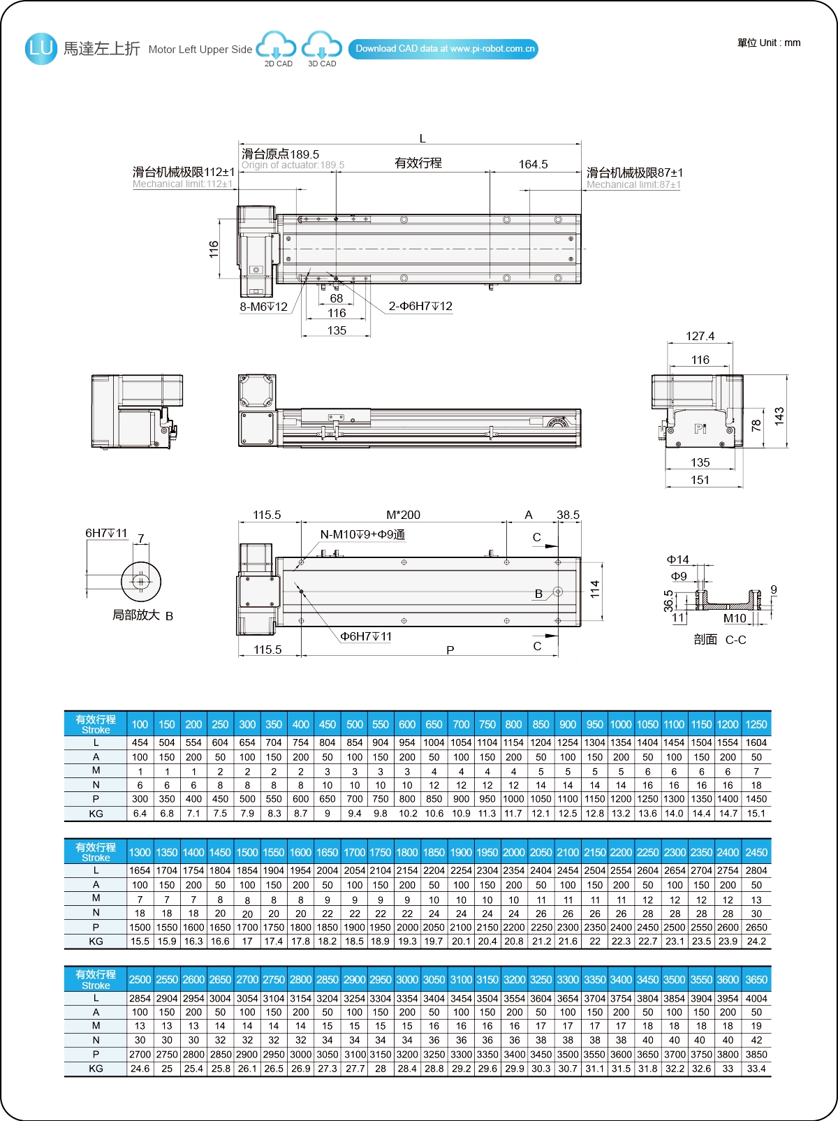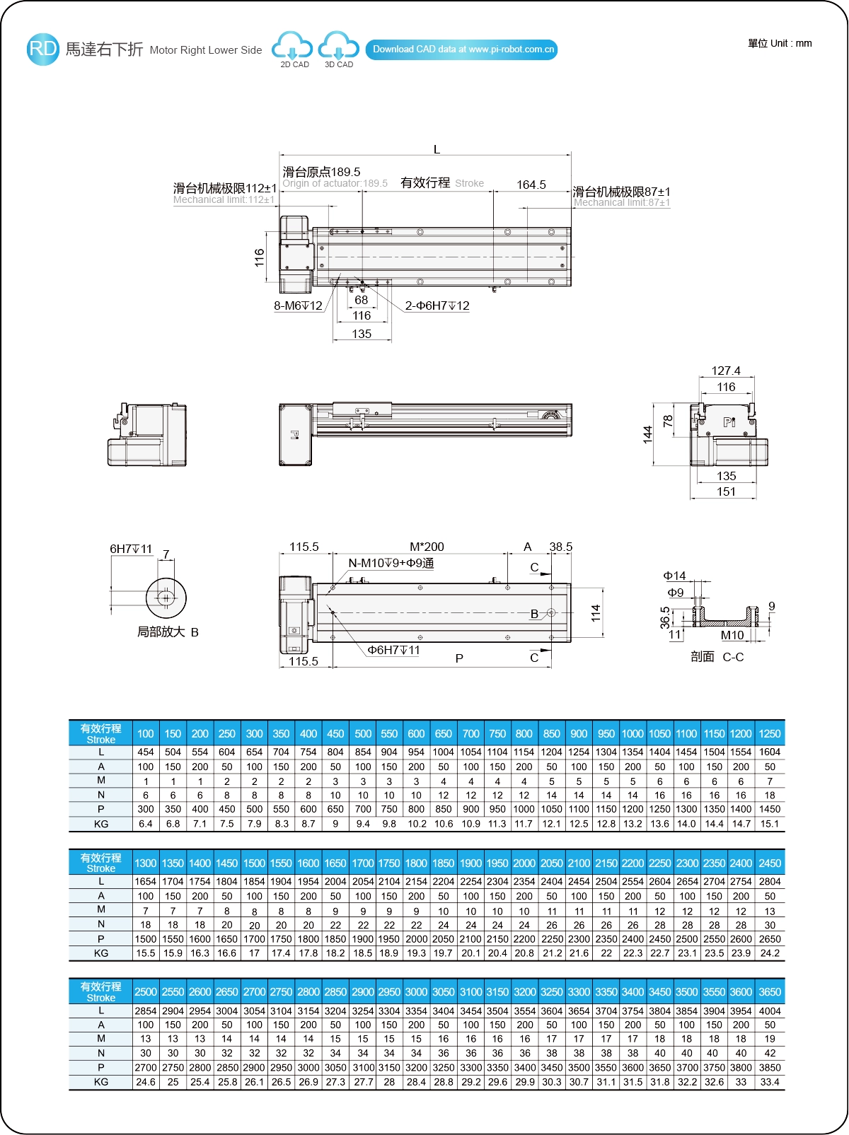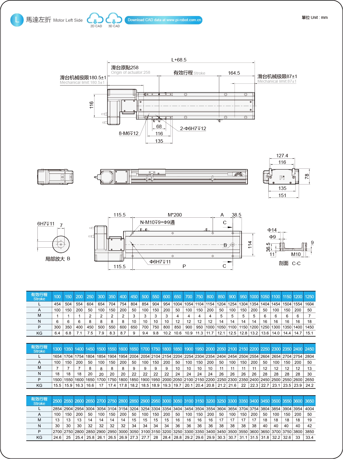 | ระยะชัก (มม.) | 100-3650 มม./ระยะห่าง 50 มม. | ||