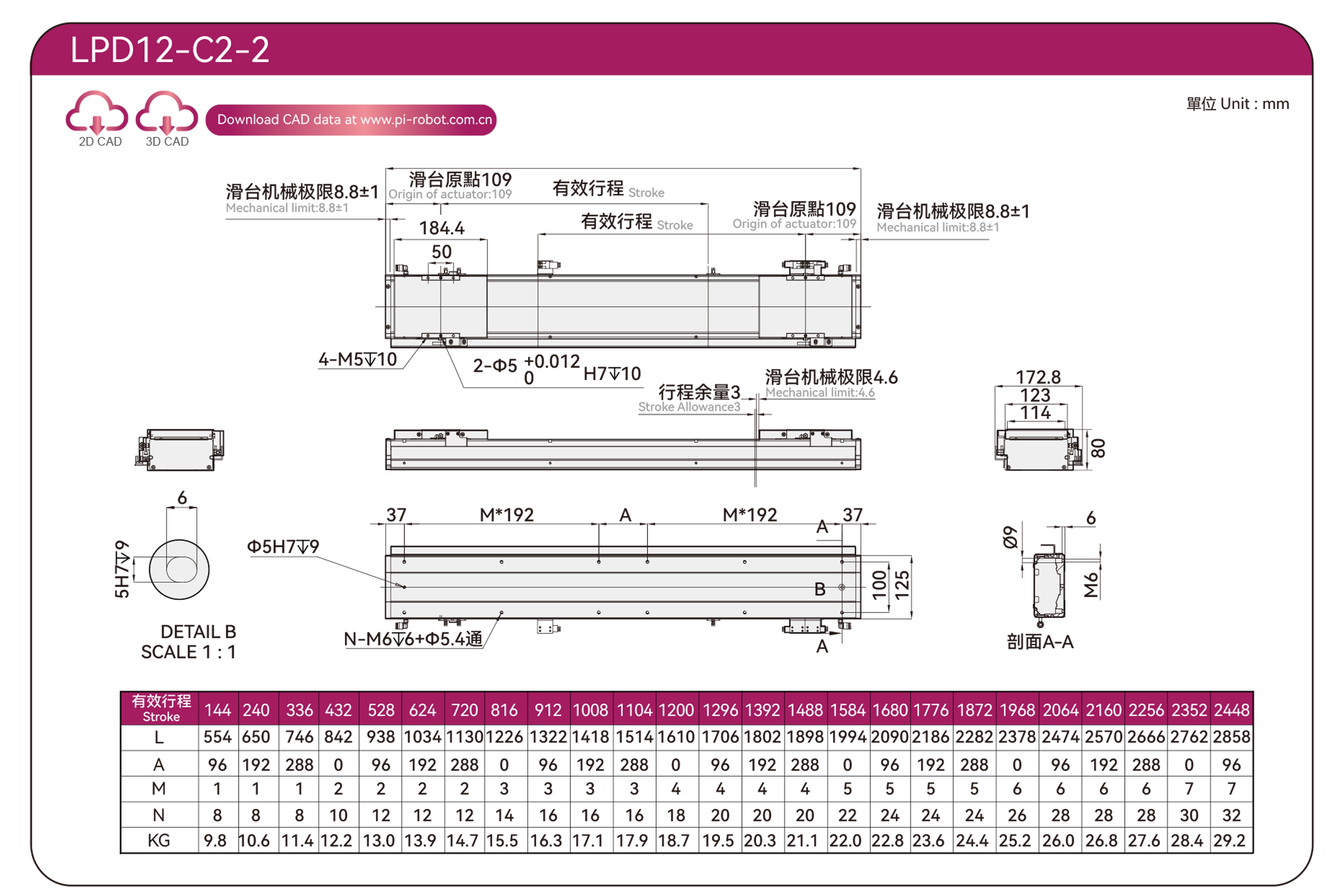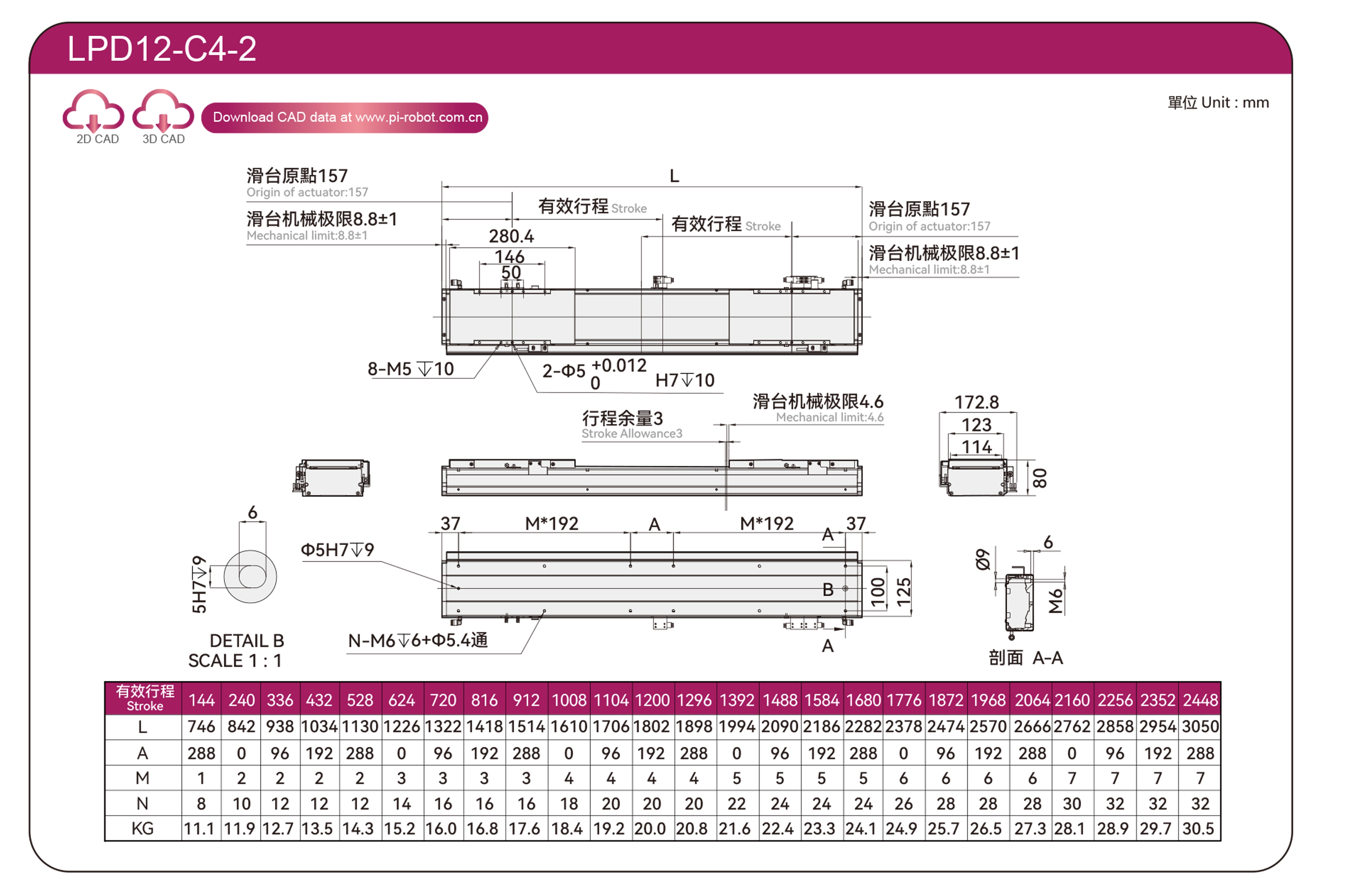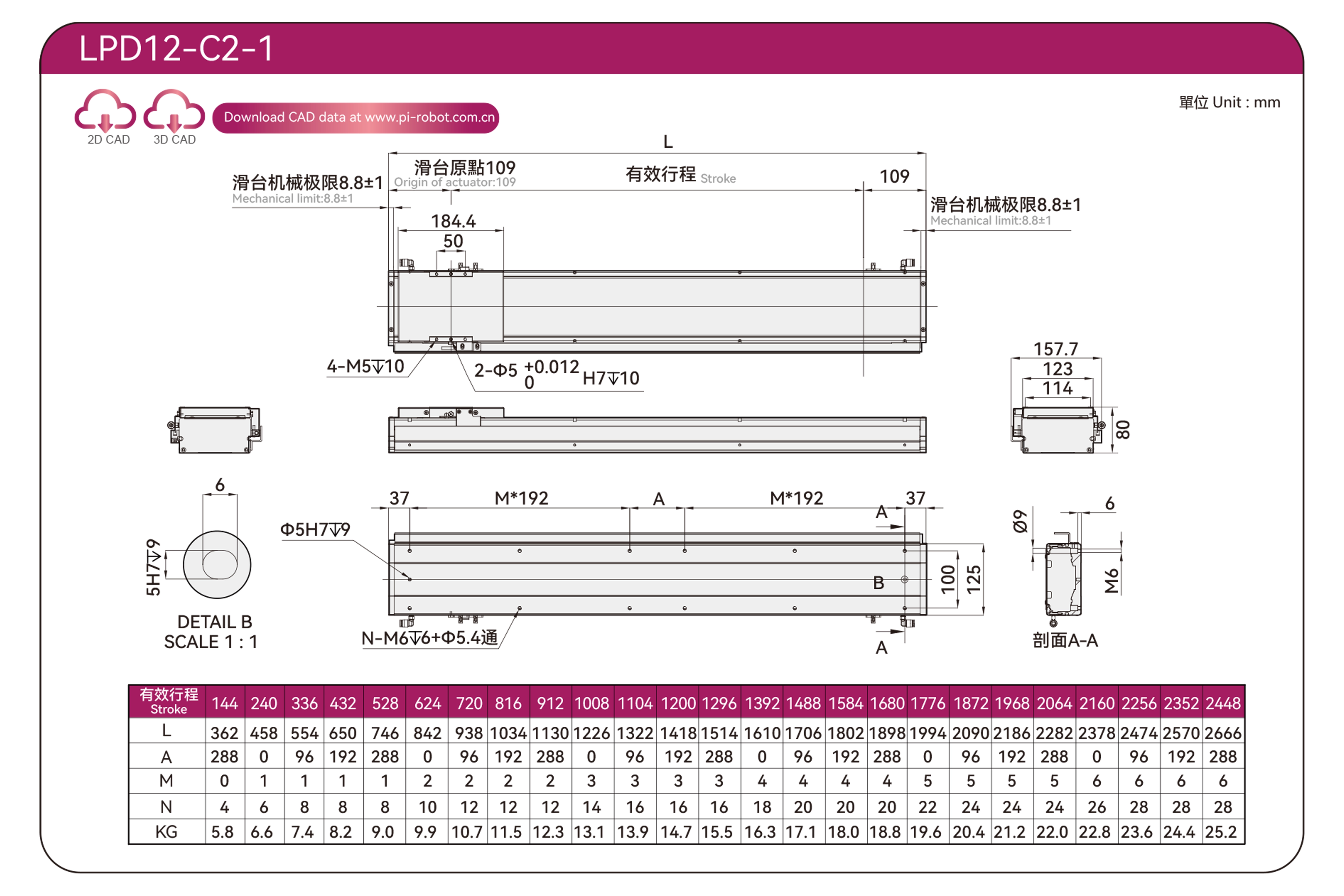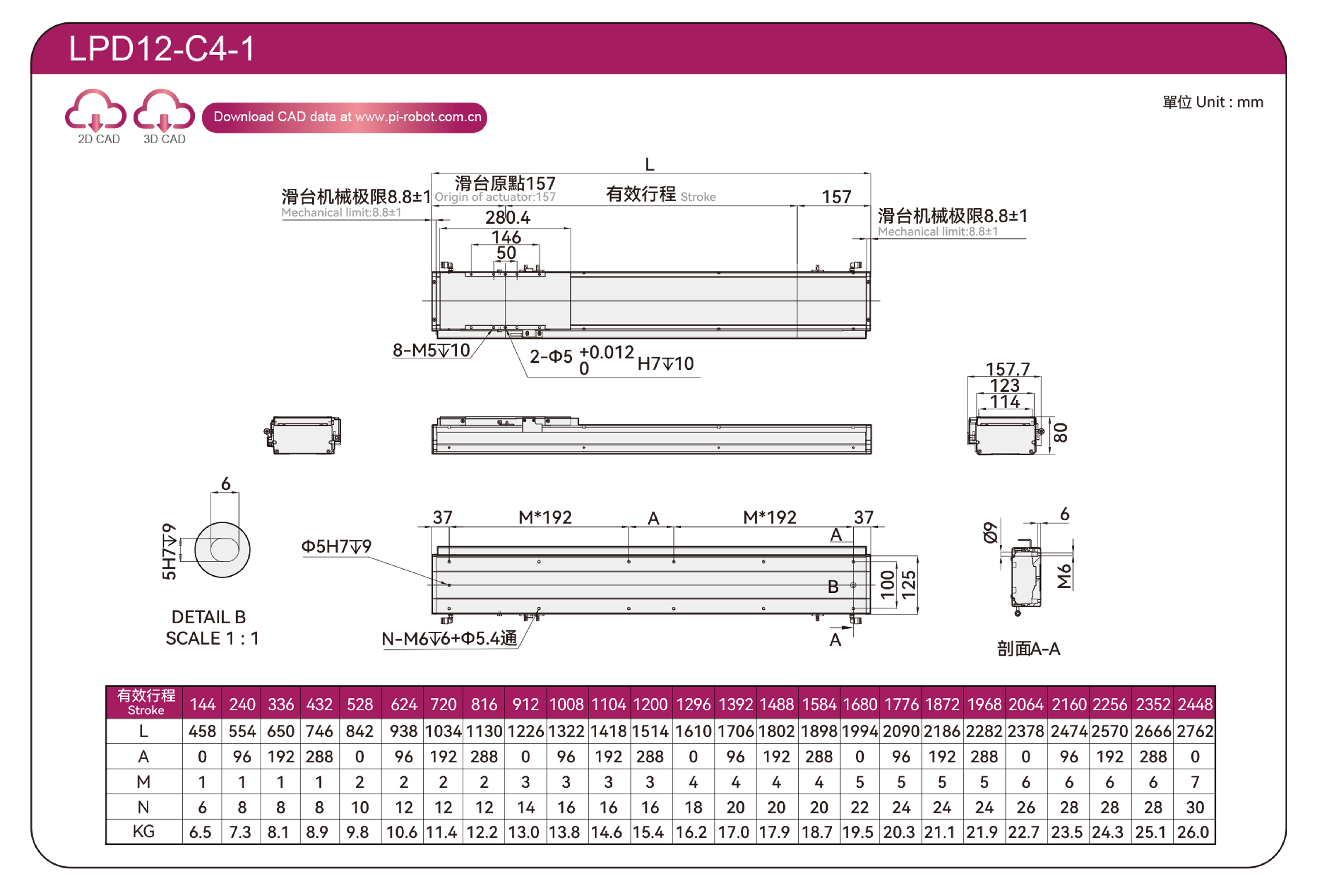 | มาตรฐาน | หุ่นยนต์มอเตอร์เชิงเส้น | แอลพีดี12 | พี40-ซี2-เอส | 125 | 80 | ±0.003 | 80 | 176 | 3.3 | 20 | 2500 |
