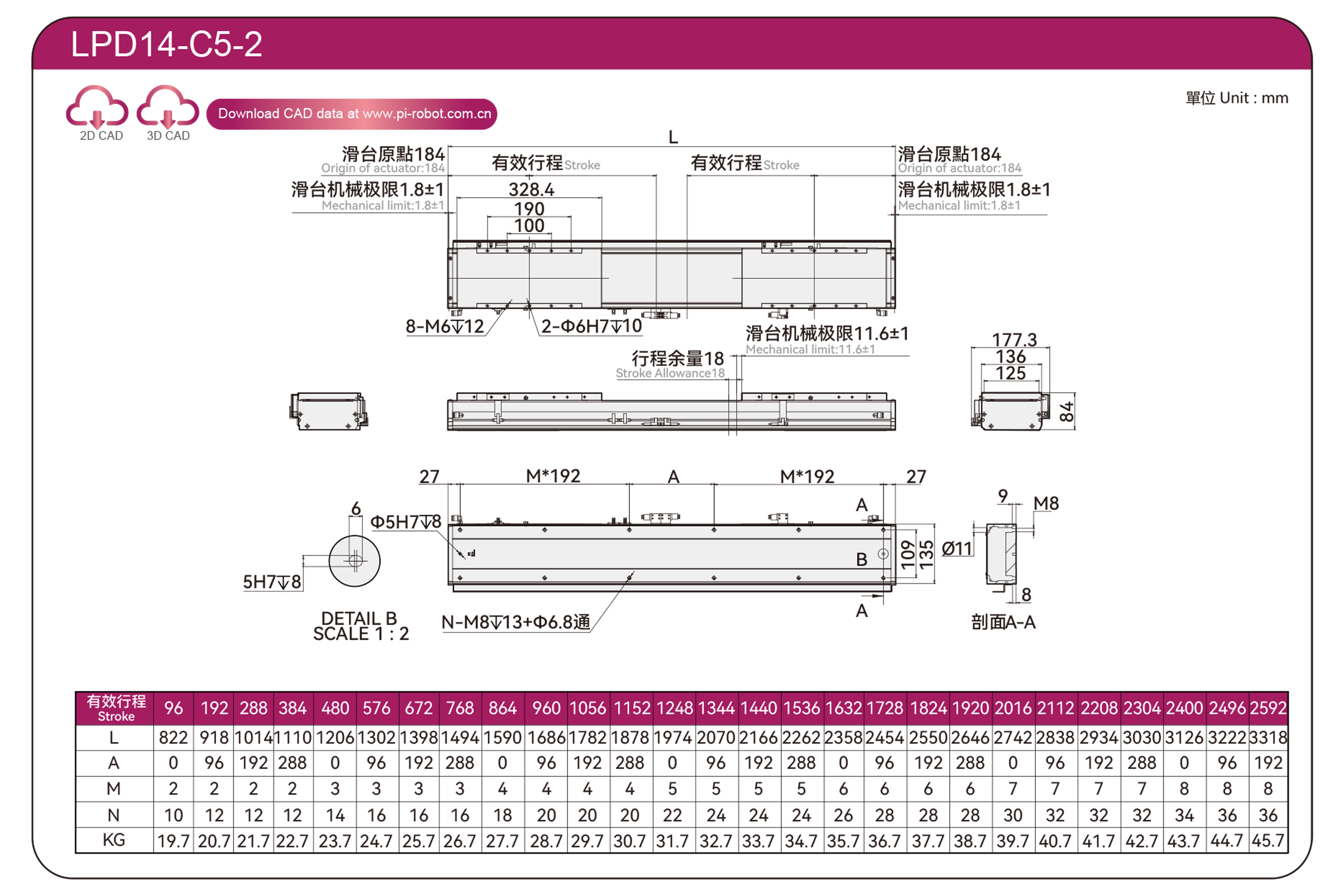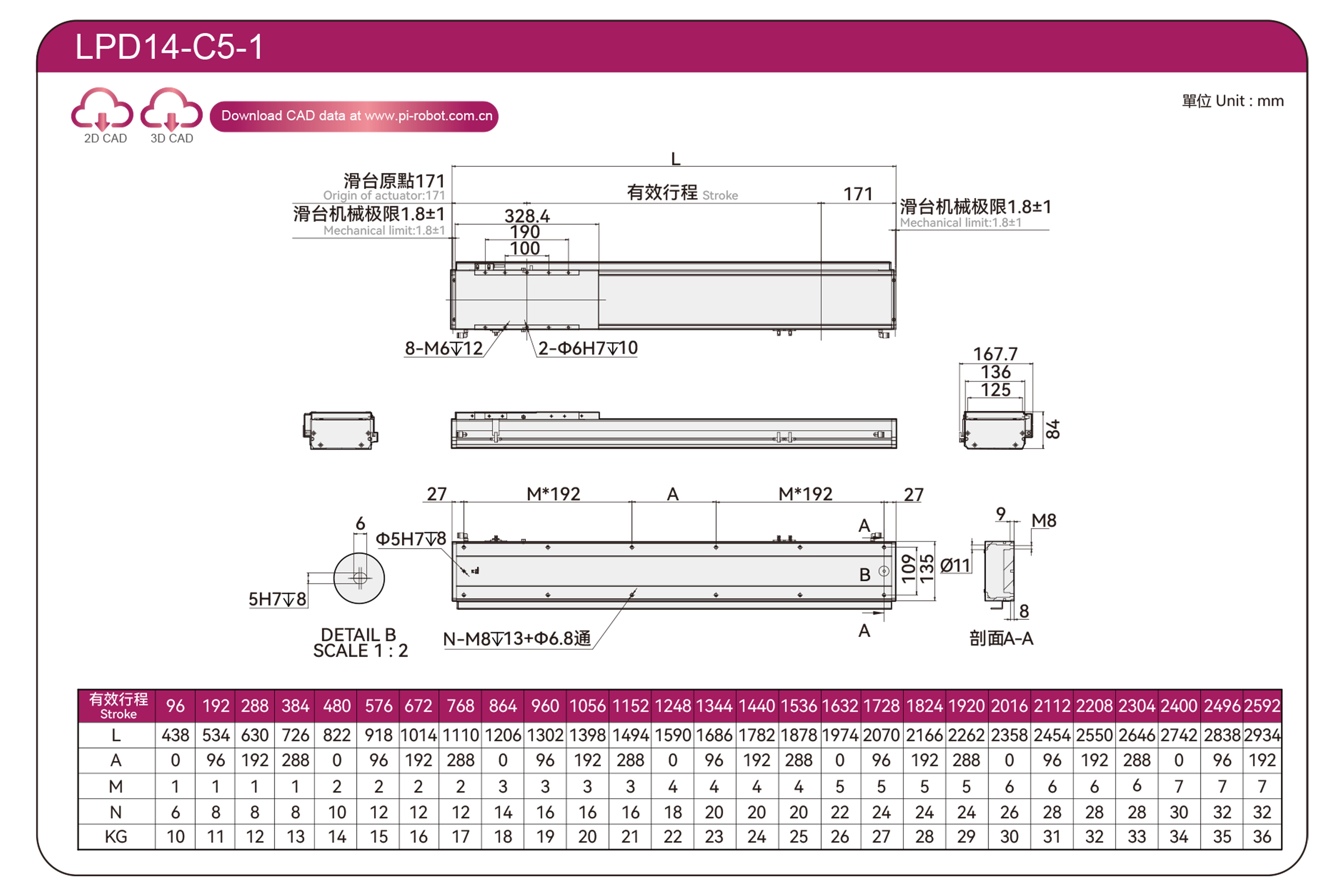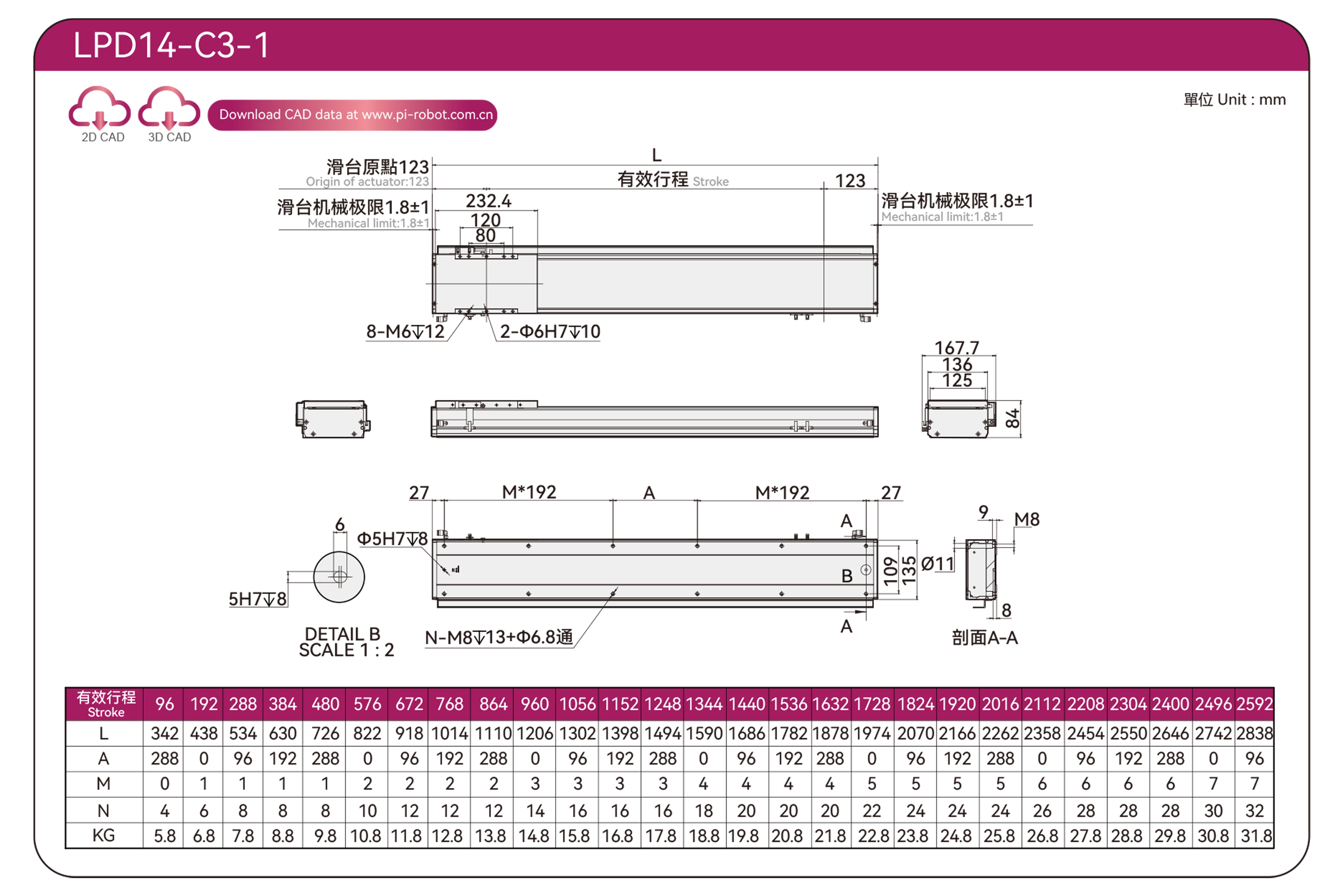 | มาตรฐาน | หุ่นยนต์มอเตอร์เชิงเส้น | แอลพีดี12 | พี40-ซี2-เอส | 125 | 80 | ±0.003 | 80 | 176 | 3.3 | 20 | 2500 |