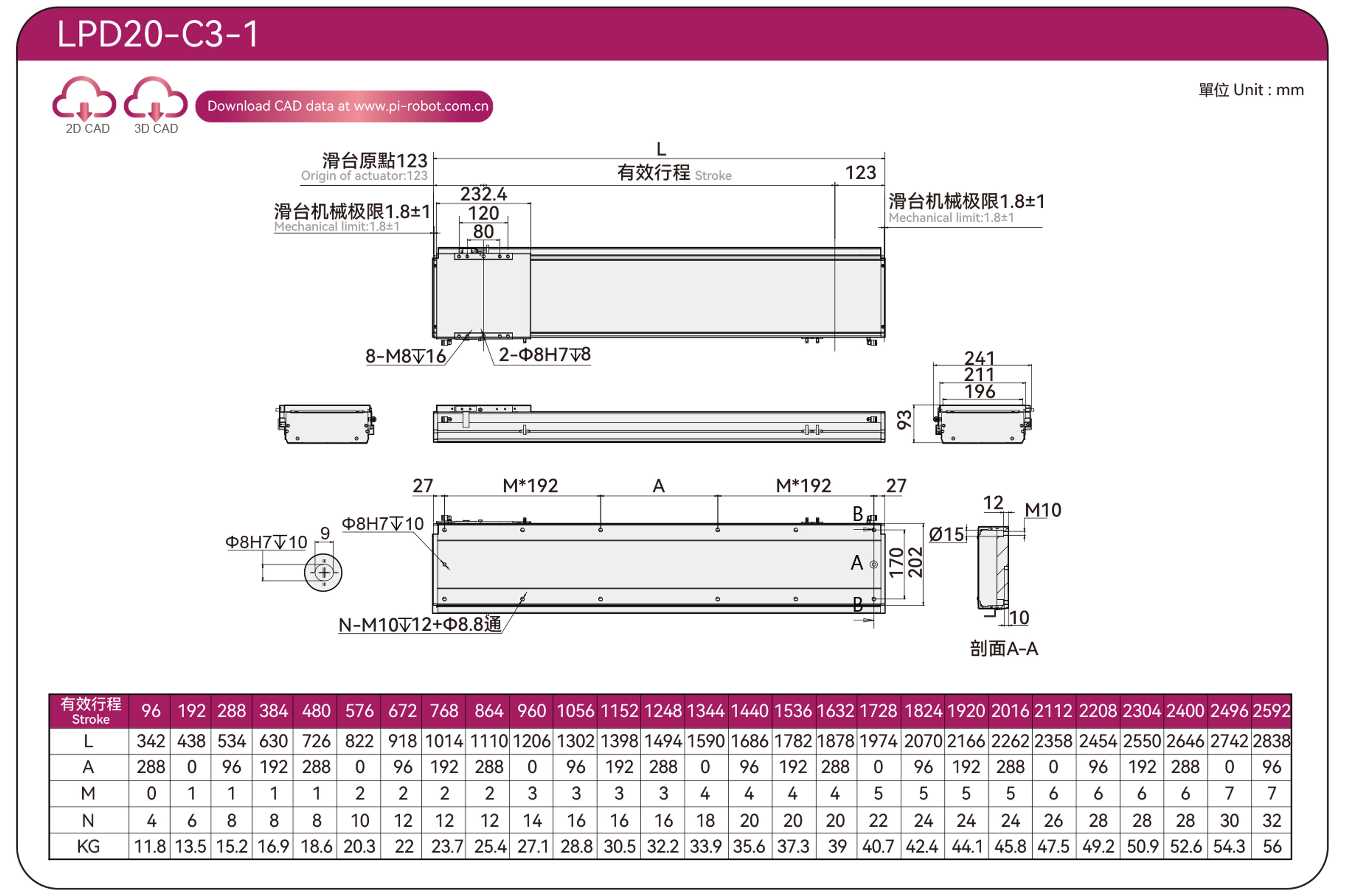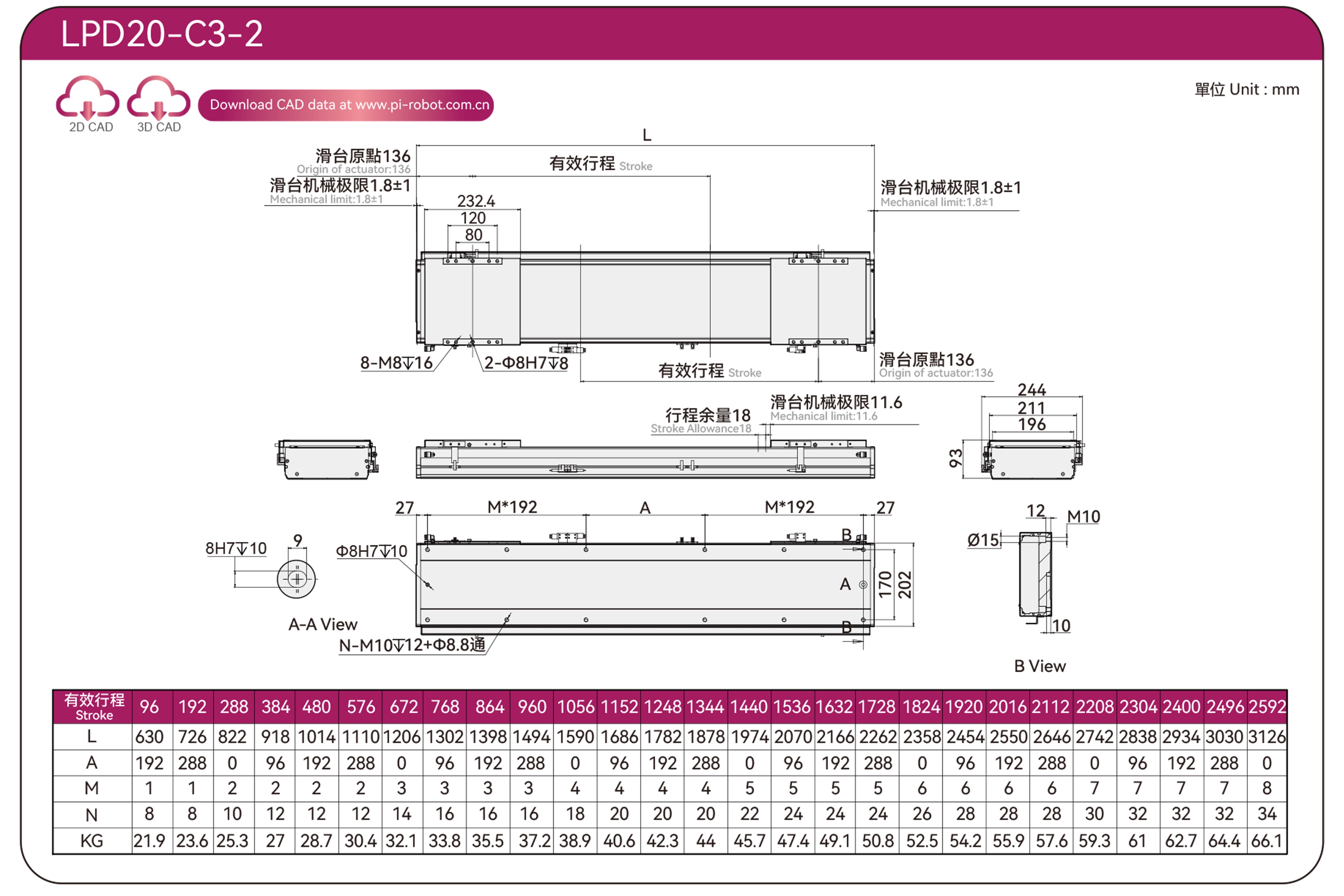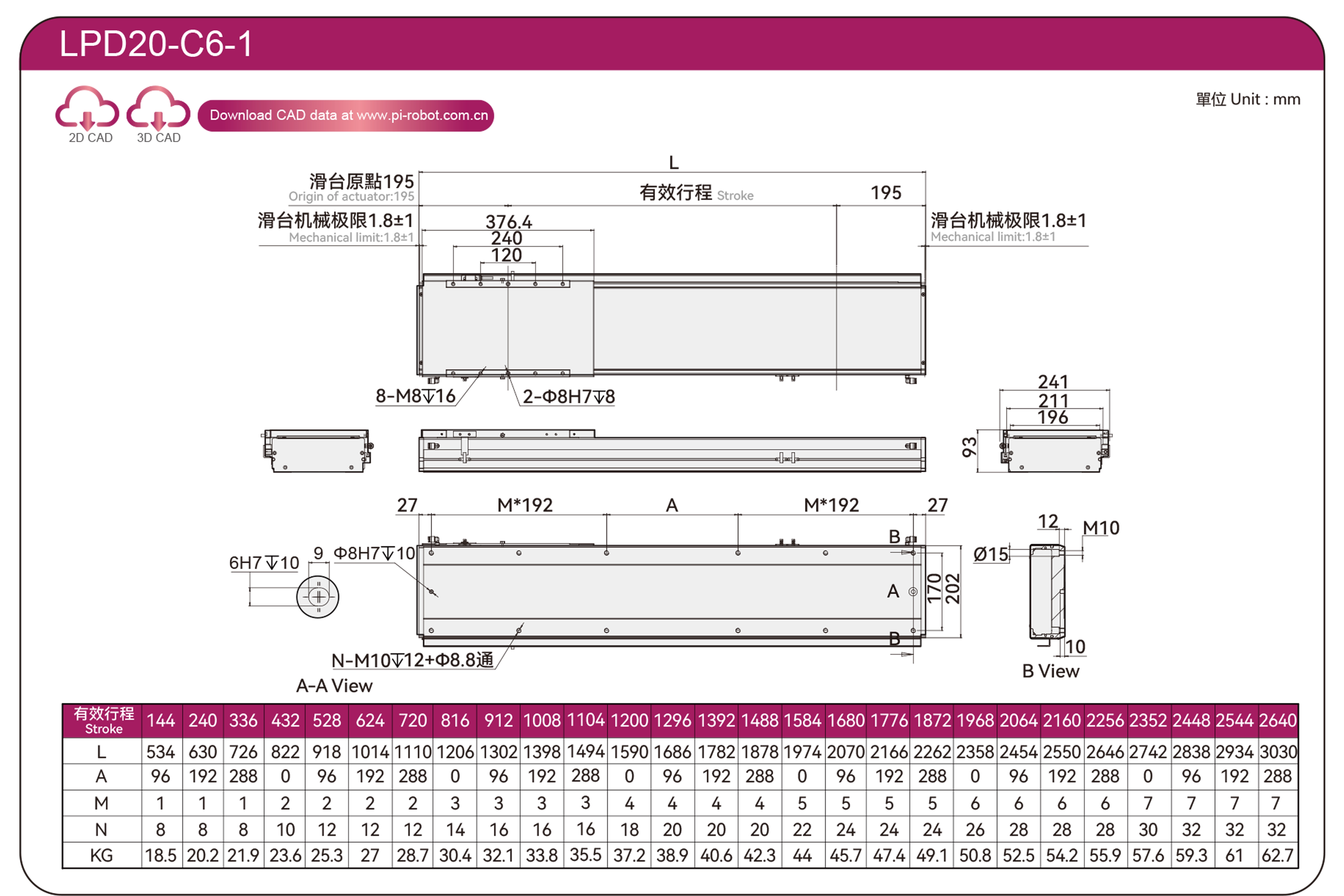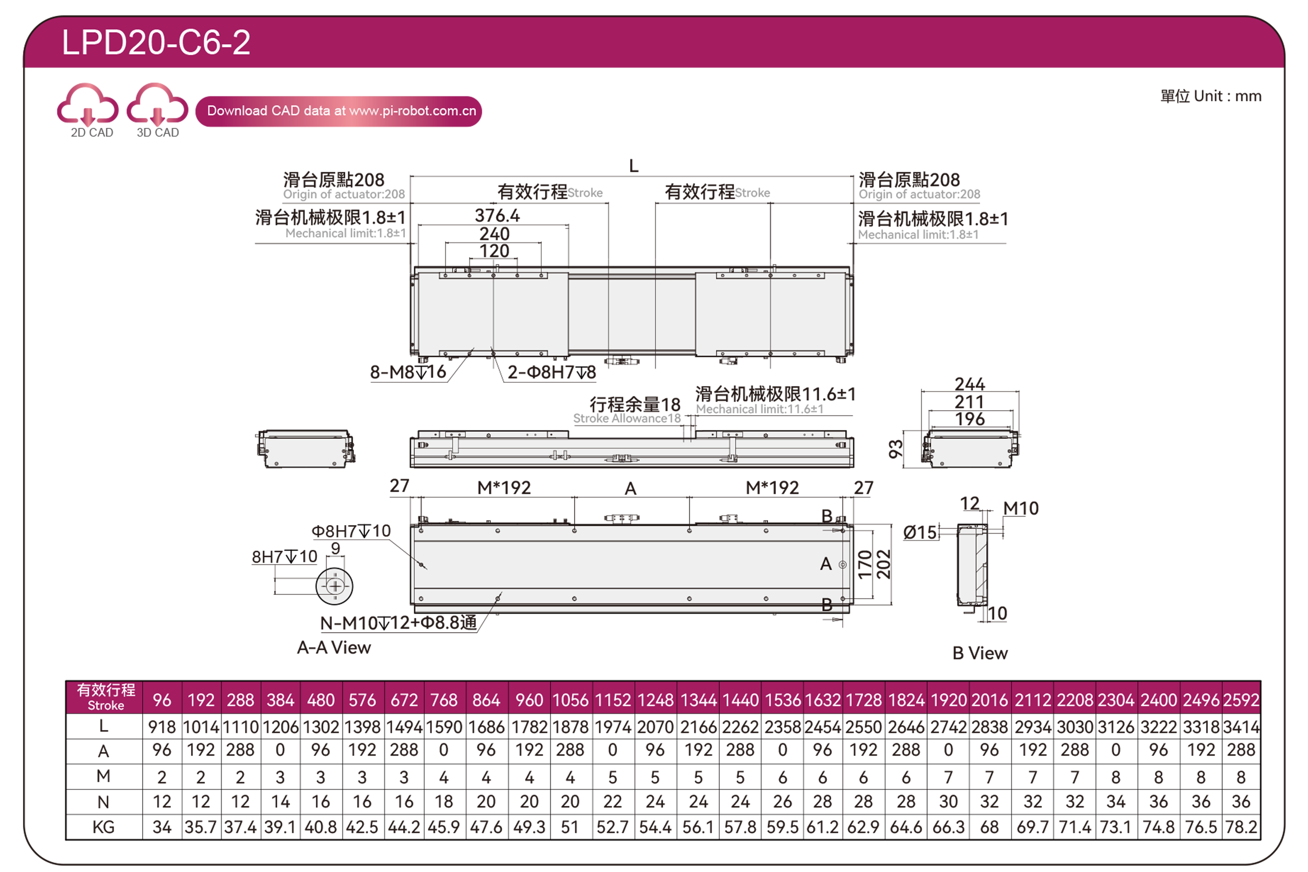| มาตรฐาน | หุ่นยนต์มอเตอร์เชิงเส้น | แอลพีดี12 | พี40-ซี2-เอส | 125 | 80 | ±0.003 | 80 | 176 | 3.3 | 20 | 2500 |