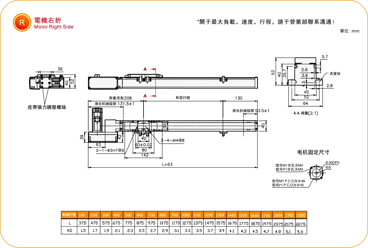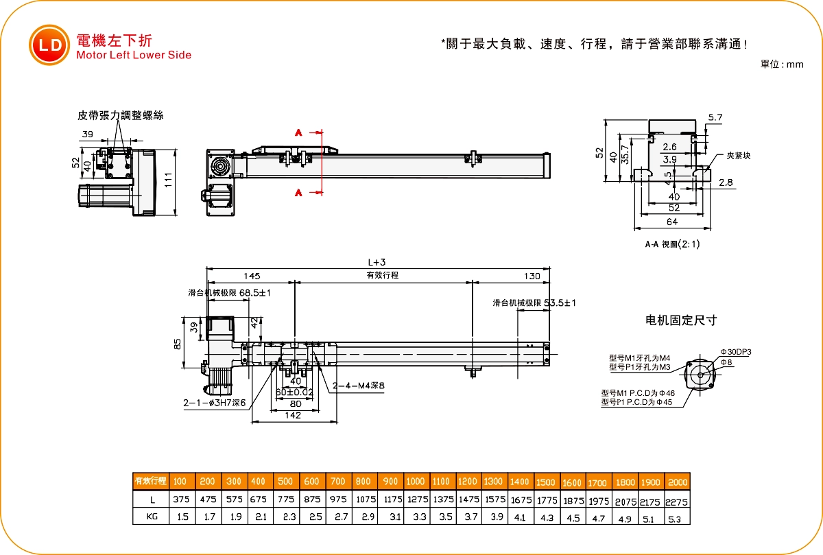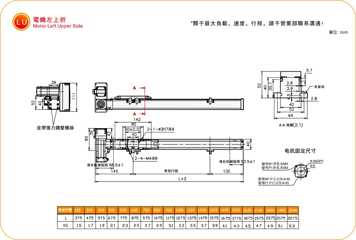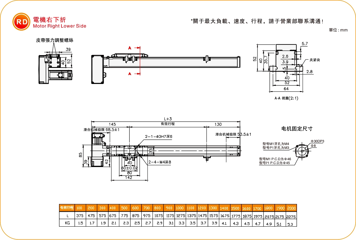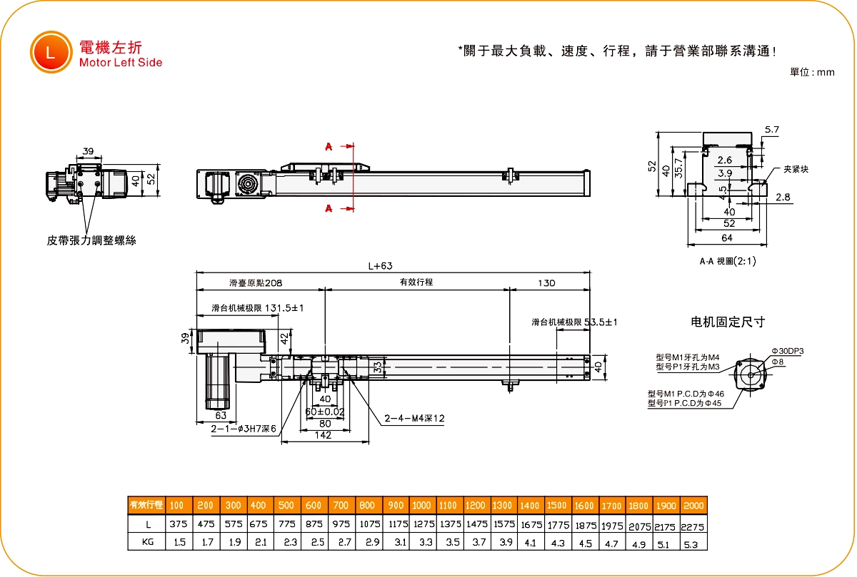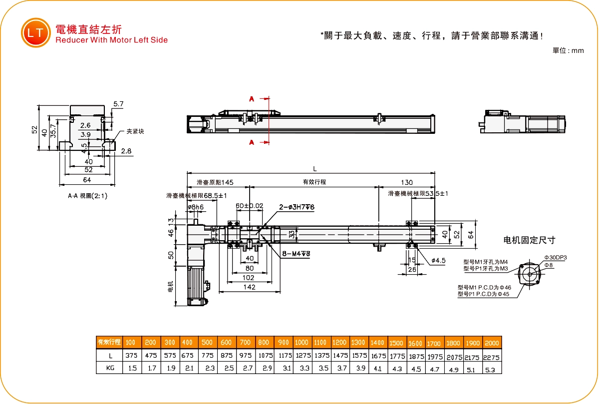 | ระยะชัก (มม.) | 100-2000 มม./ระยะห่าง 100 มม. | ||