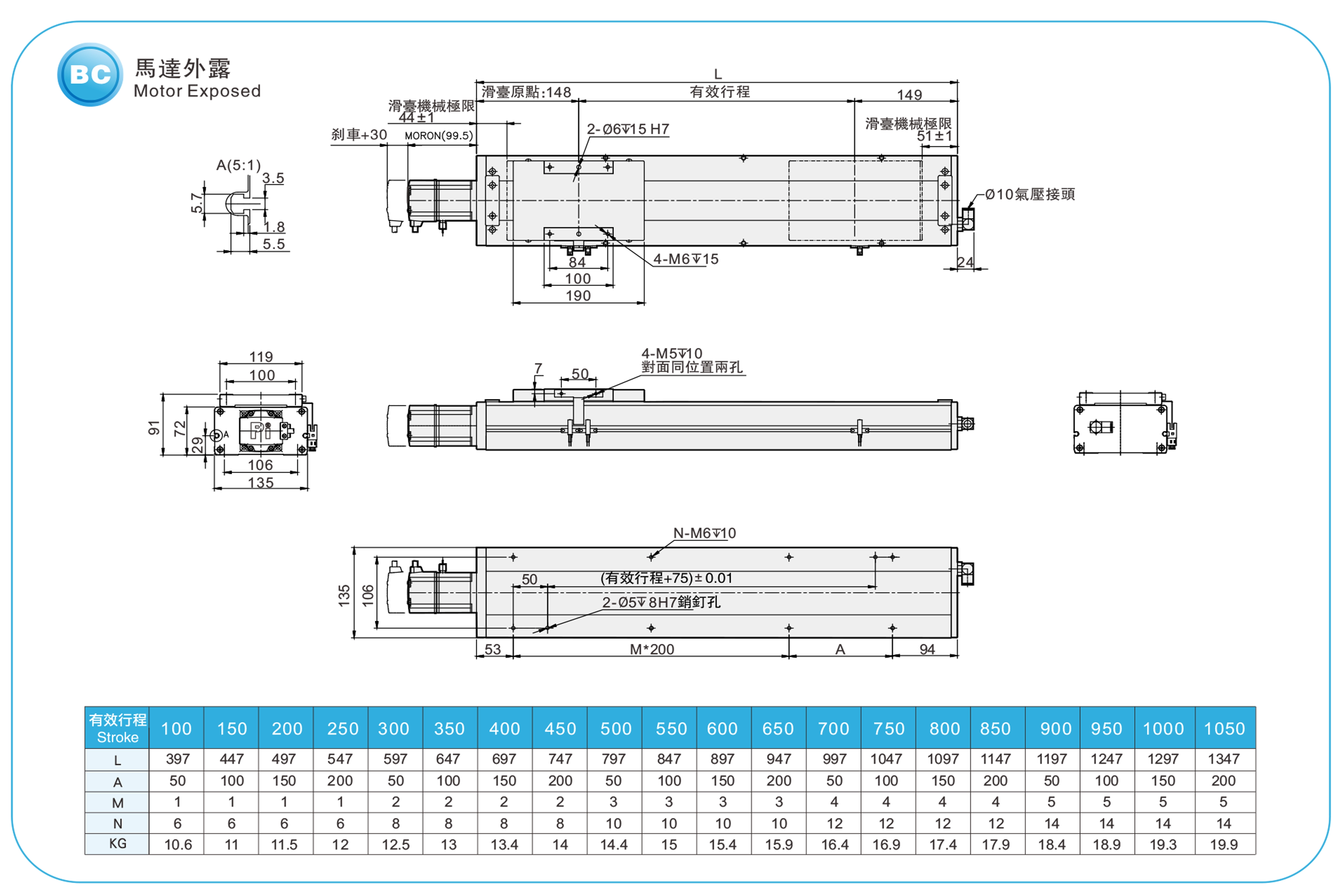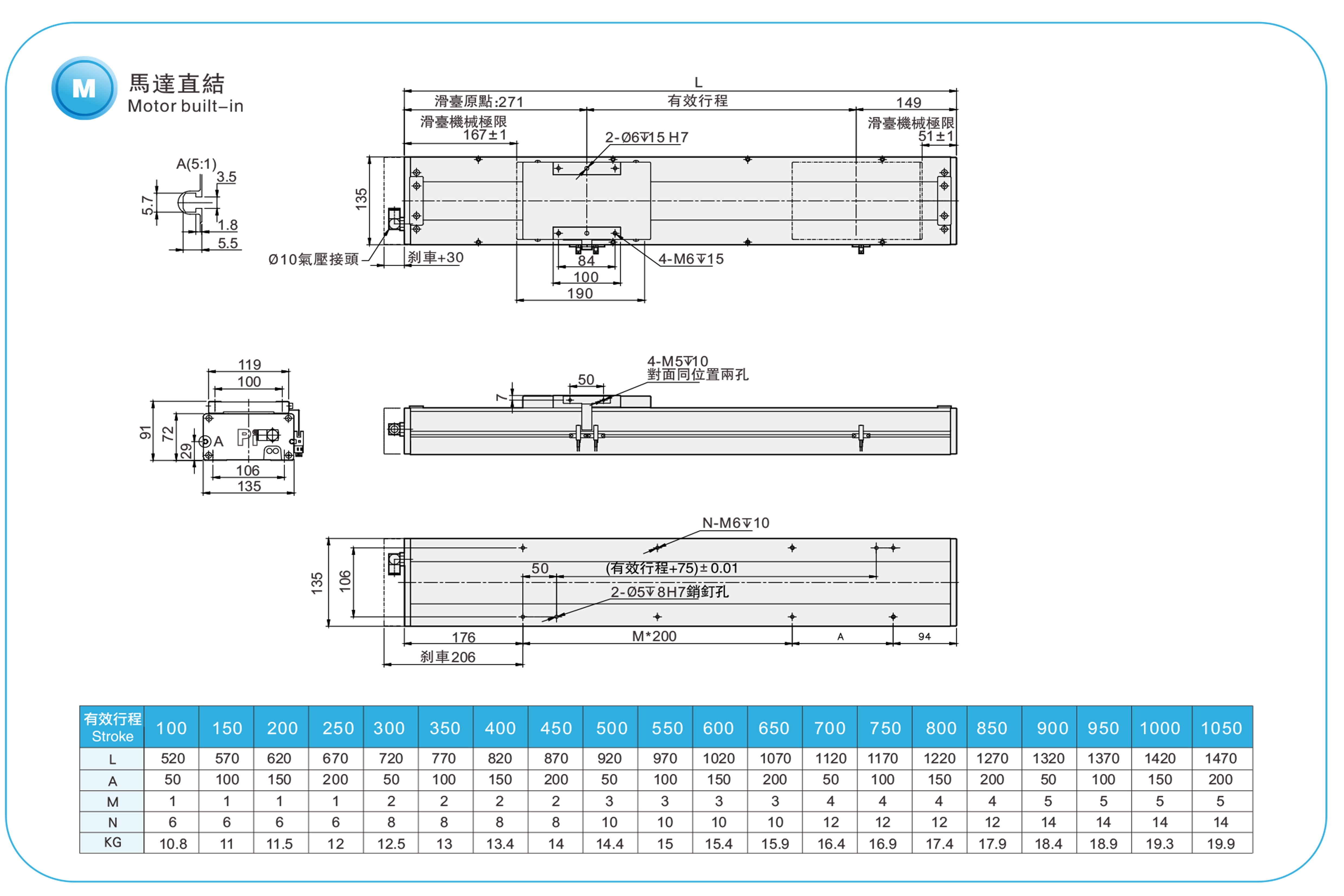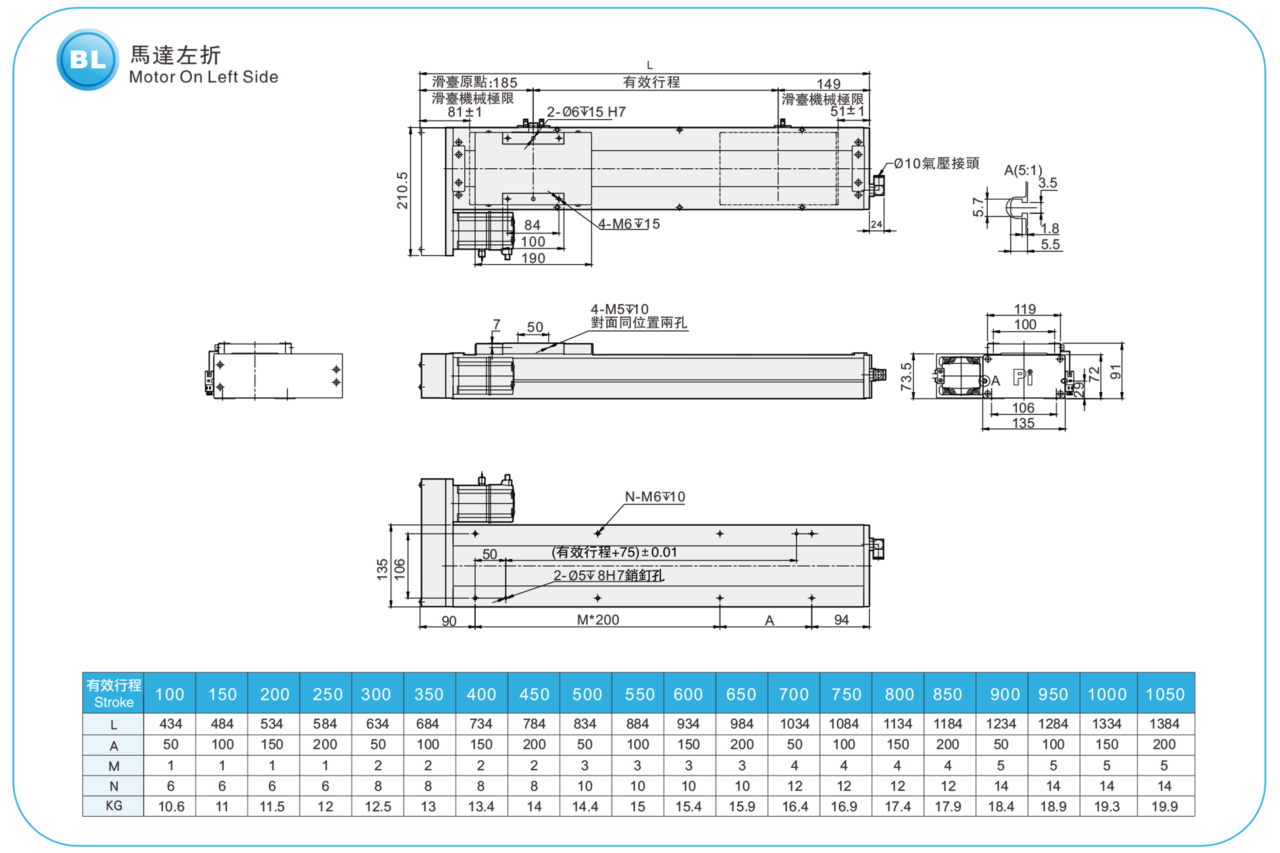| ระยะชัก (มม.) | 100-1050 มม./ระยะห่าง 50 มม. | |||||
