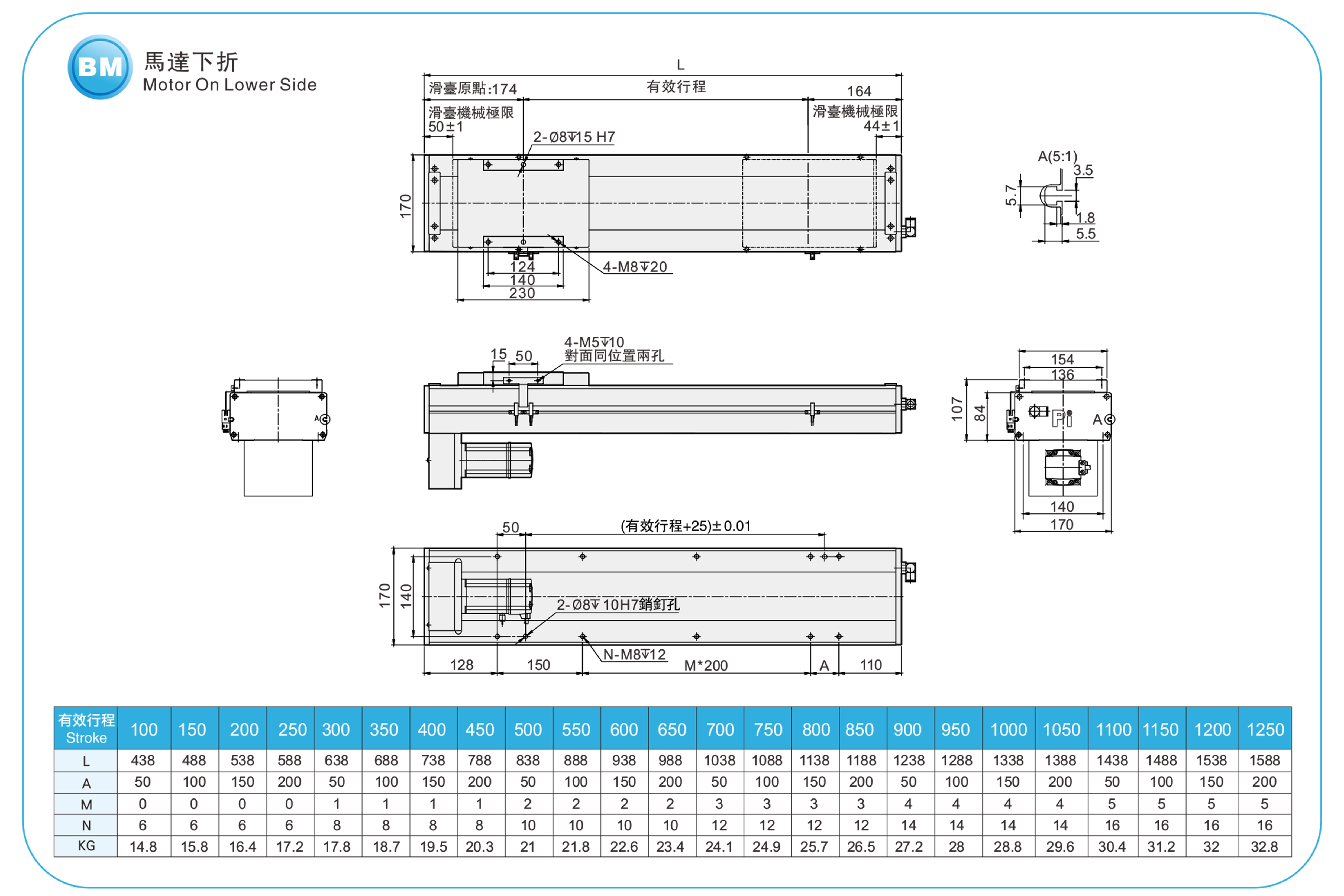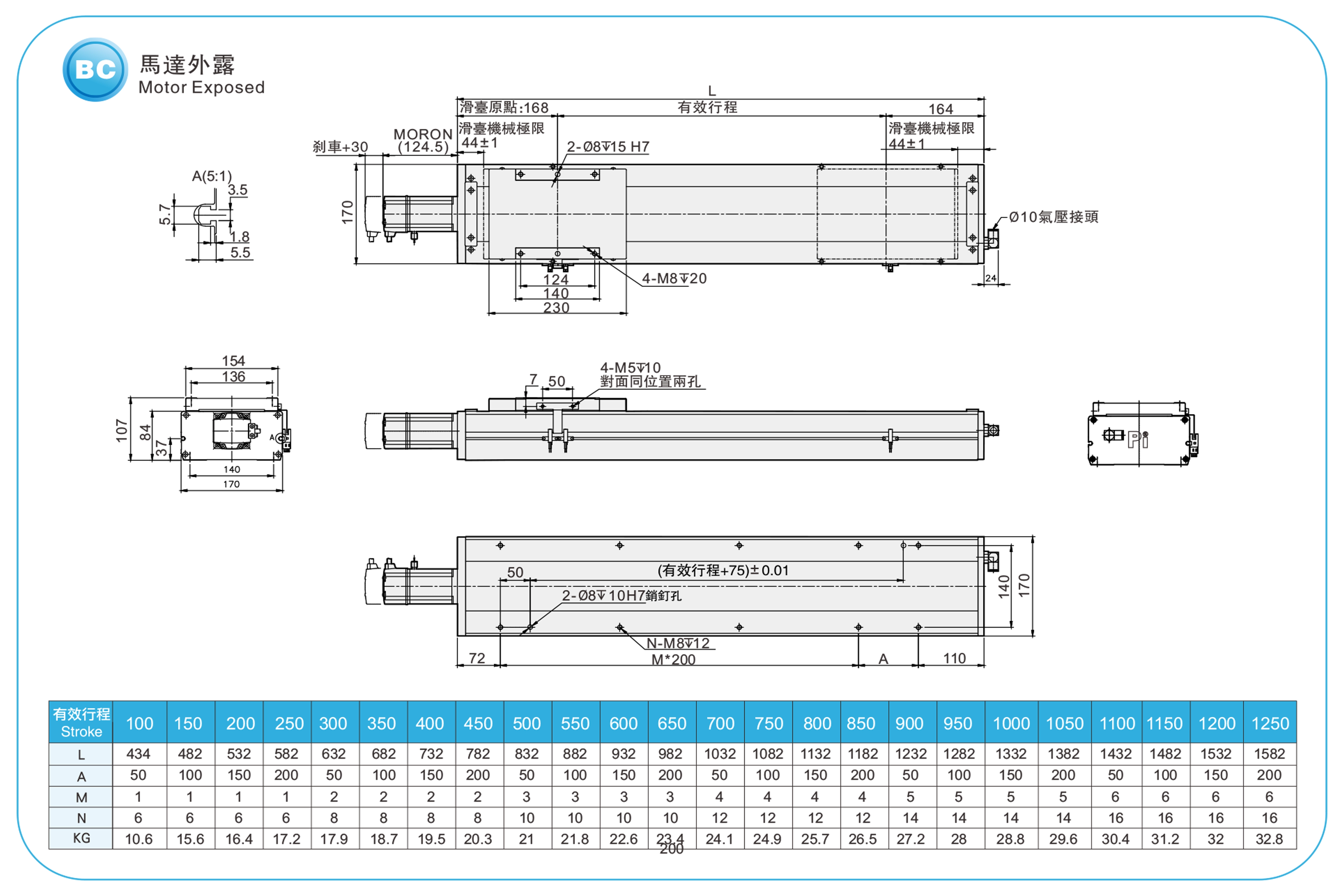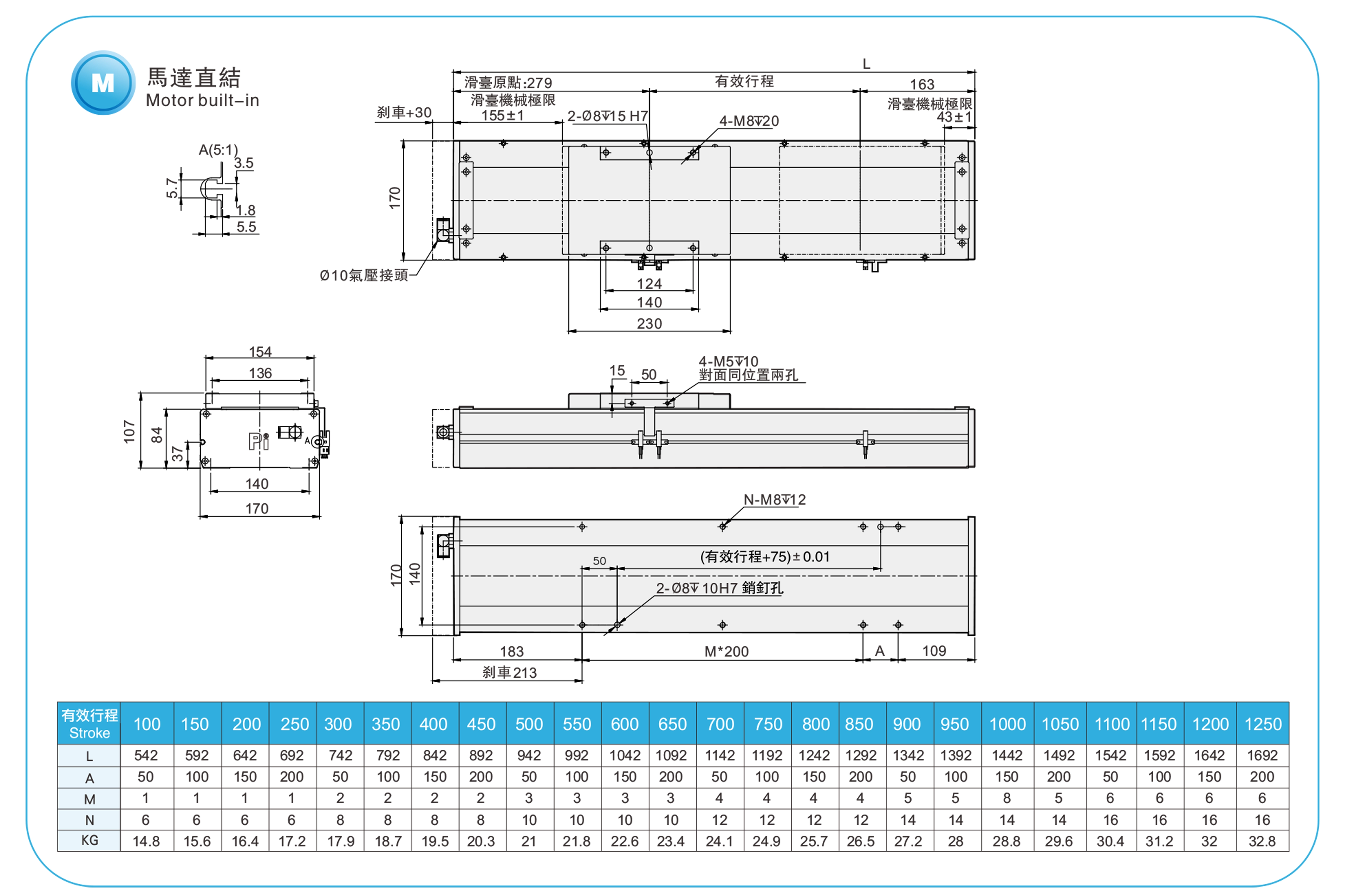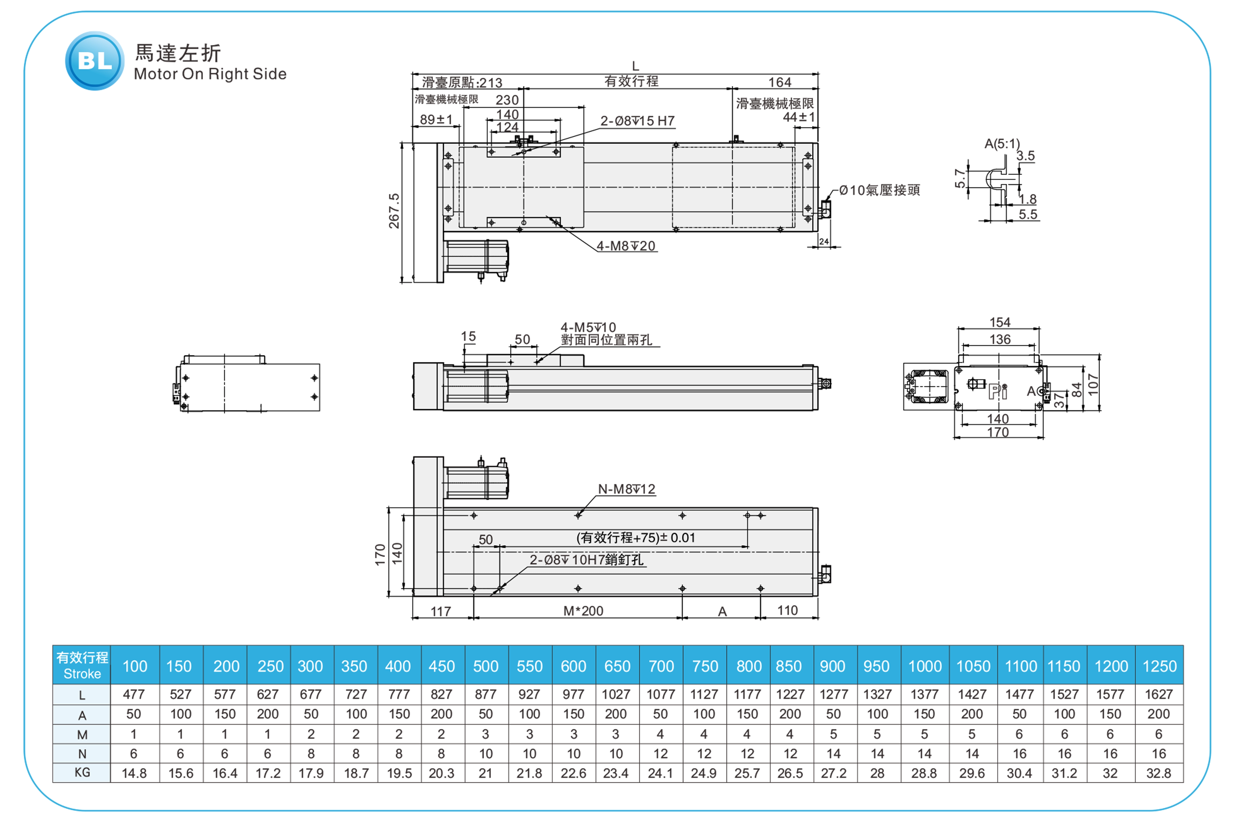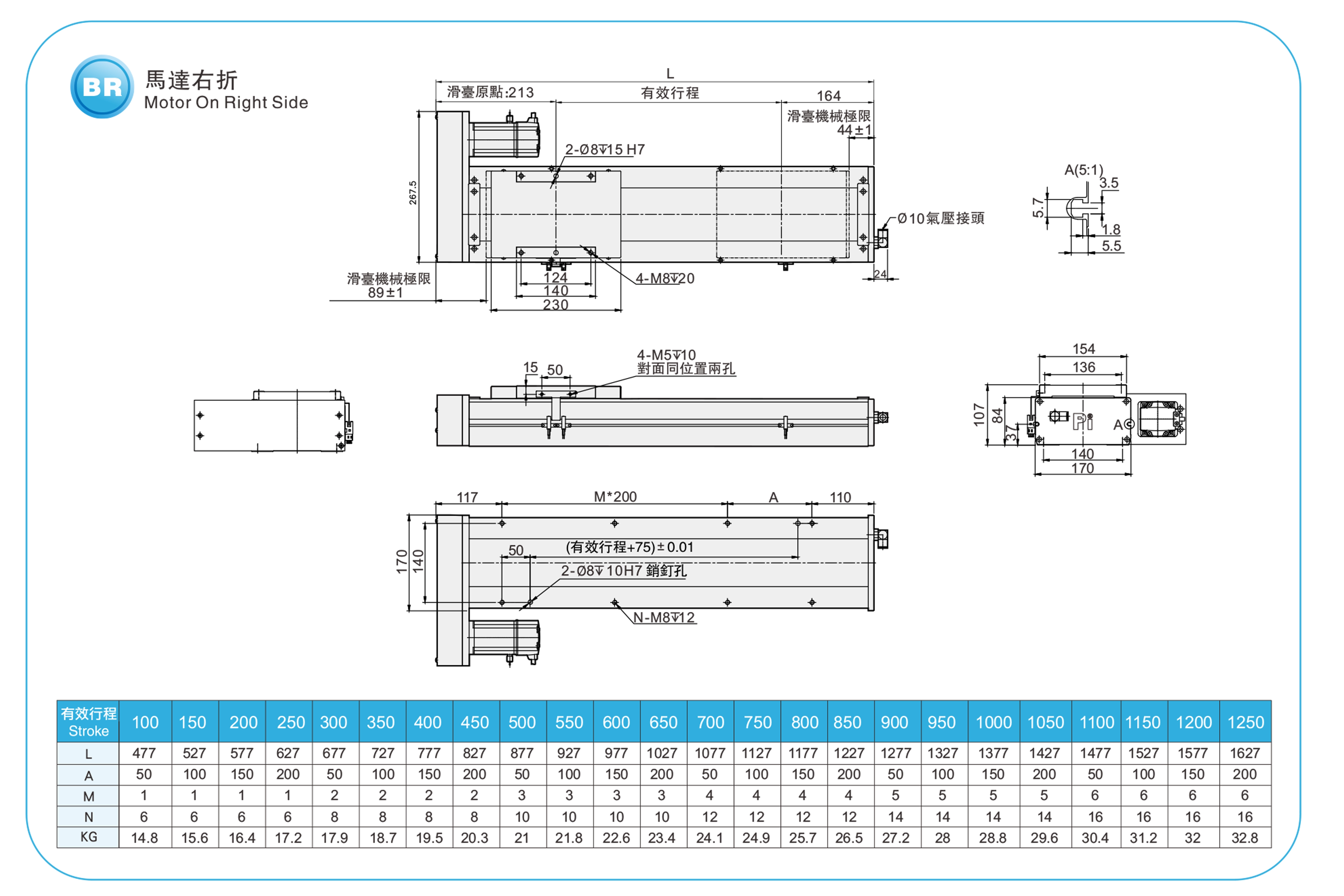 | ระยะชัก (มม.) | 100-1250 มม./ระยะห่าง 50 มม. | |||||