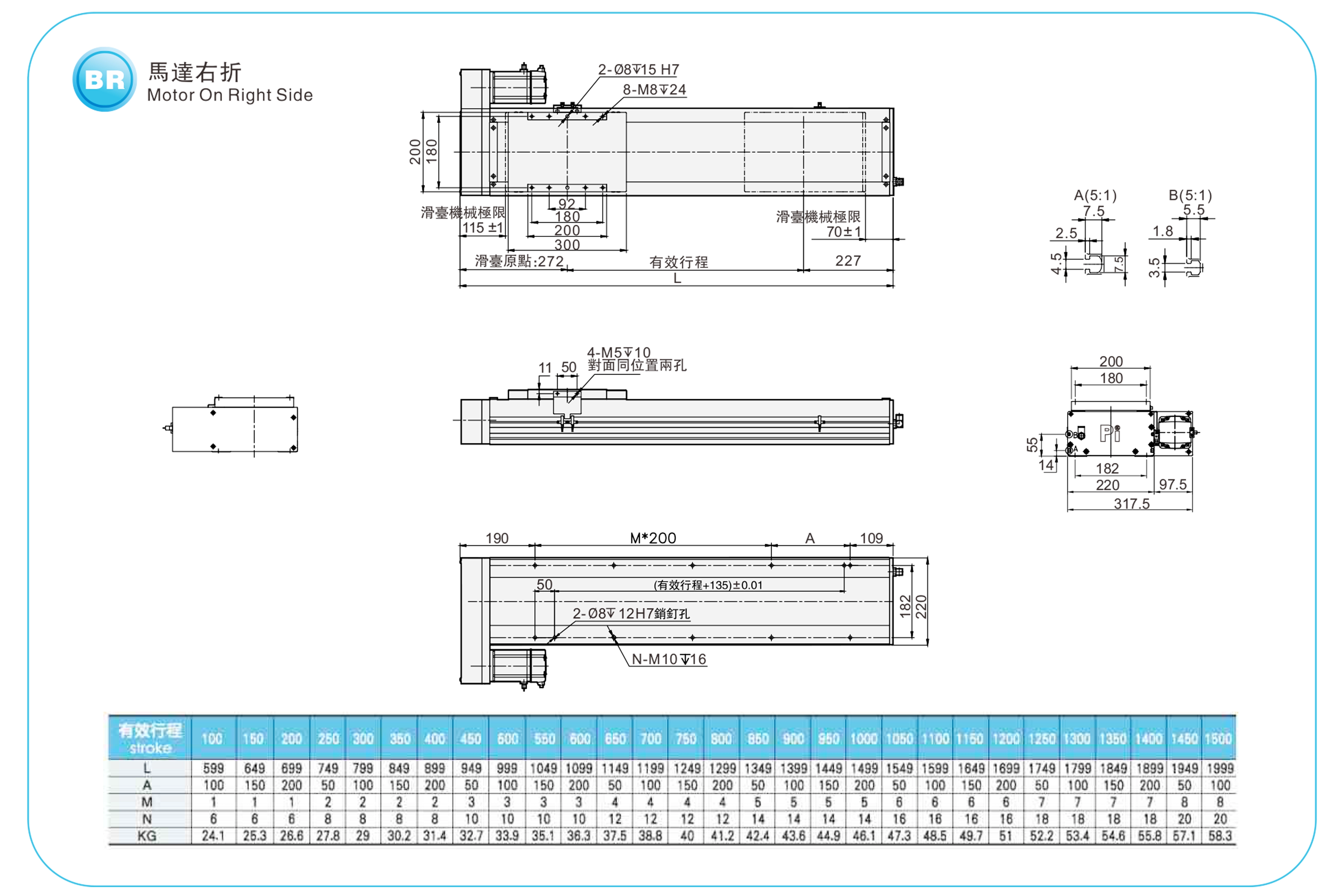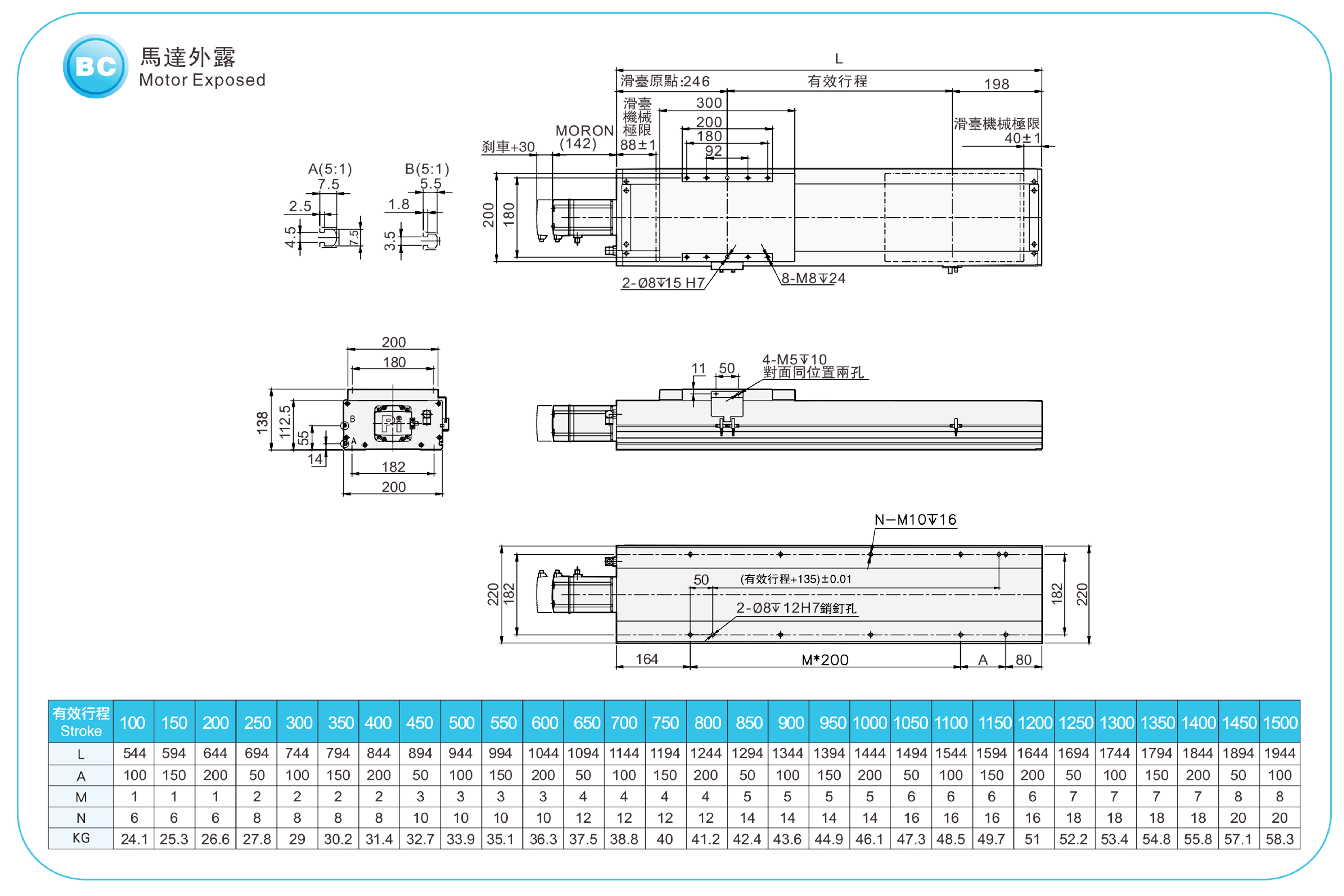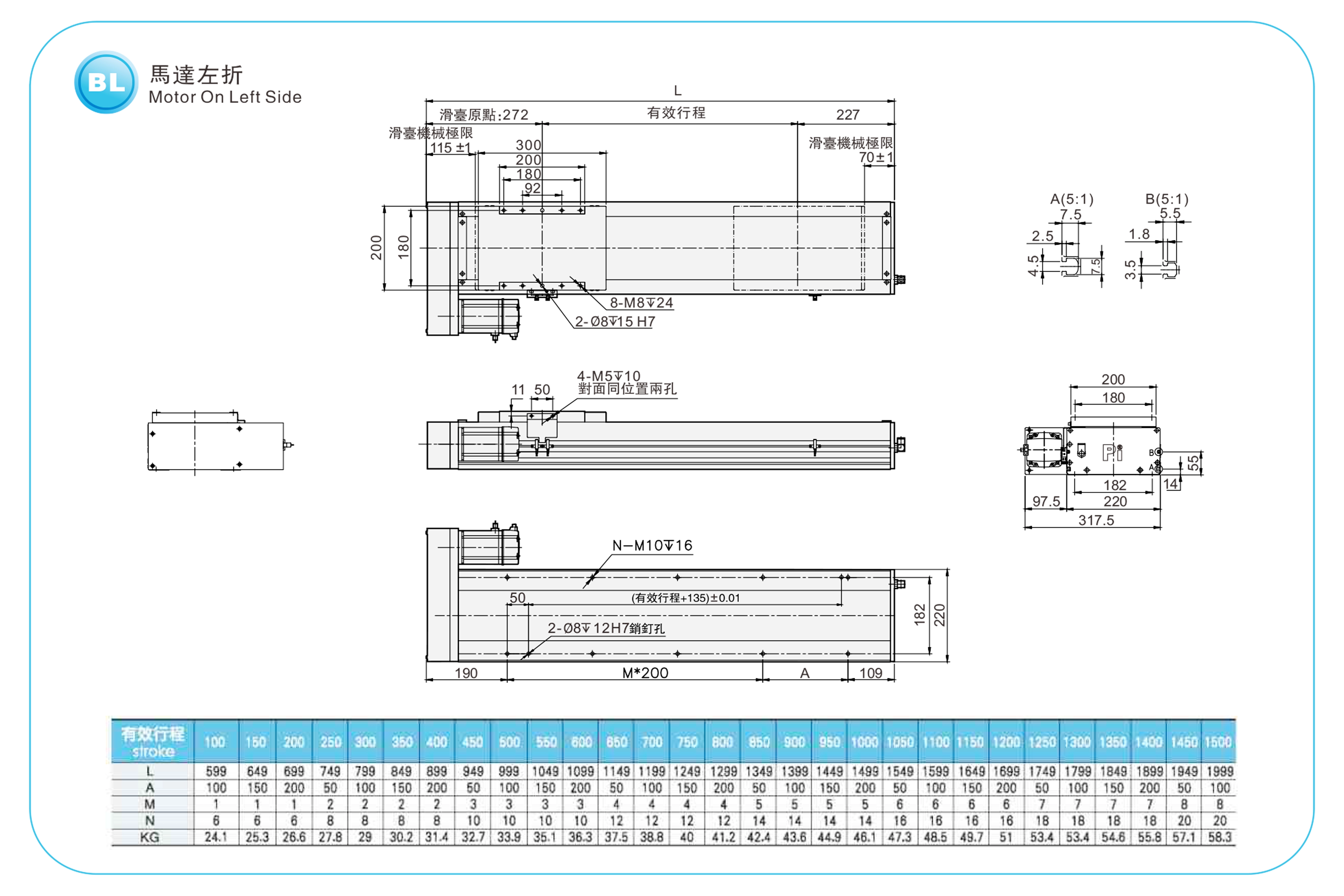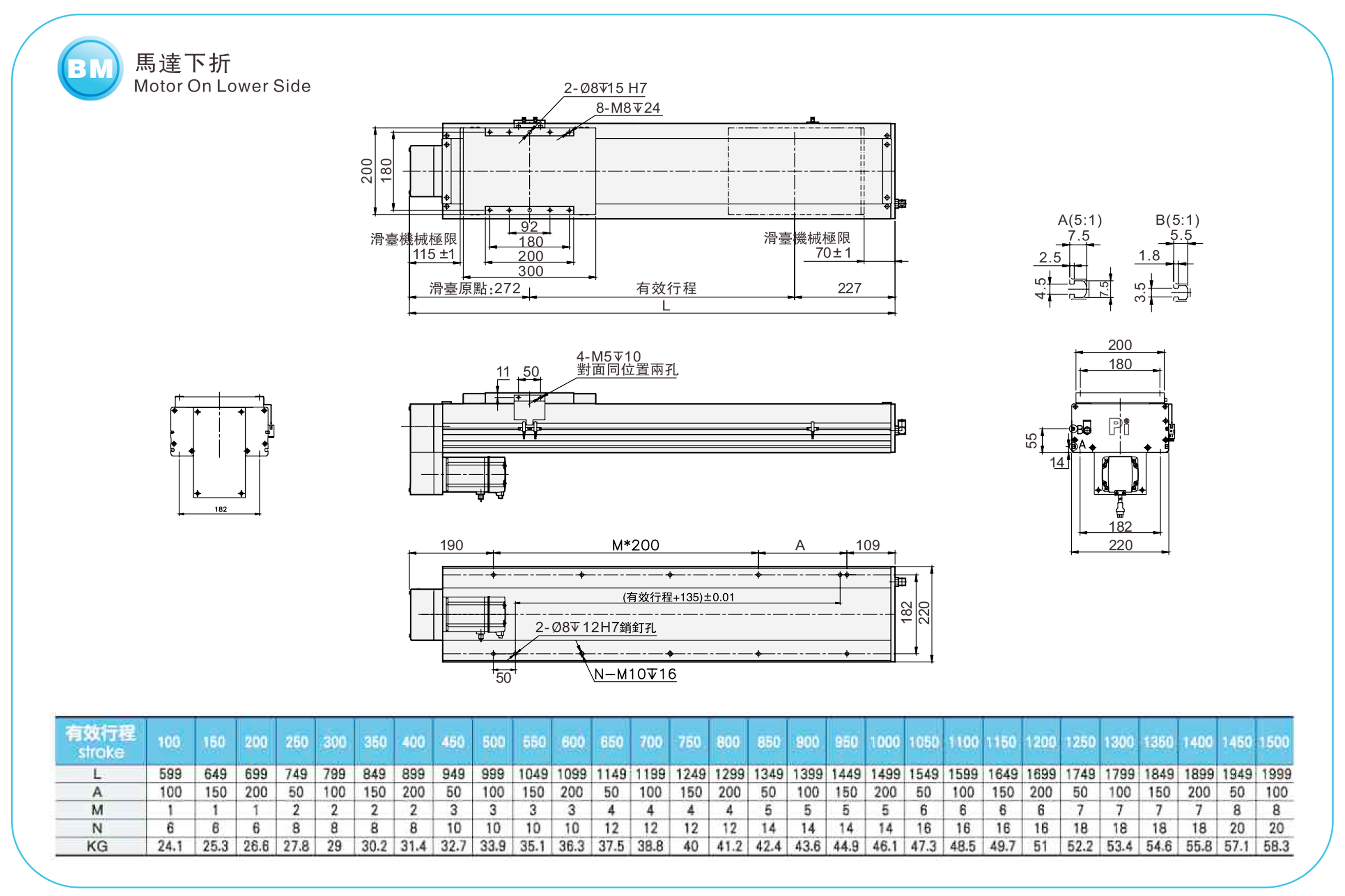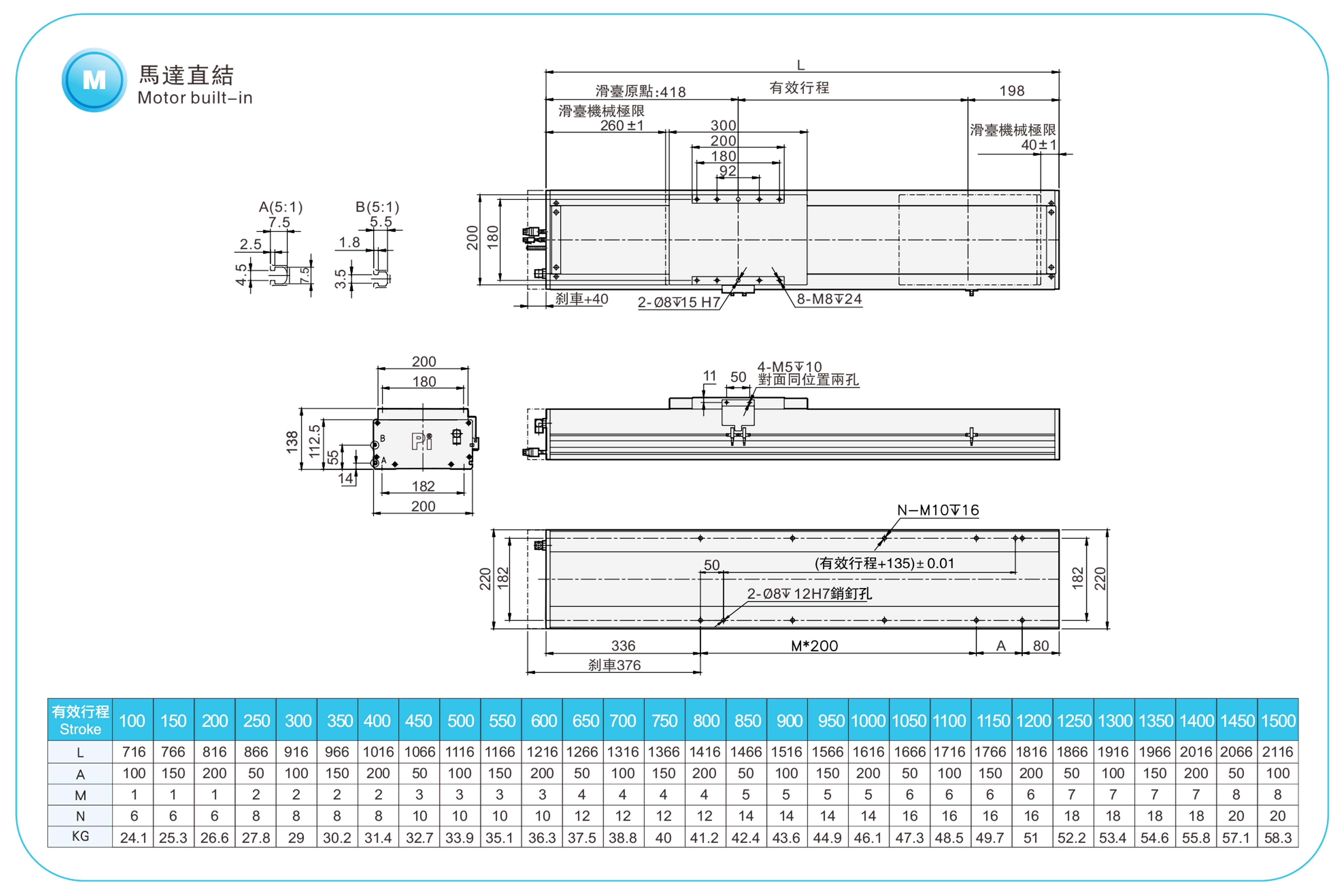 | ระยะชัก (มม.) | 100-1500 มม./ระยะห่าง 50 มม. | |||||