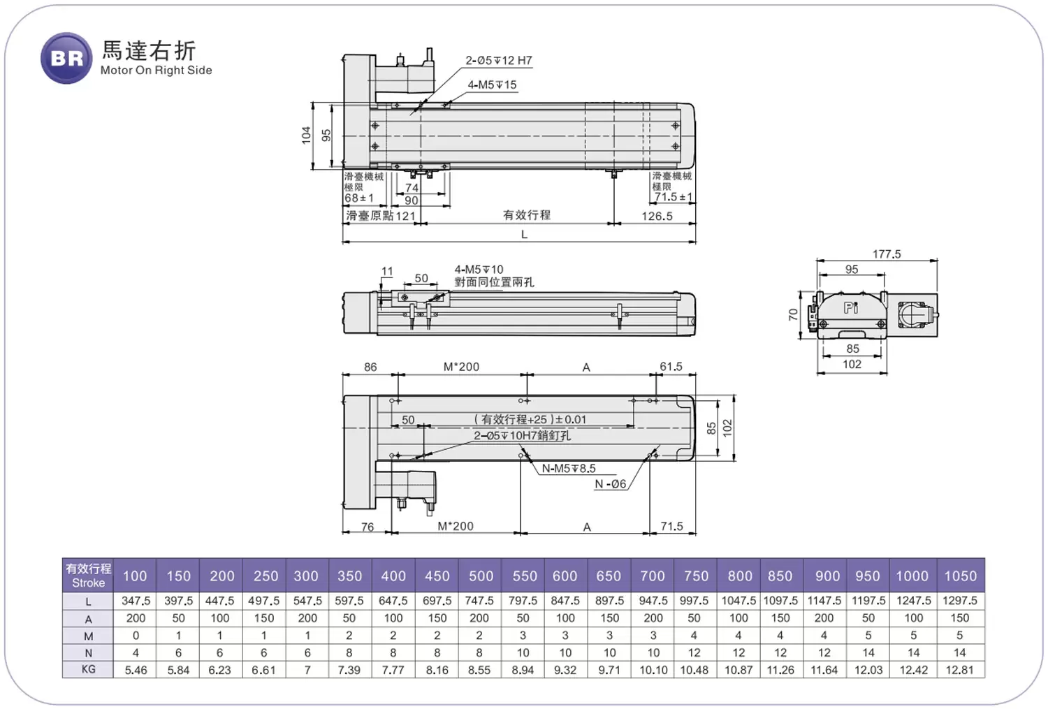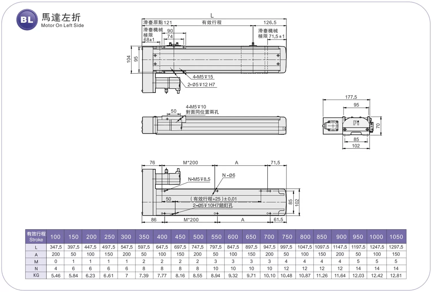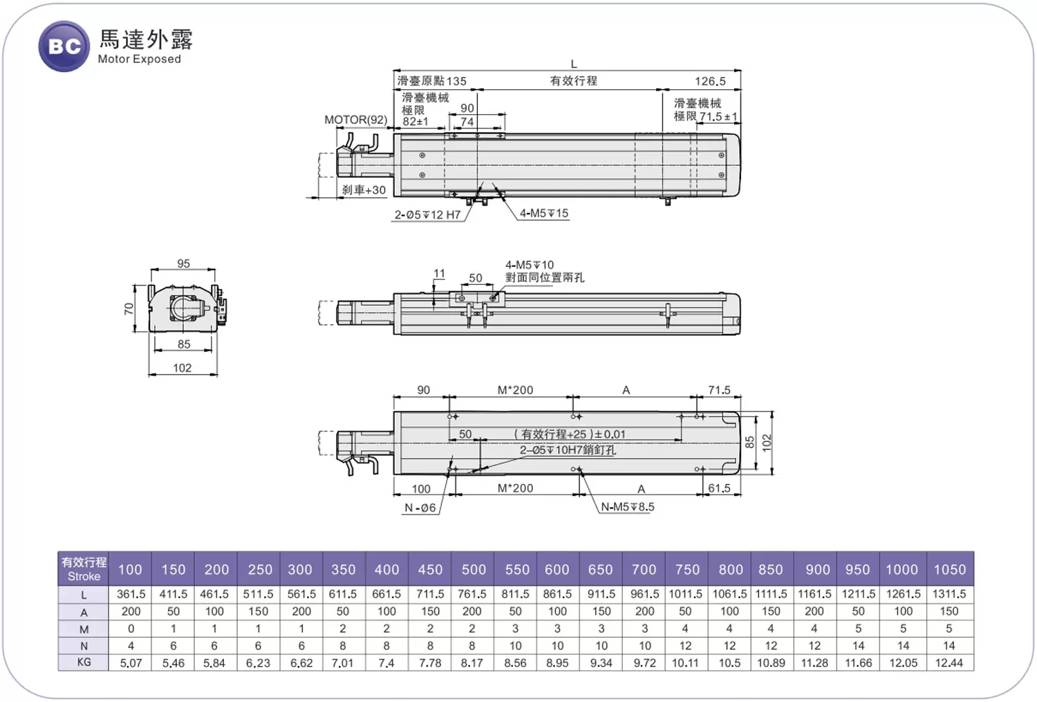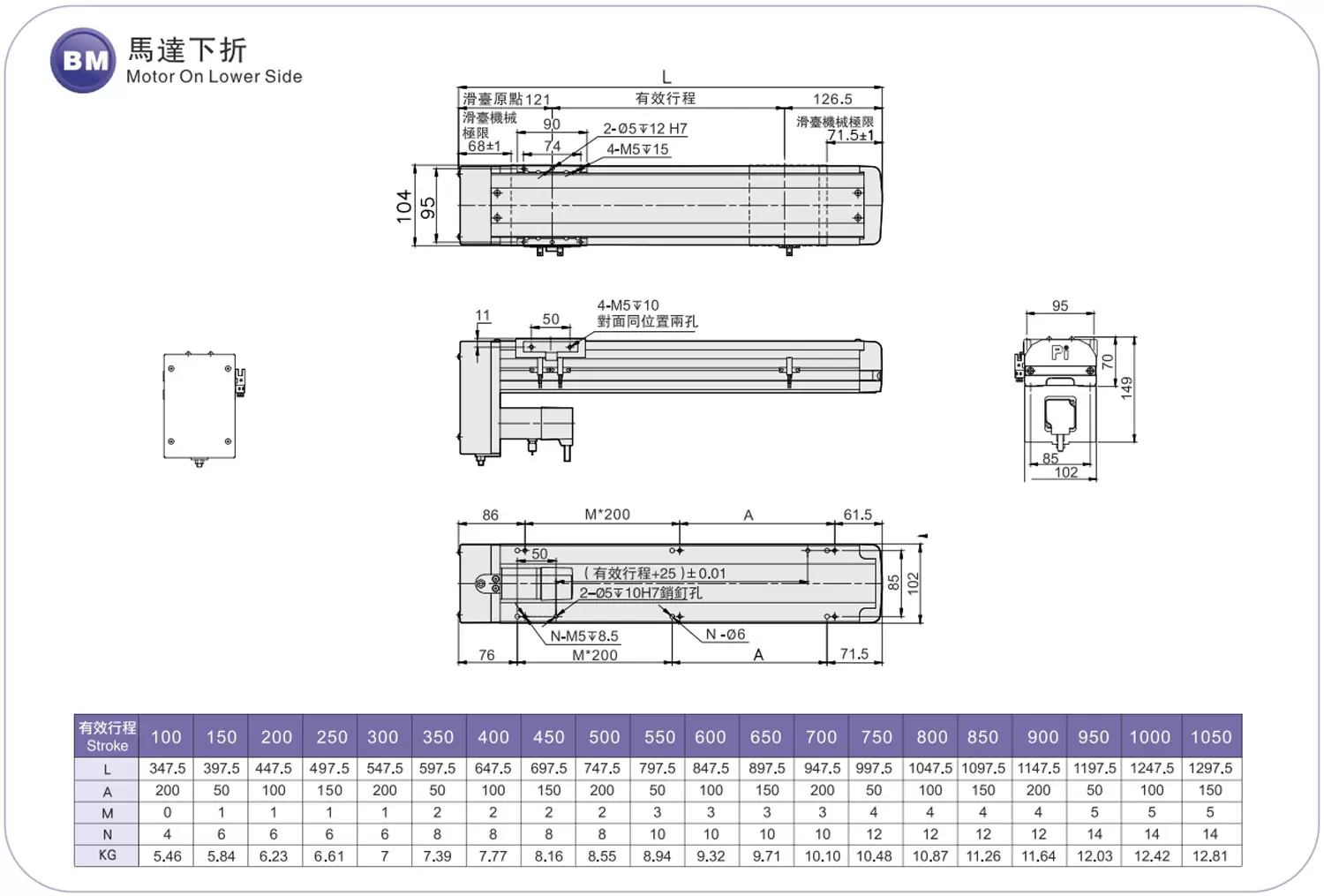 | ระยะชัก (มม.) | 100-1050 มม./ระยะห่าง 50 มม. | |||||
