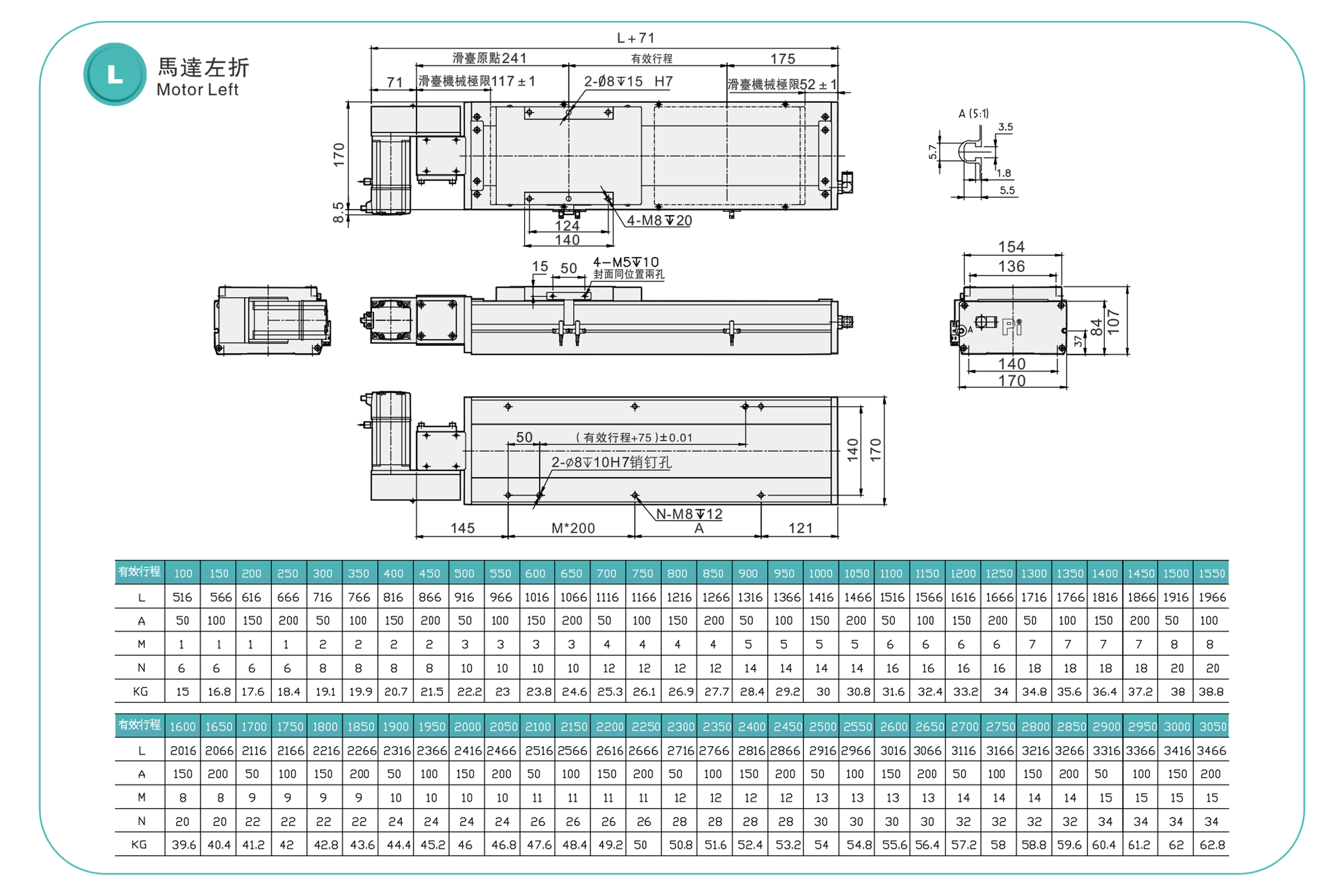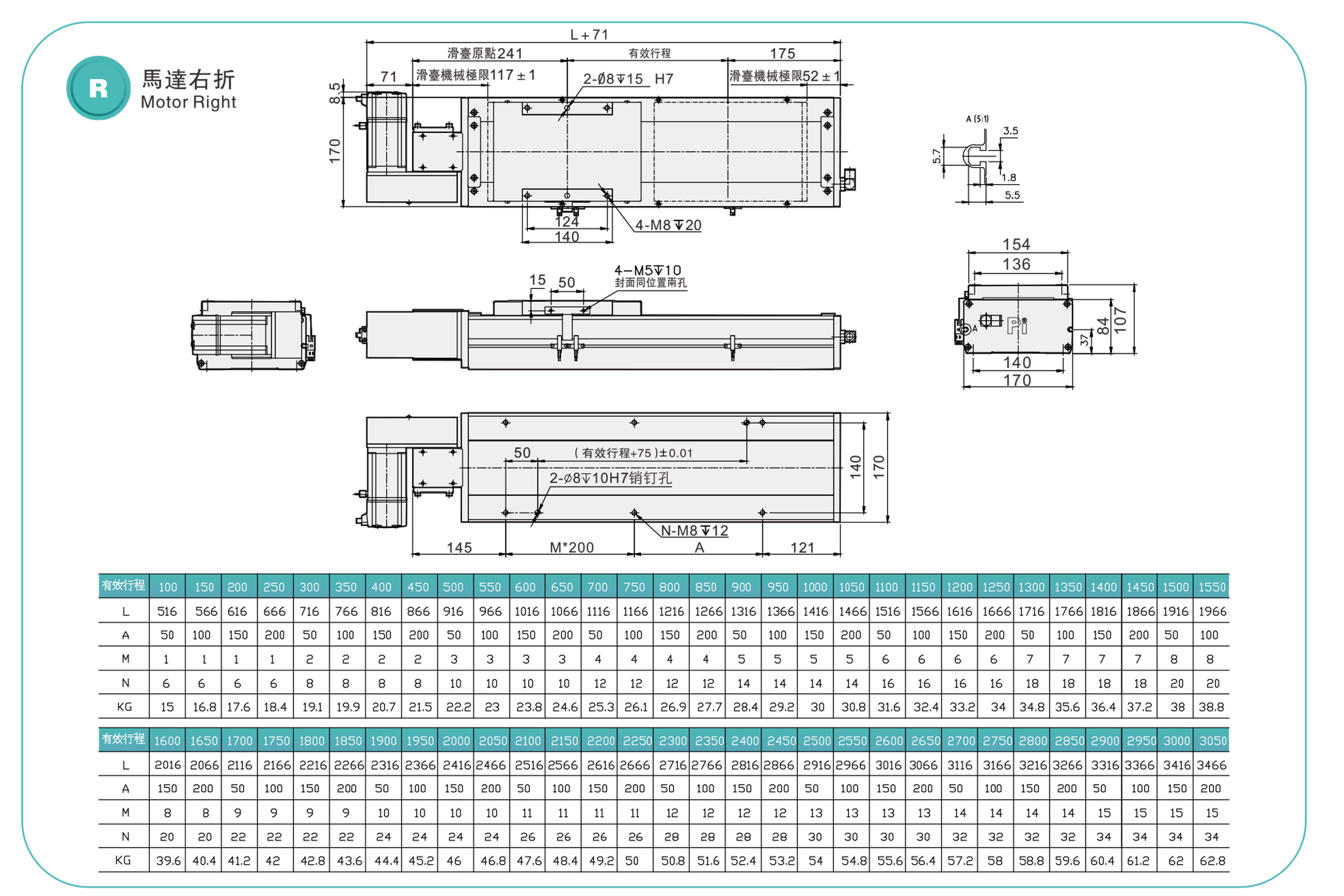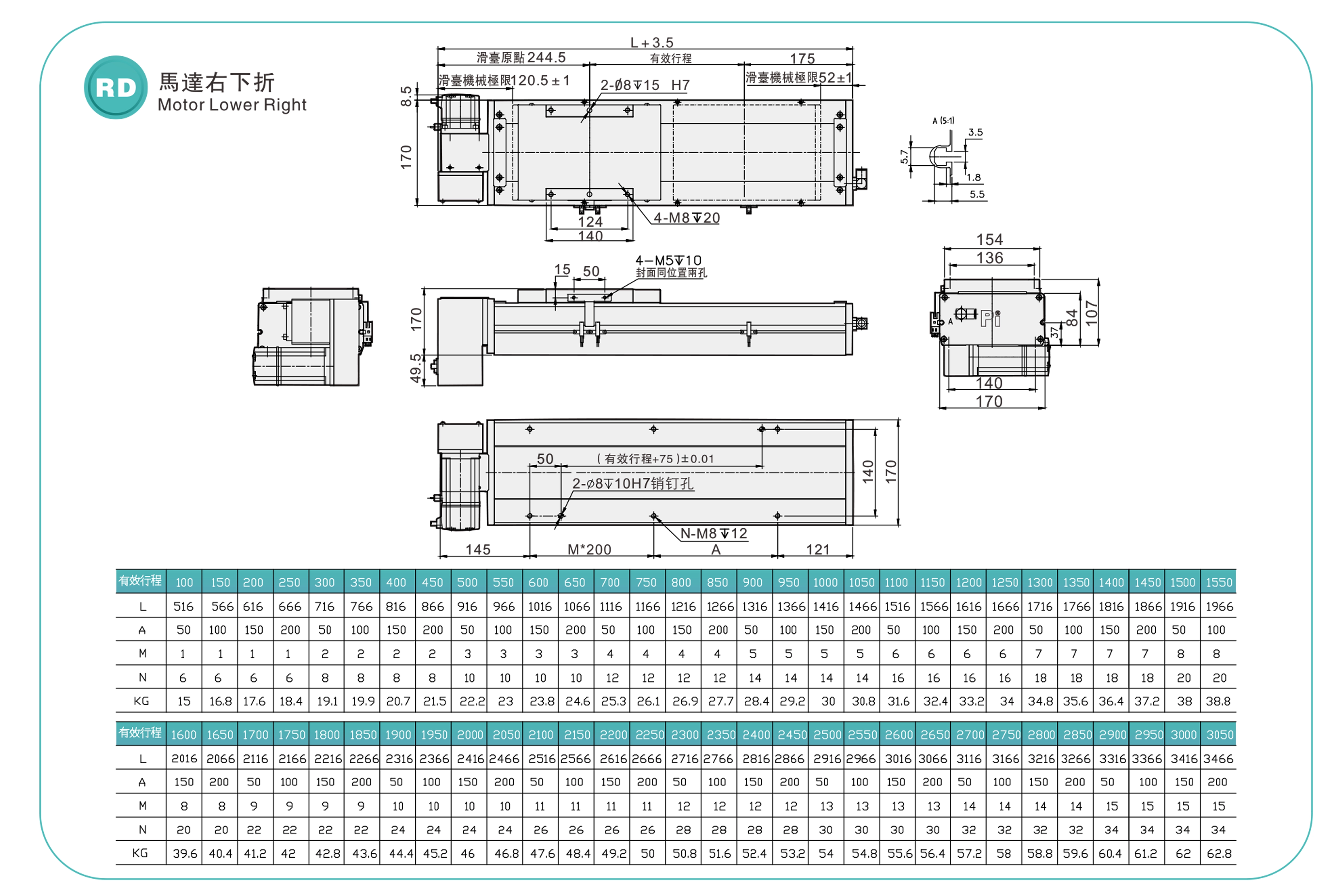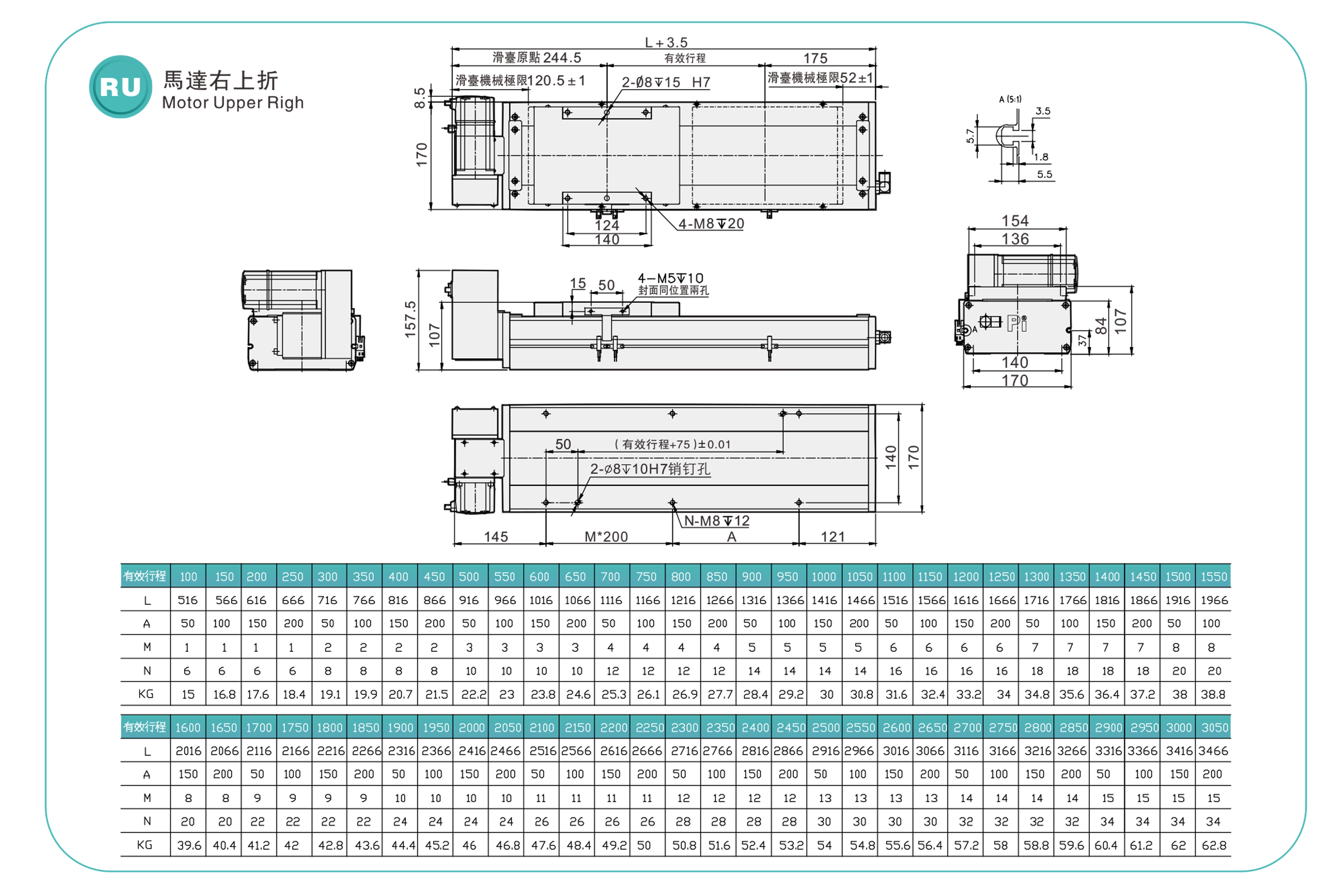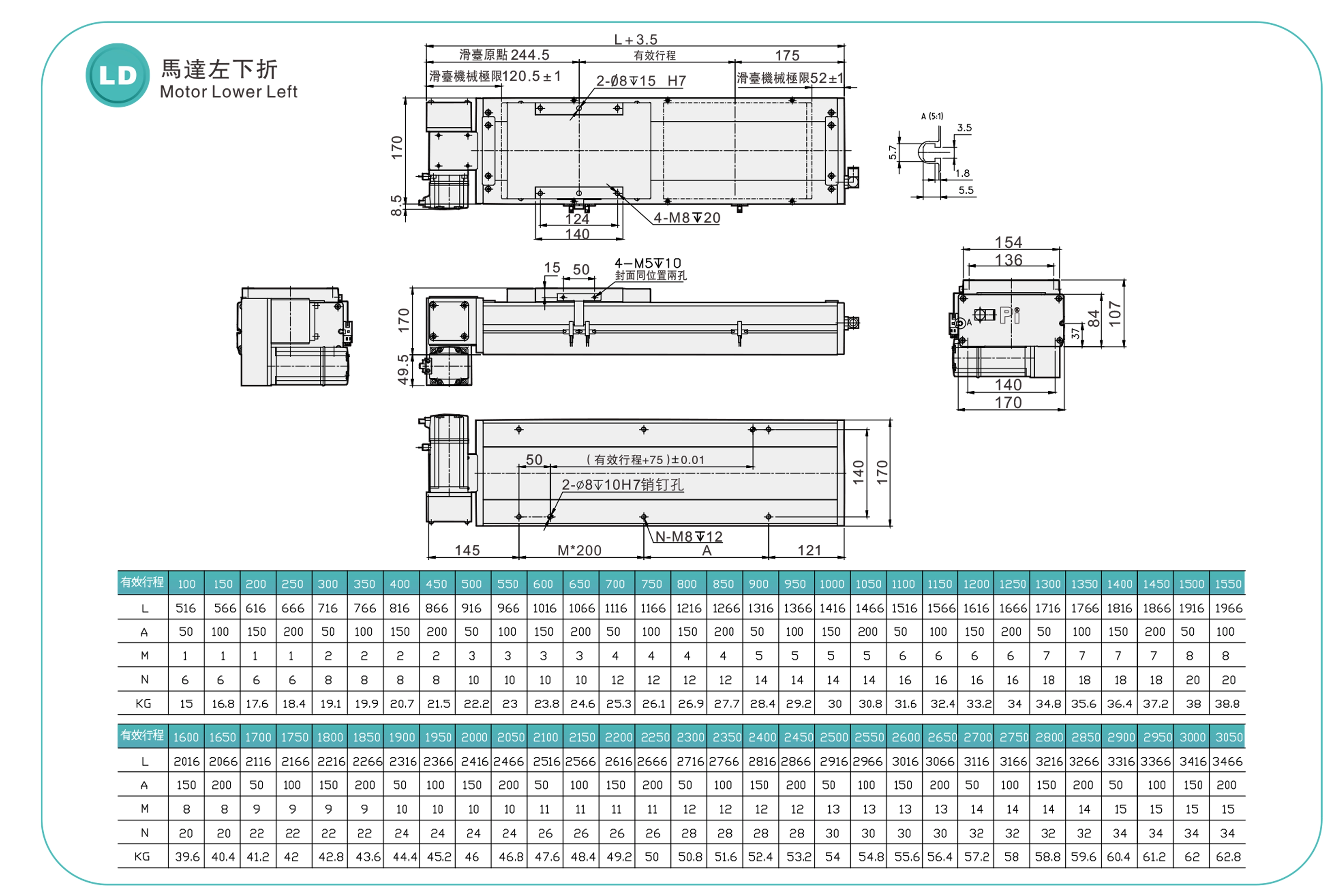 | ระยะชัก (มม.) | 100-4050 มม./ระยะห่าง 50 มม. | ||