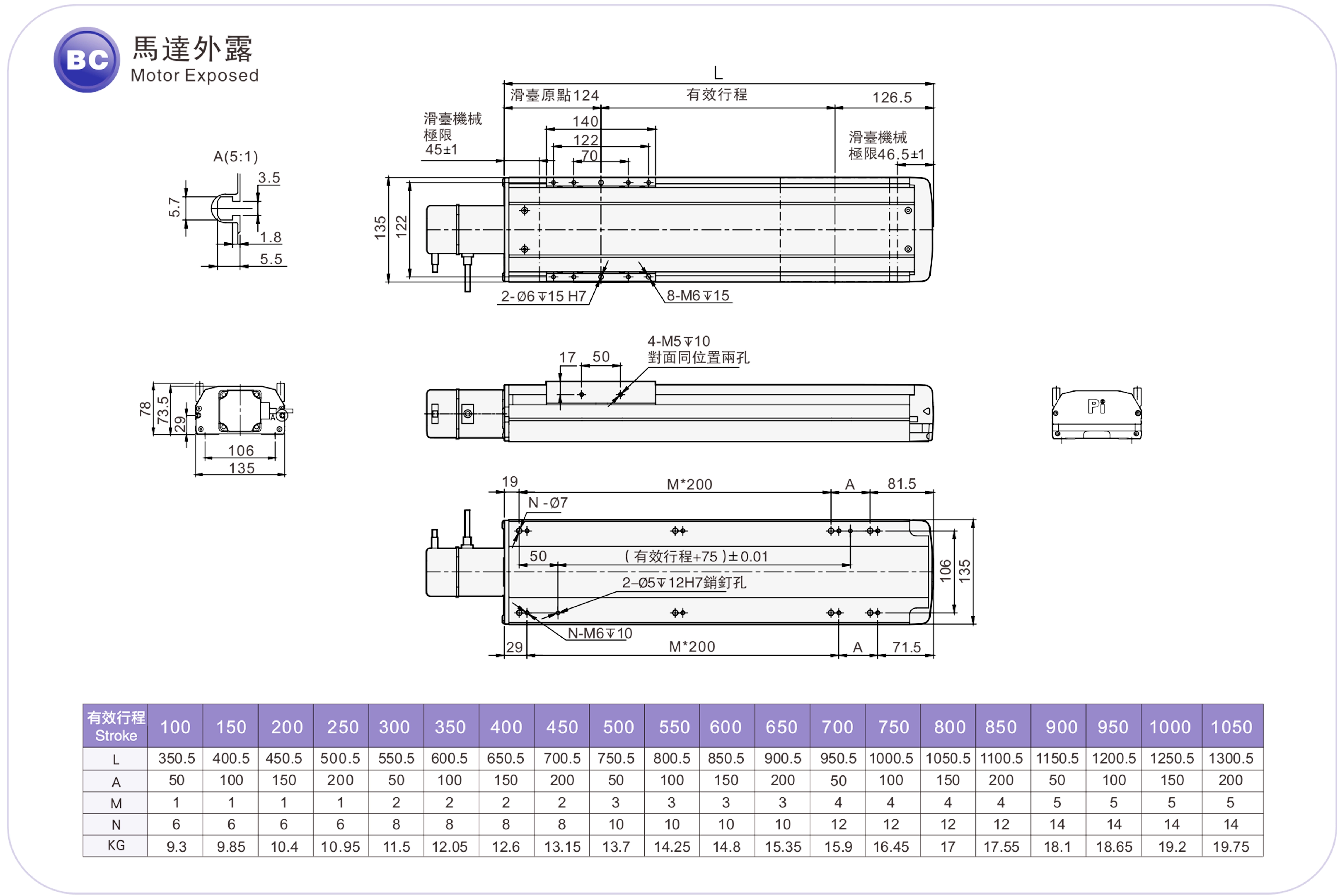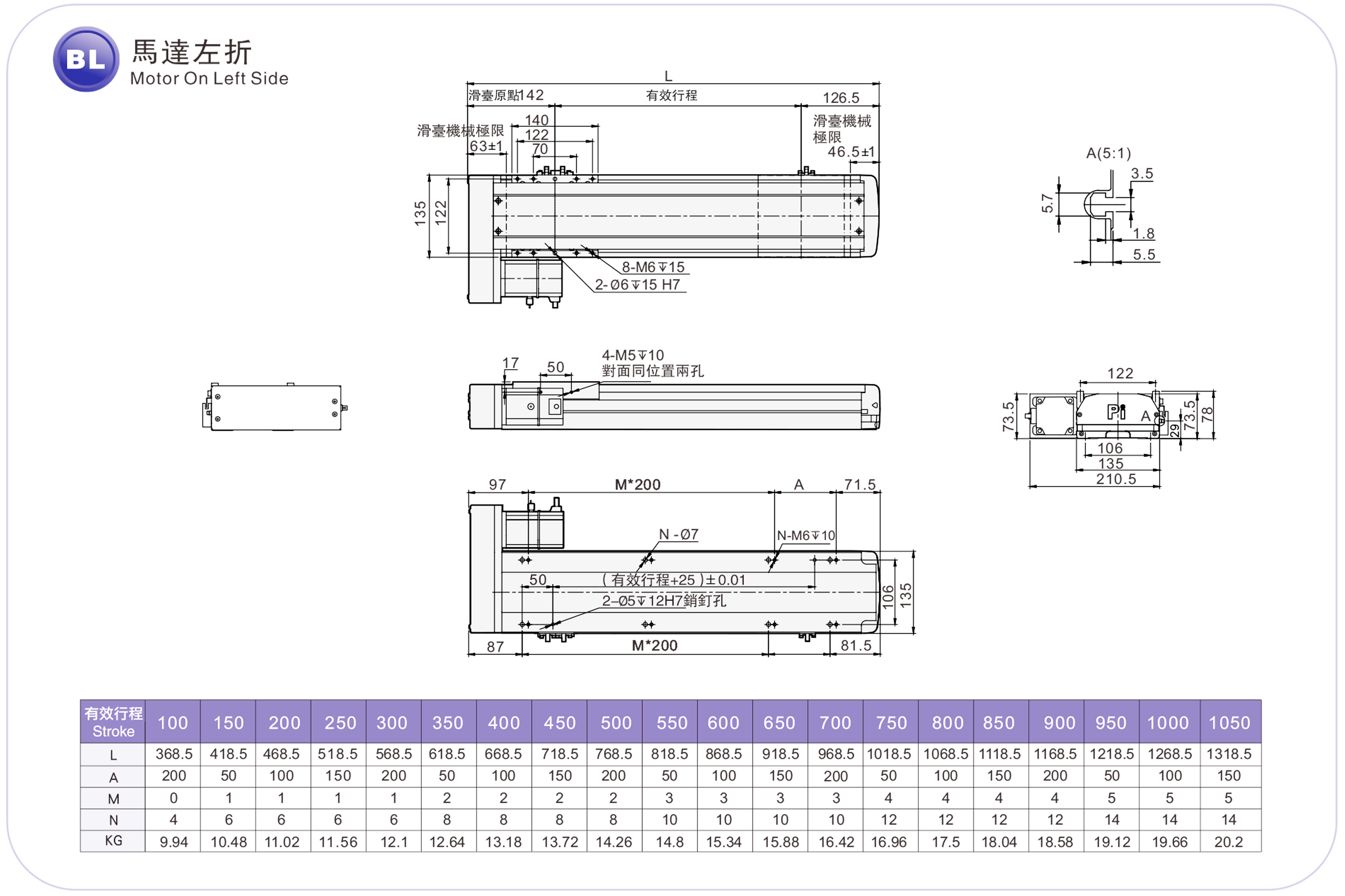 | ระยะชัก (มม.) | 100-1050 มม./ระยะห่าง 50 มม. | |||||