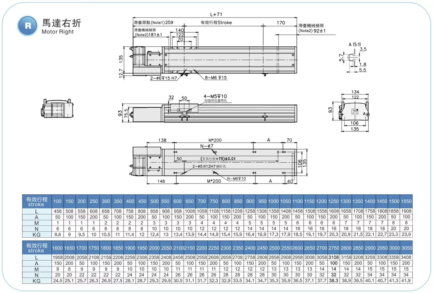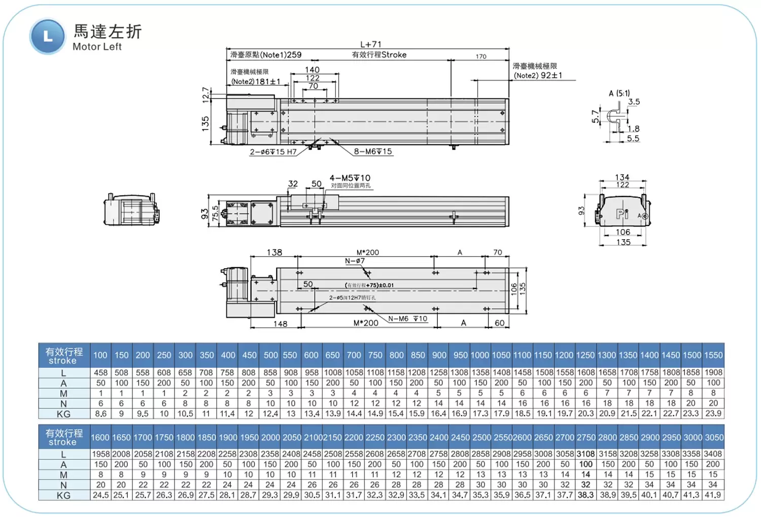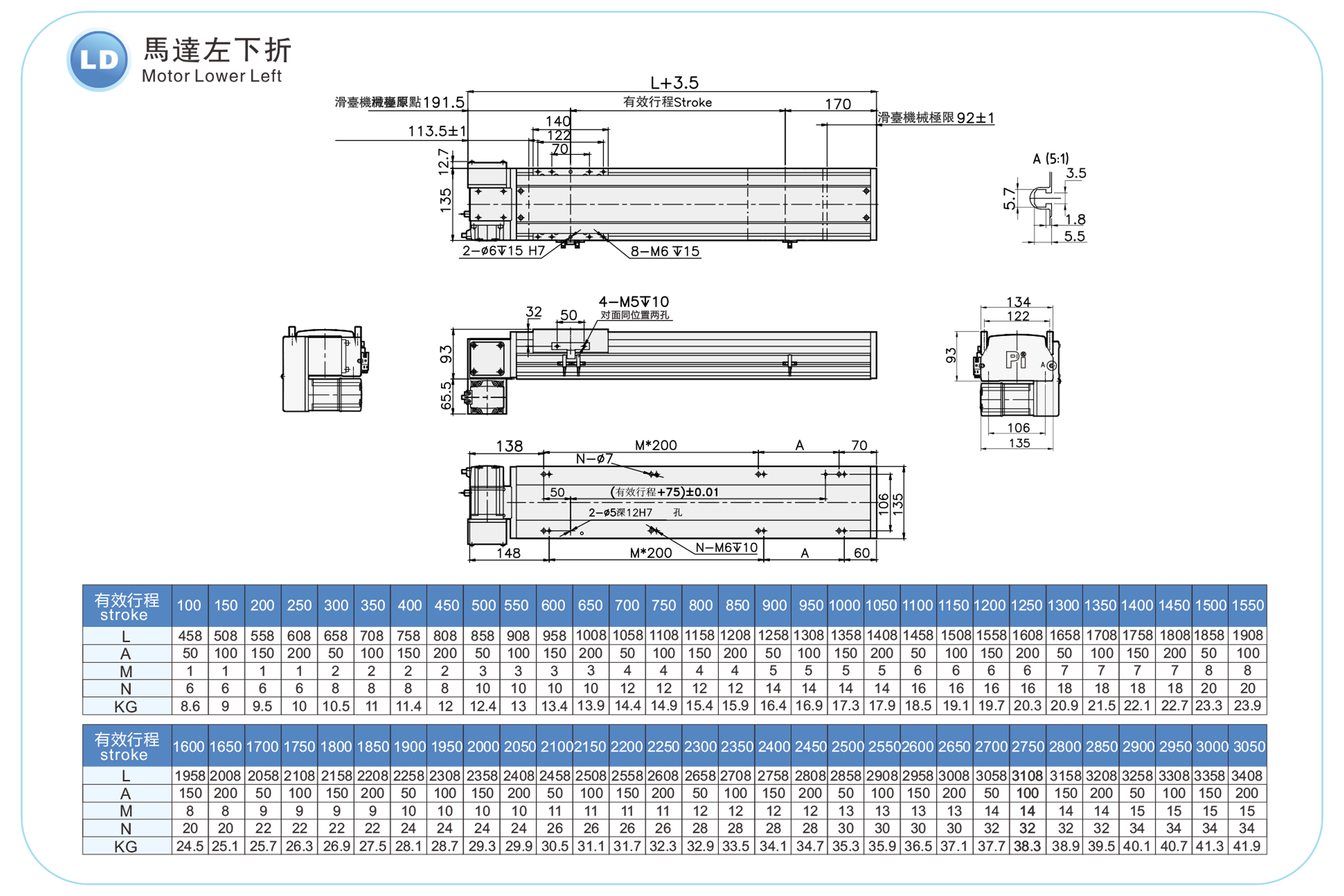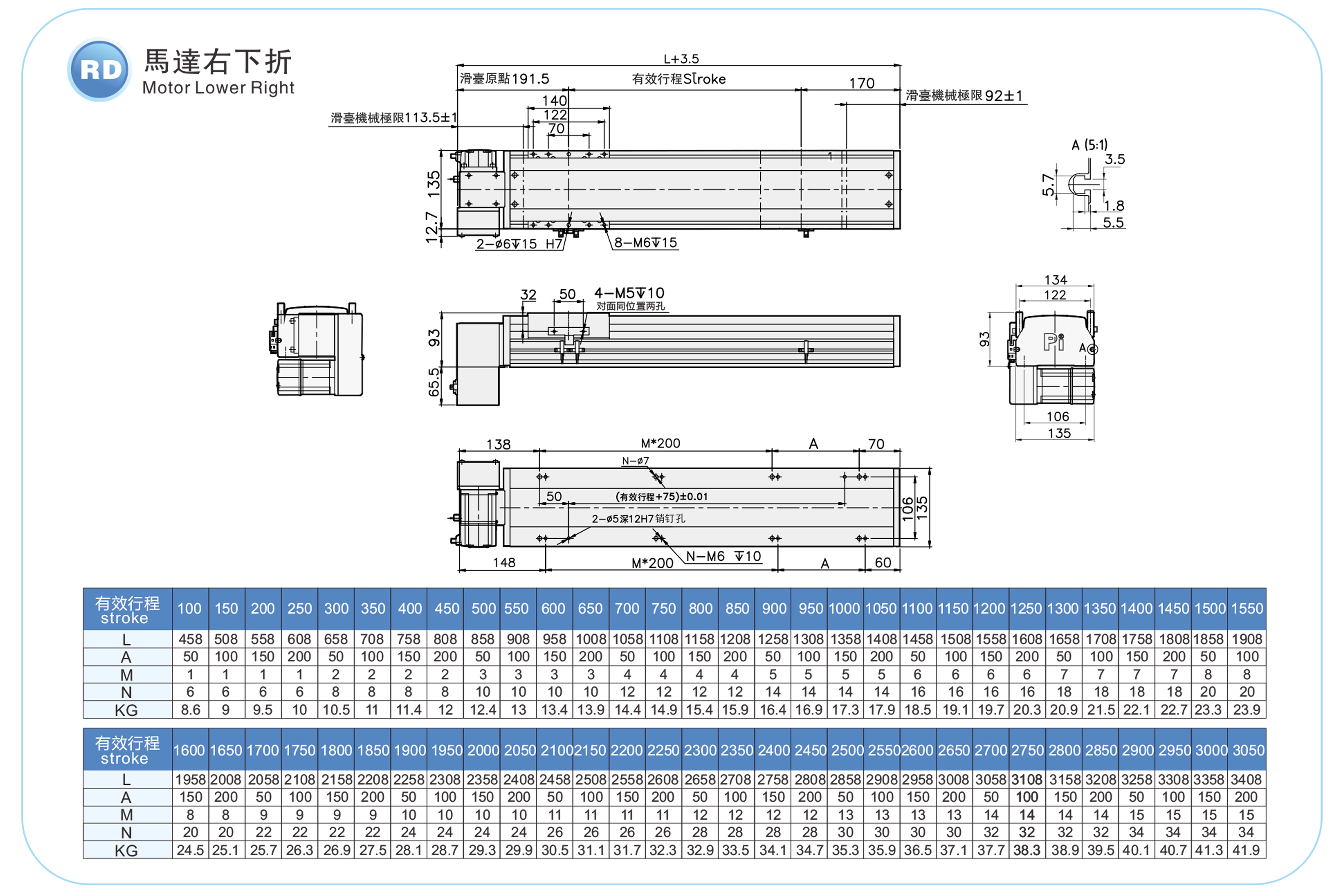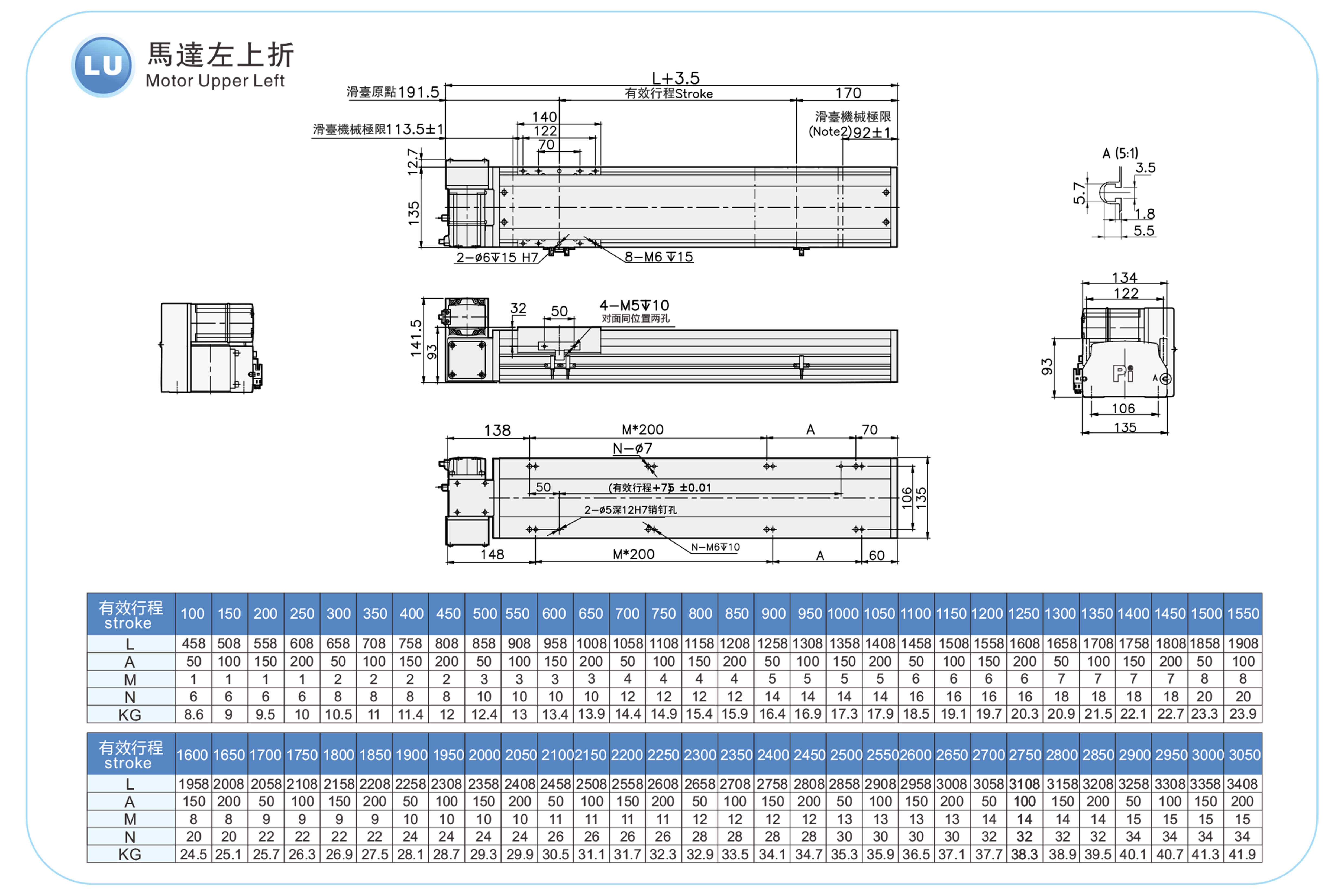 | ระยะชัก (มม.) | 100-3050 มม./ระยะห่าง 50 มม. | ||