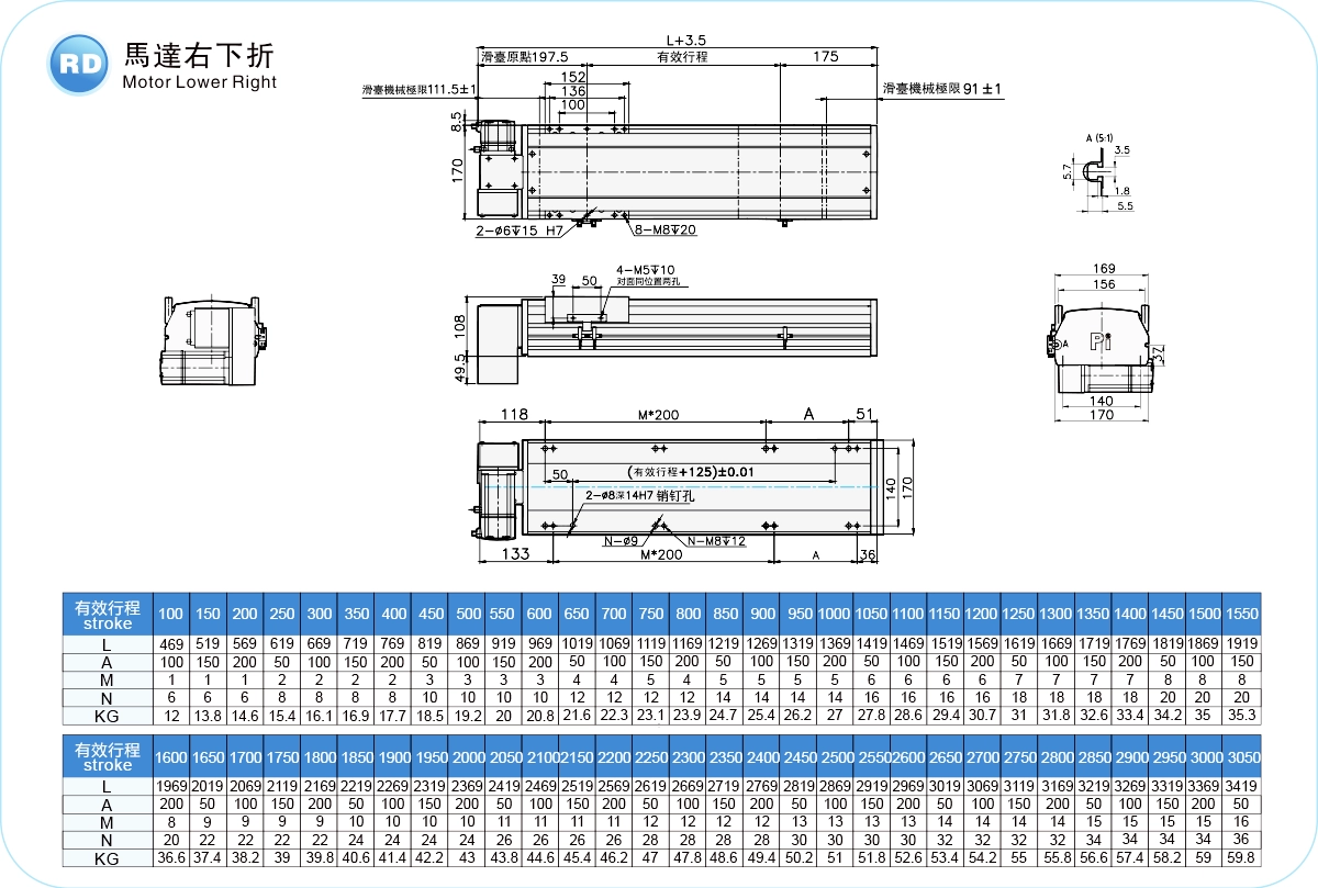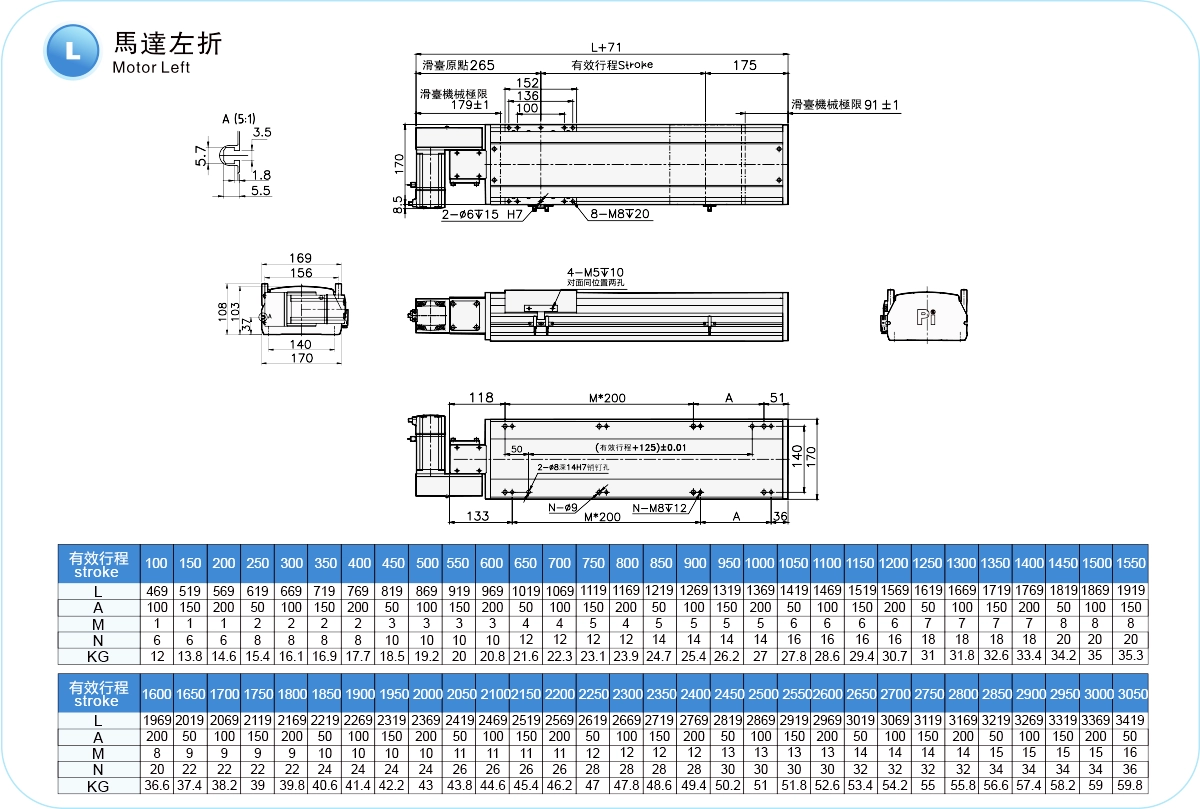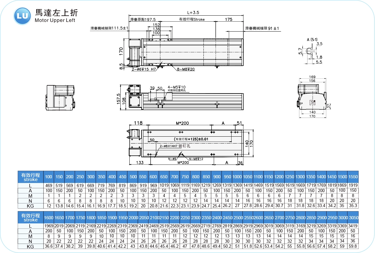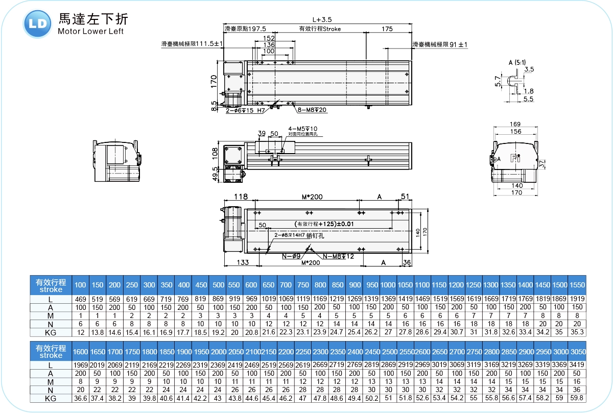 | ระยะชัก (มม.) | 100-4050 มม./ระยะห่าง 50 มม. | ||