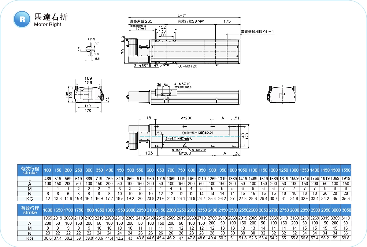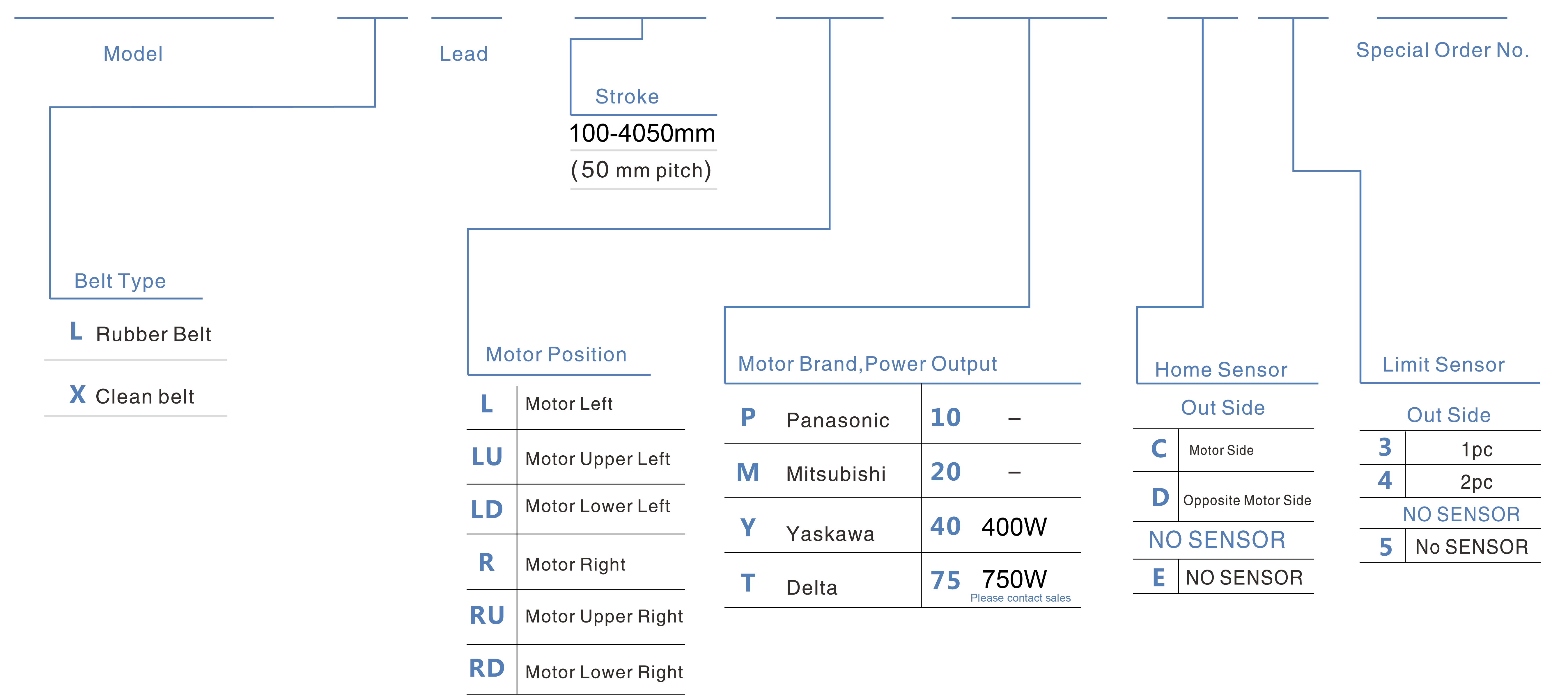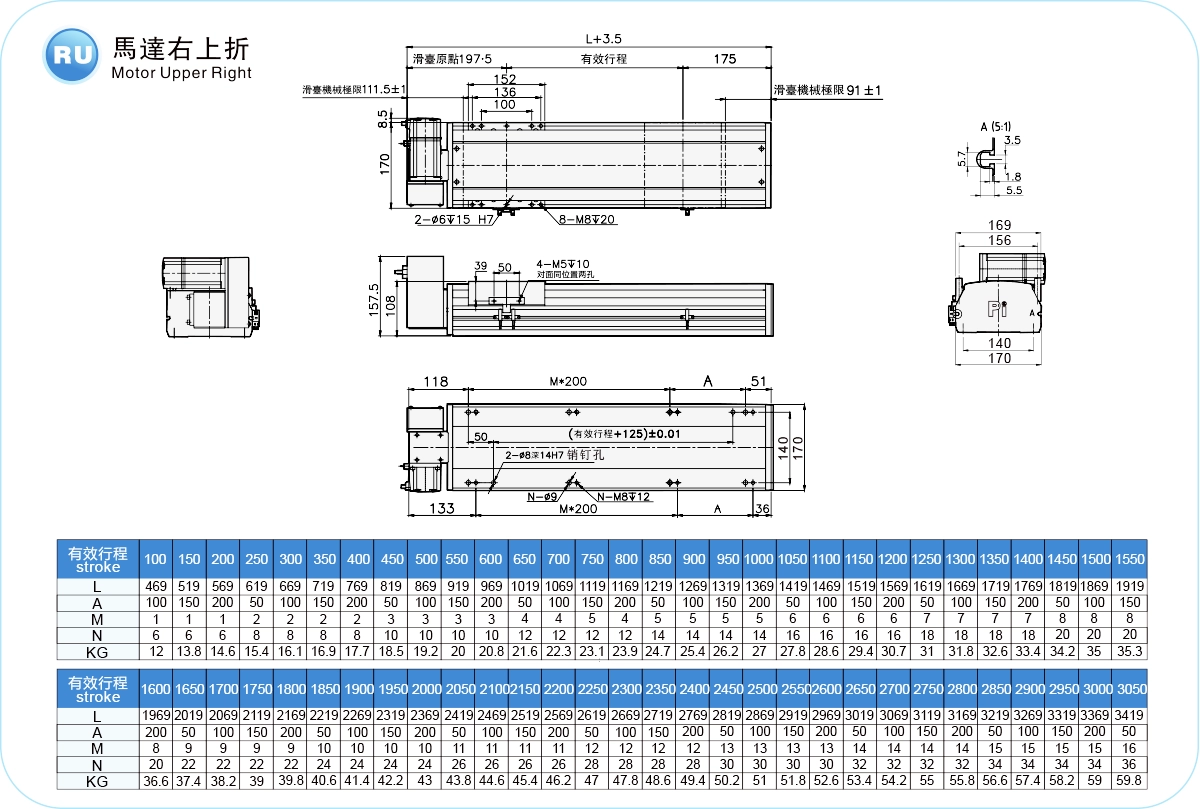 | ระยะชัก (มม.) | 100-4050 มม./ระยะห่าง 50 มม. | ||