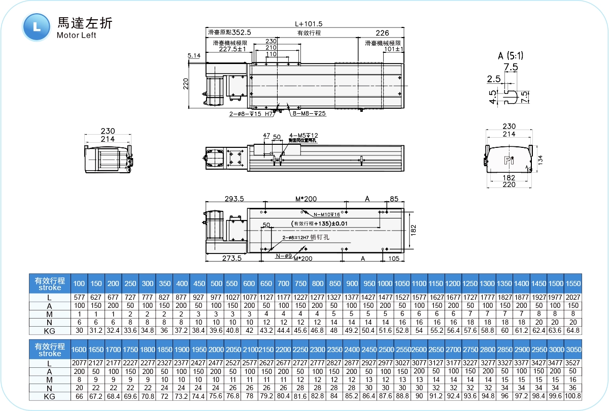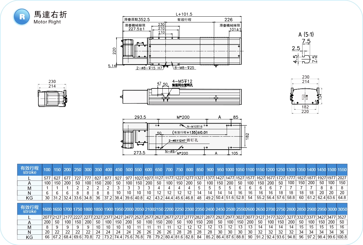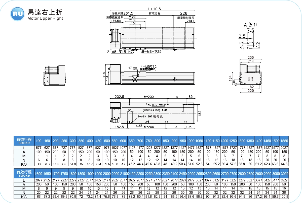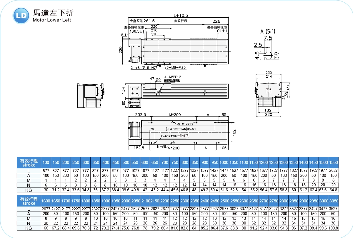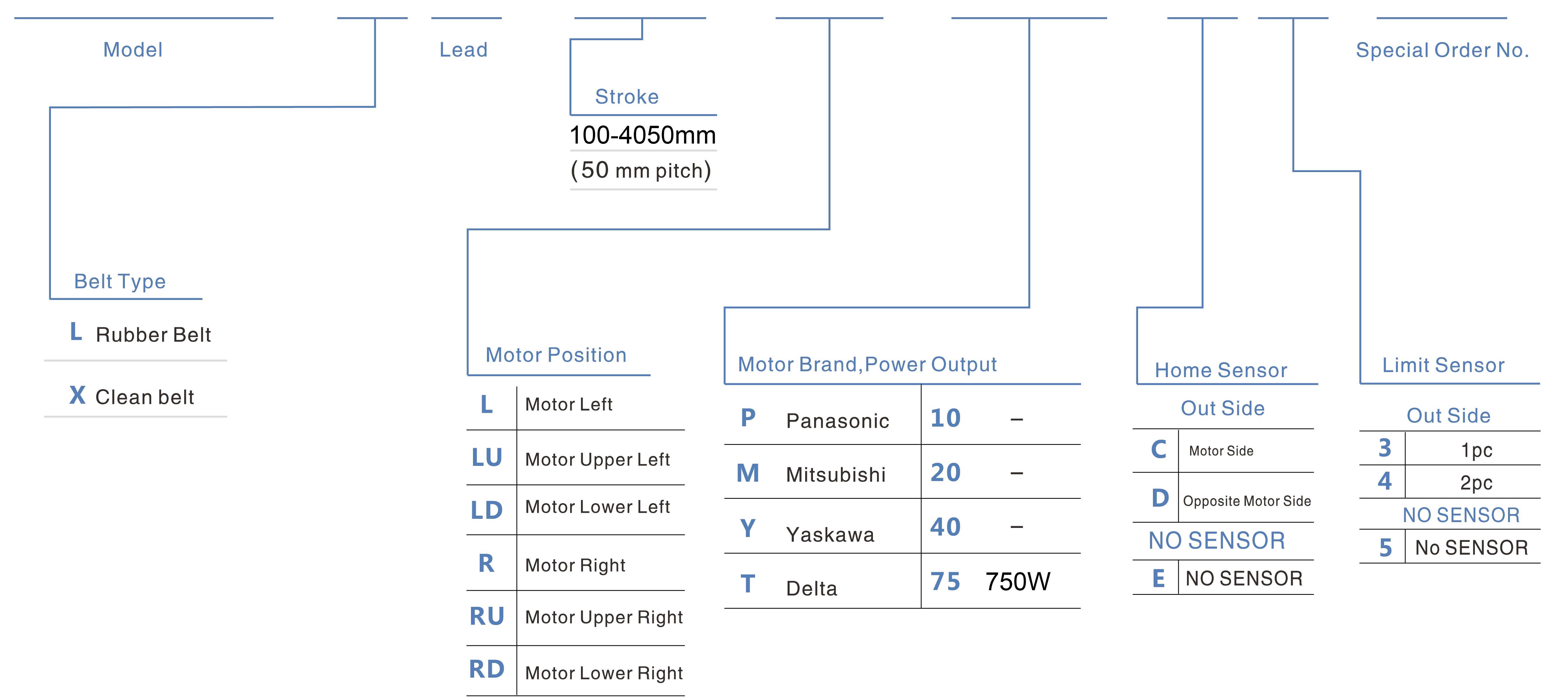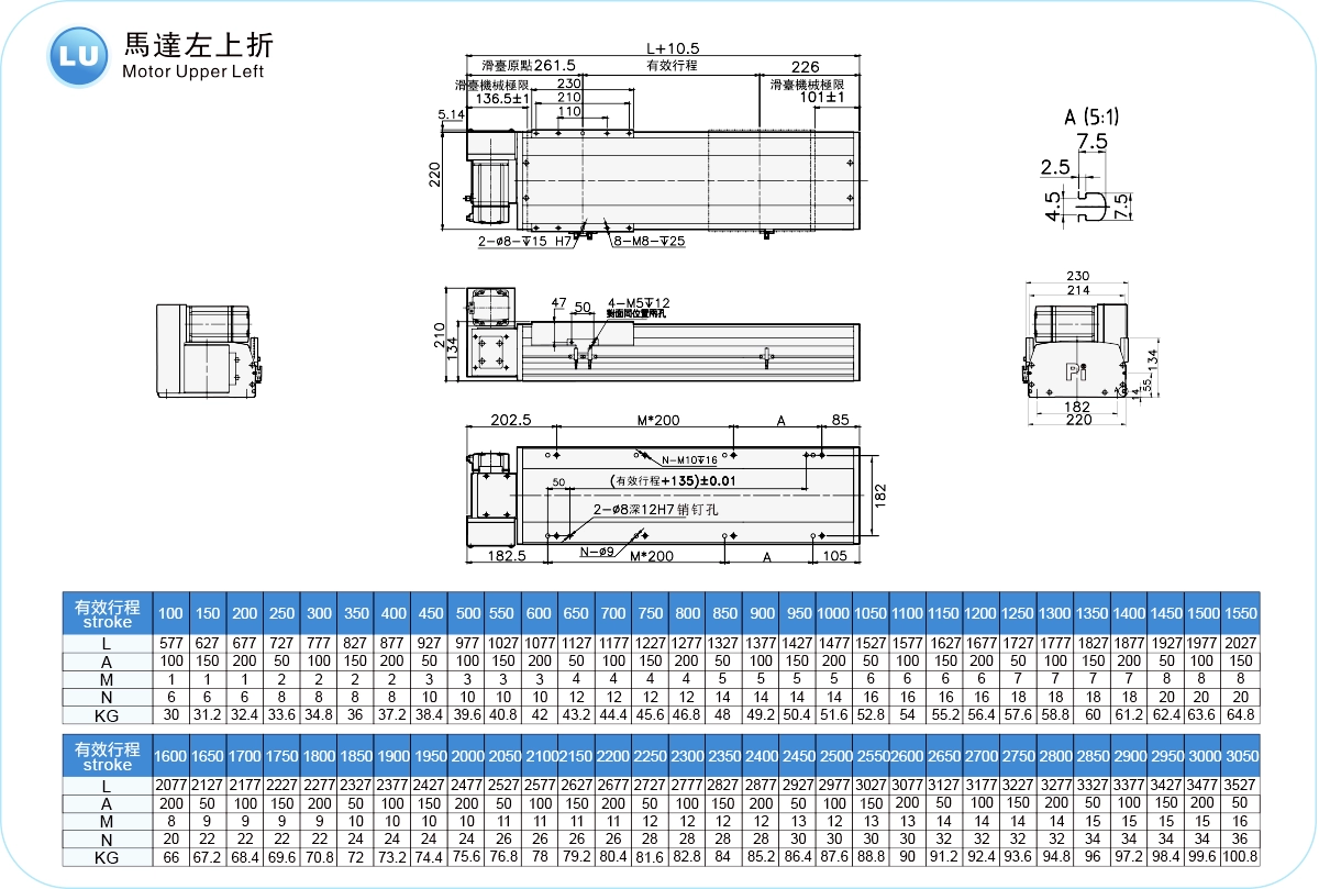 | ระยะชัก (มม.) | 100-4050 มม./ระยะห่าง 50 มม. | ||