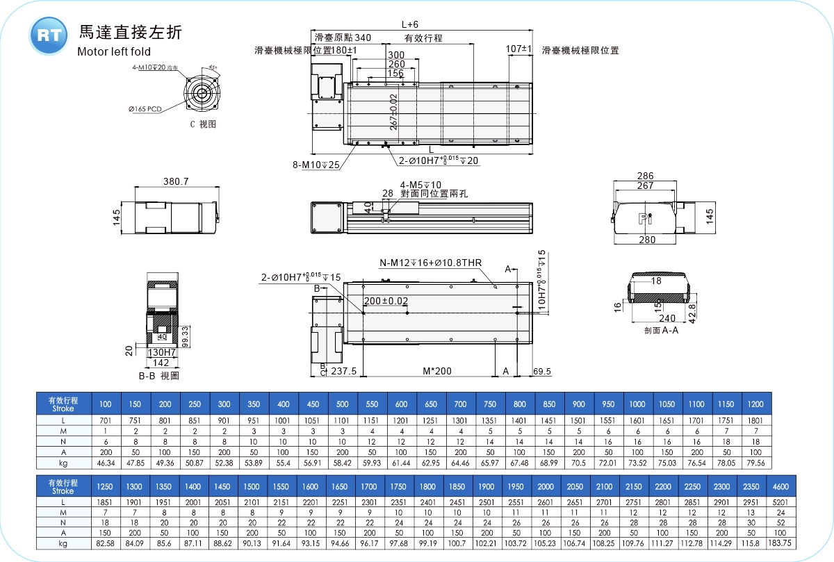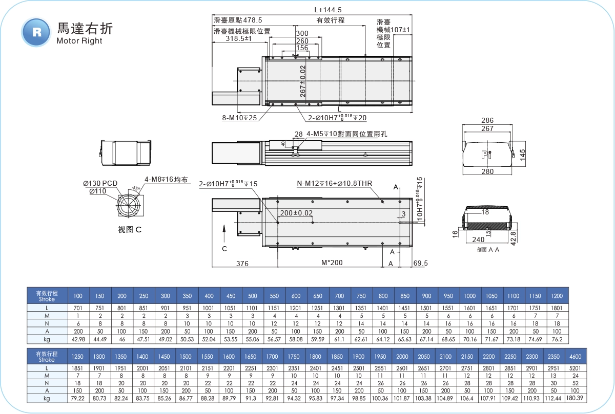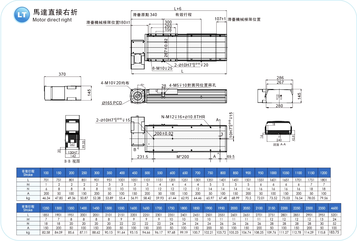 | ระยะชัก (มม.) | 100-4600 มม./ระยะห่าง 50 มม. | ||