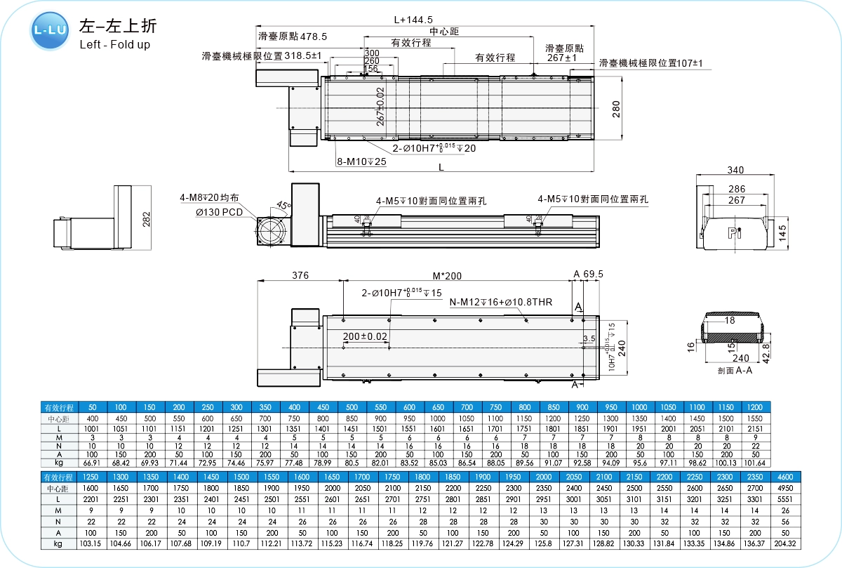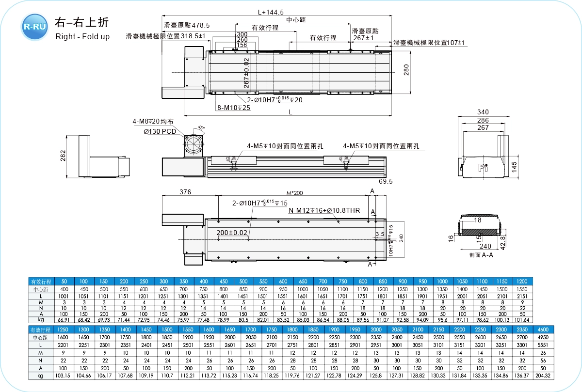 | ระยะชัก (มม.) | 50-6150 มม./ระยะห่าง 50 มม. | ||
