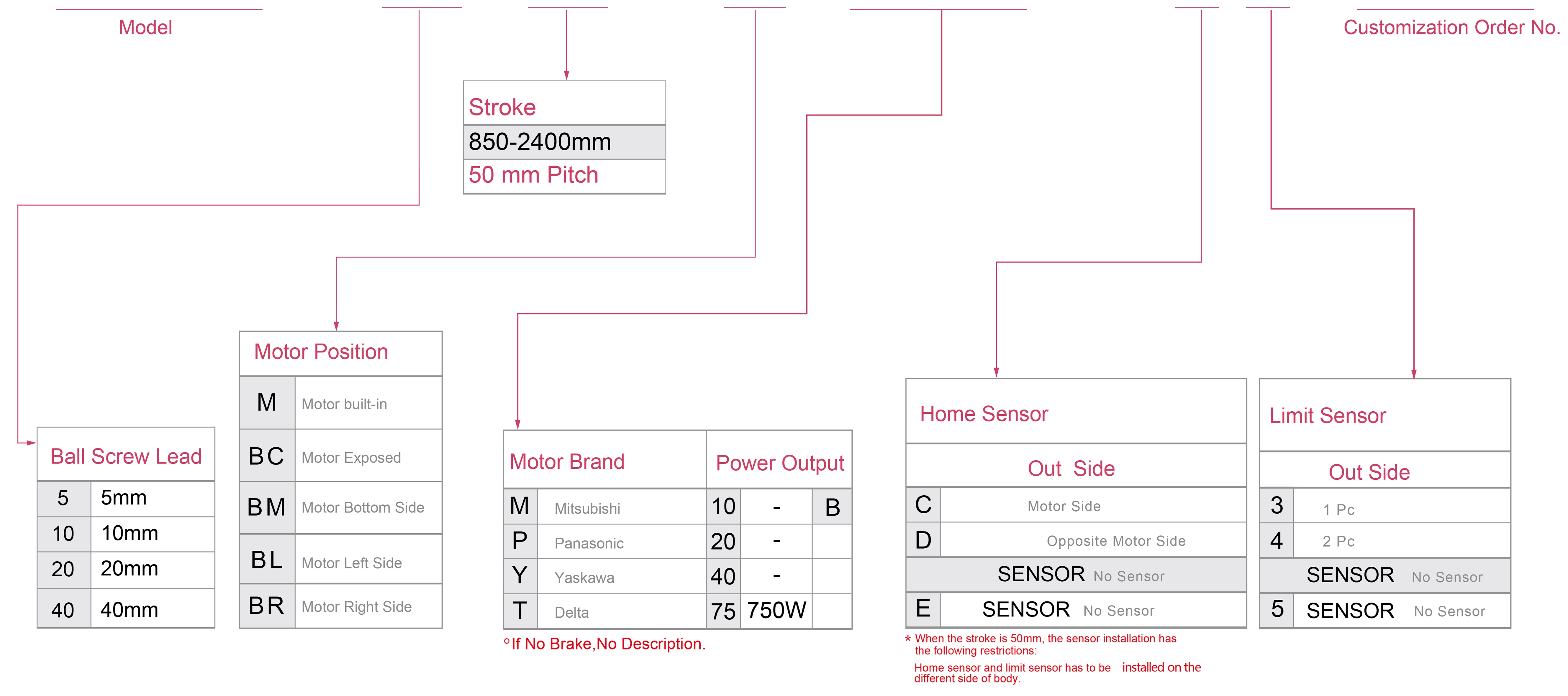 | ระยะชัก (มม.) | 850-2400 มม./ระยะห่าง 50 มม. | |||||