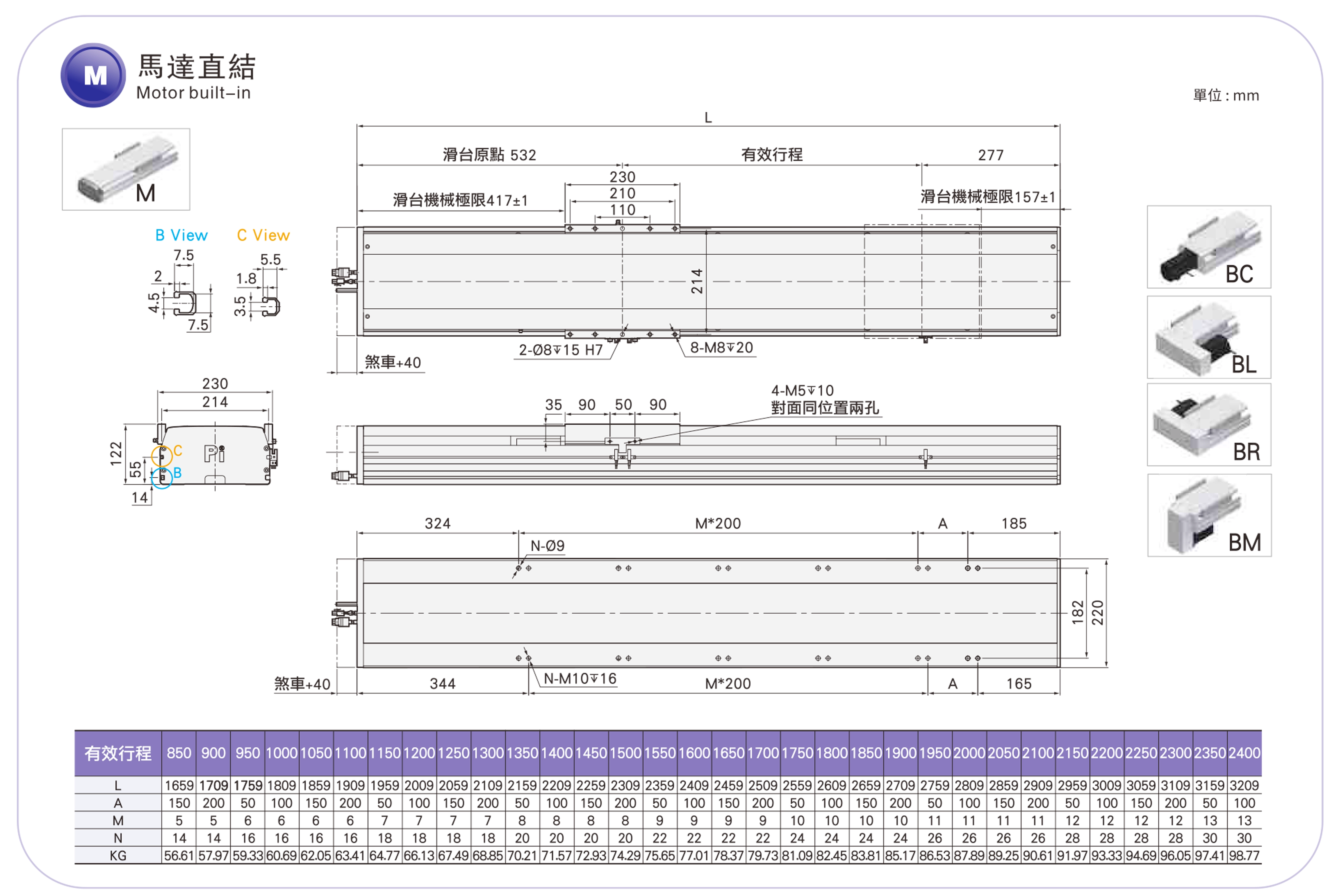 | สภาพแวดล้อมมาตรฐาน | บอลสกรู | RMH17S | 400 วัตต์ | 170 | ±0.01 | 16 | 5 | 110 | 33 | 200 |