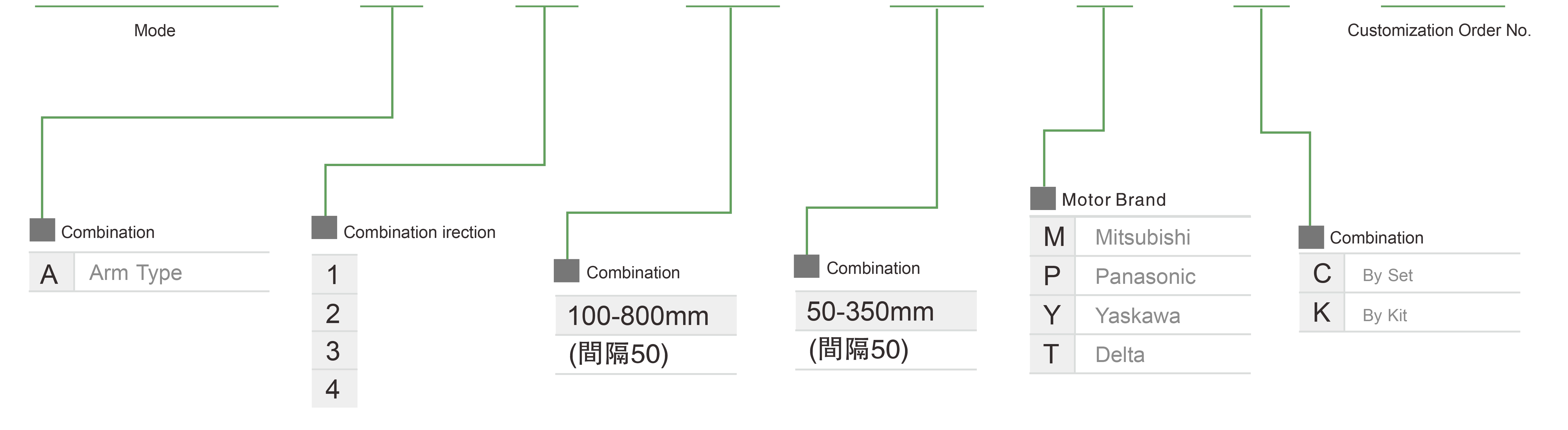 | มาตรฐาน | บอลสกรู | XYGH210-A | ประเภทแขน | 2 แกน | 20 | 2 | - | 1000 | 100 | - | 500~800 | 100~300 | - |